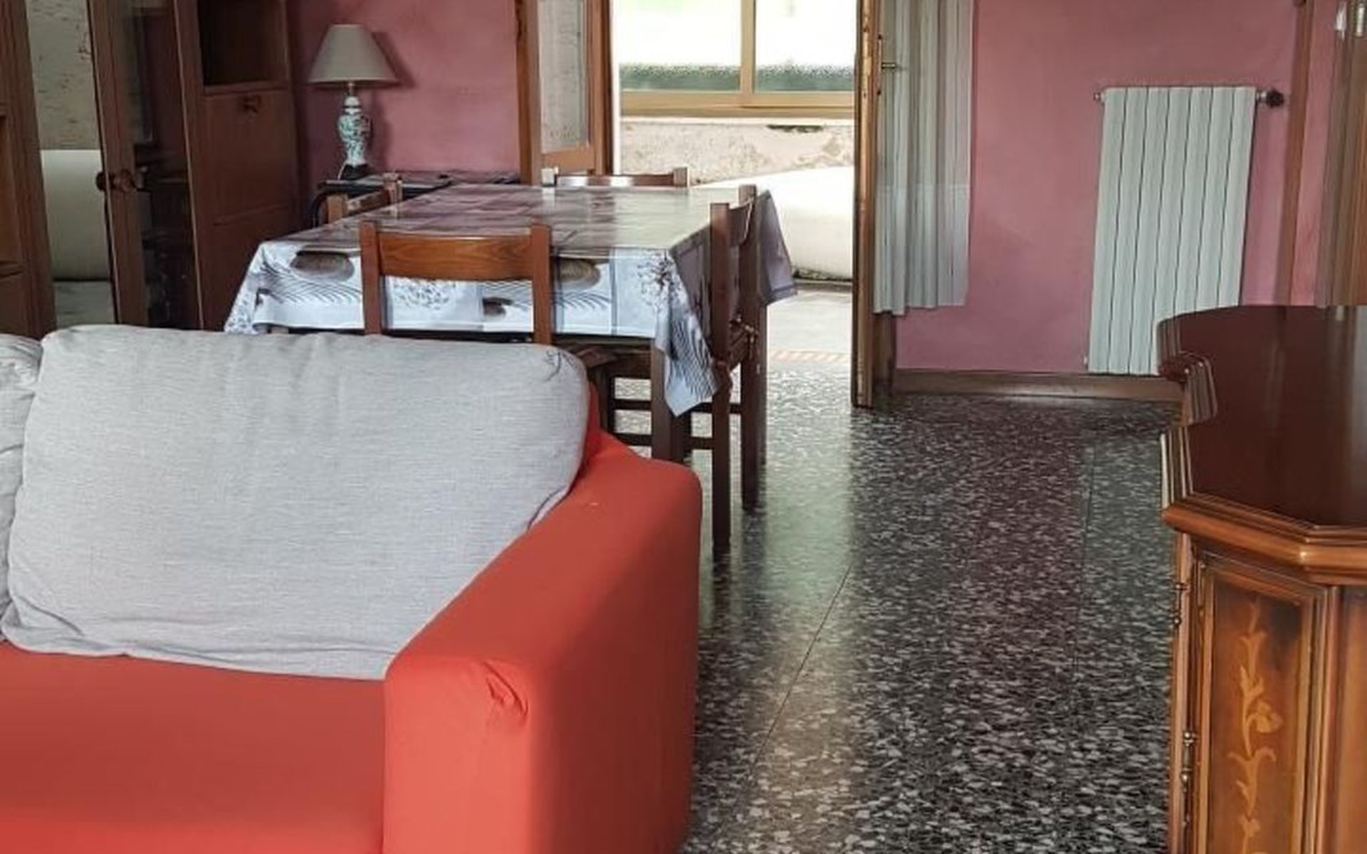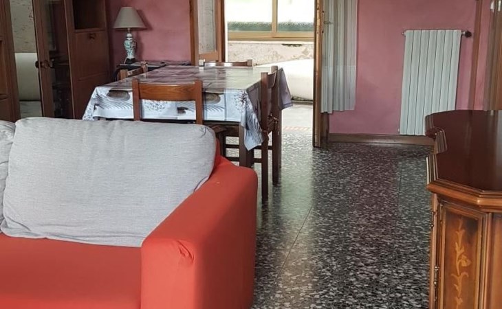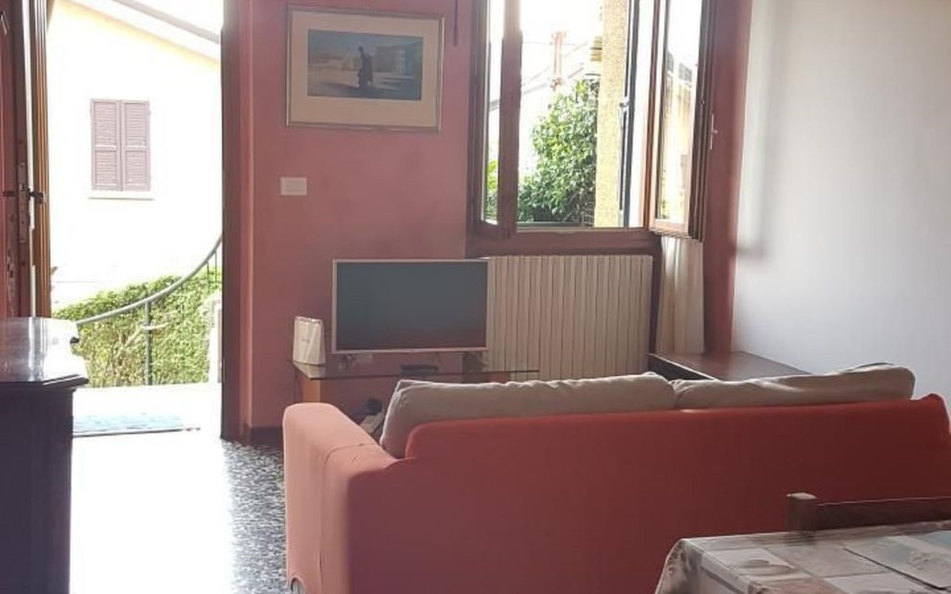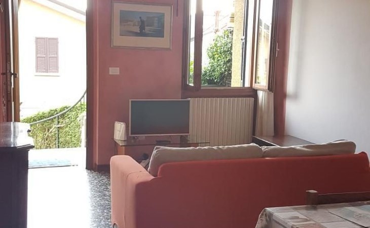 - Wohnzimmer mit TV, Sofa und Essbereich;