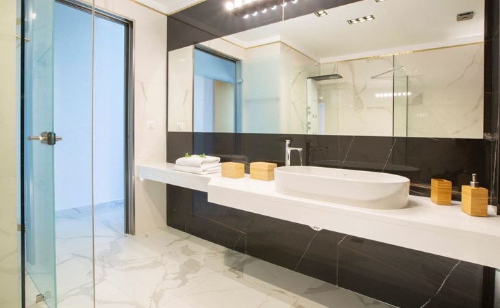 Wir haben einen Neuzugang in der Milos Bay Familie. Eine brandneue, einzigartige und moderne Villa mit absoluter Privatsphäre. Mit einem geräumigen, offenen Wohn- und Küchenbereich, der mit allem ausgestattet ist, was man braucht, von Weingläsern bis zu einem amerikanischen Kühlschrank mit eingebautem Eismacher. Mit einem riesigen bequemen Ecksofa und einem 60-Zoll-Smart-TV. Diese neue Villa bietet 4 Doppelschlafzimmer, alle mit eigenem Bad, und ein weiteres Bad im Wohnbereich, alle auf der gleichen Etage. Das macht diese Villa perfekt für alle Altersgruppen. Jedes Zimmer ist individuell gestaltet und verfügt über einzigartige moderne Einrichtungen. Klimaanlage im gesamten Haus und natürlich WI-FI. Im Außenbereich finden Sie einen privaten Pool und eine große Terrasse mit Gasgrill, Hängematte und Liegestühlen. Perfekt für absolute Entspannung und Privatsphäre. Wenn dies nicht genug ist, hat jedes Zimmer einen spektakulären Blick auf Milos Beach aus jedem Winkel und kann durch Stufen direkt an den schönen Sandstrand erreicht werden. 45