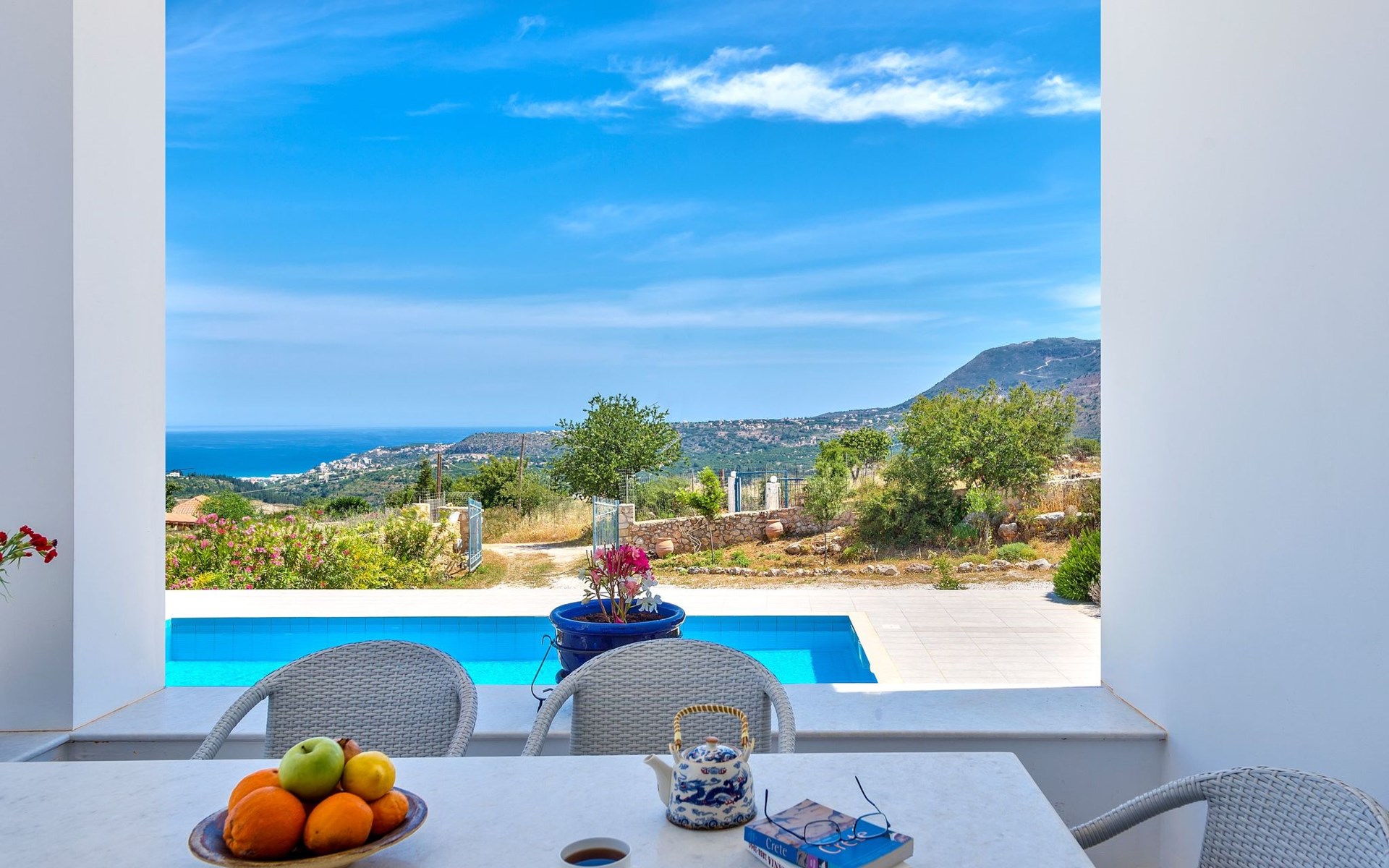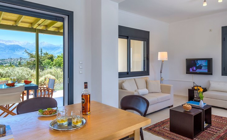 Das Besondere an der Villa ist der Blick auf die Berge, das Meer und die umliegende Landschaft mit ihren Kräutern, Johannisbrot-, Zypressen- und Olivenbäumen. Die Villa ist gut konzipiert, gut ausgestattet und komfortabel. Die Villa ist über eine vollständig asphaltierte, 4 Meter breite Straße erreichbar und liegt 800 Meter von der Hauptstraße entfernt. Ihre Lage ermöglicht es Ihnen, alle Gebiete Kretas effizient zu besuchen.