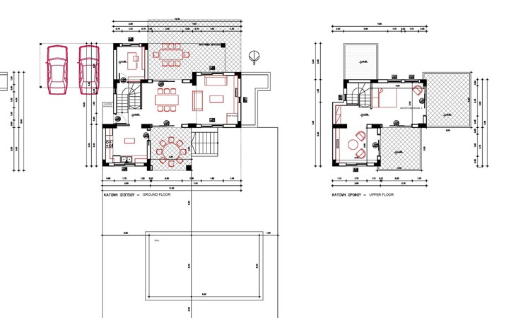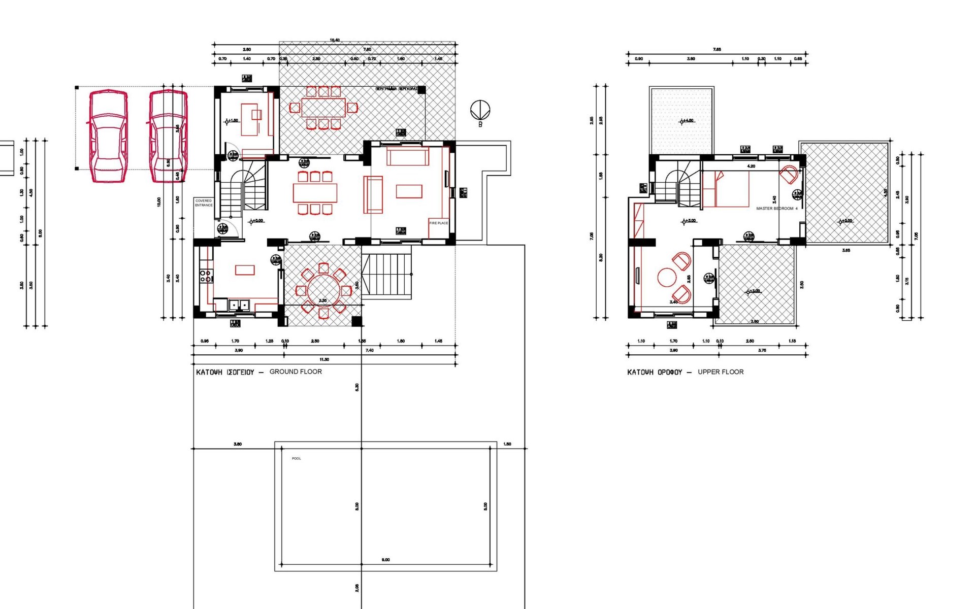 Im Erdgeschoss gibt es zwei überdachte Veranden, eine sehr große mit Blick auf die Berge und die andere mit Blick auf das Meer und den Pool. Beide verfügen über Tische, an denen 8 Personen essen können.