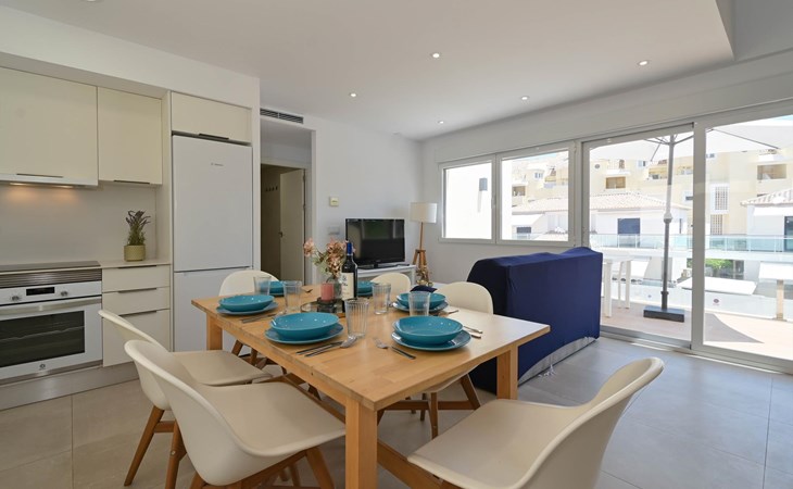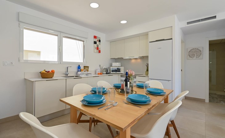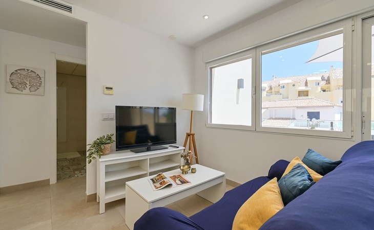 Die Wohnung verfügt über 2 Schlafzimmer und 2 Badezimmer, verteilt auf 2 Etagen. Die Nähe zum Strand, zu Einkaufsmöglichkeiten, Sportaktivitäten und Unterhaltung macht dieses Apartment zu einem idealen Ort für Ihren Urlaub in Spanien mit Familie oder Freunden.