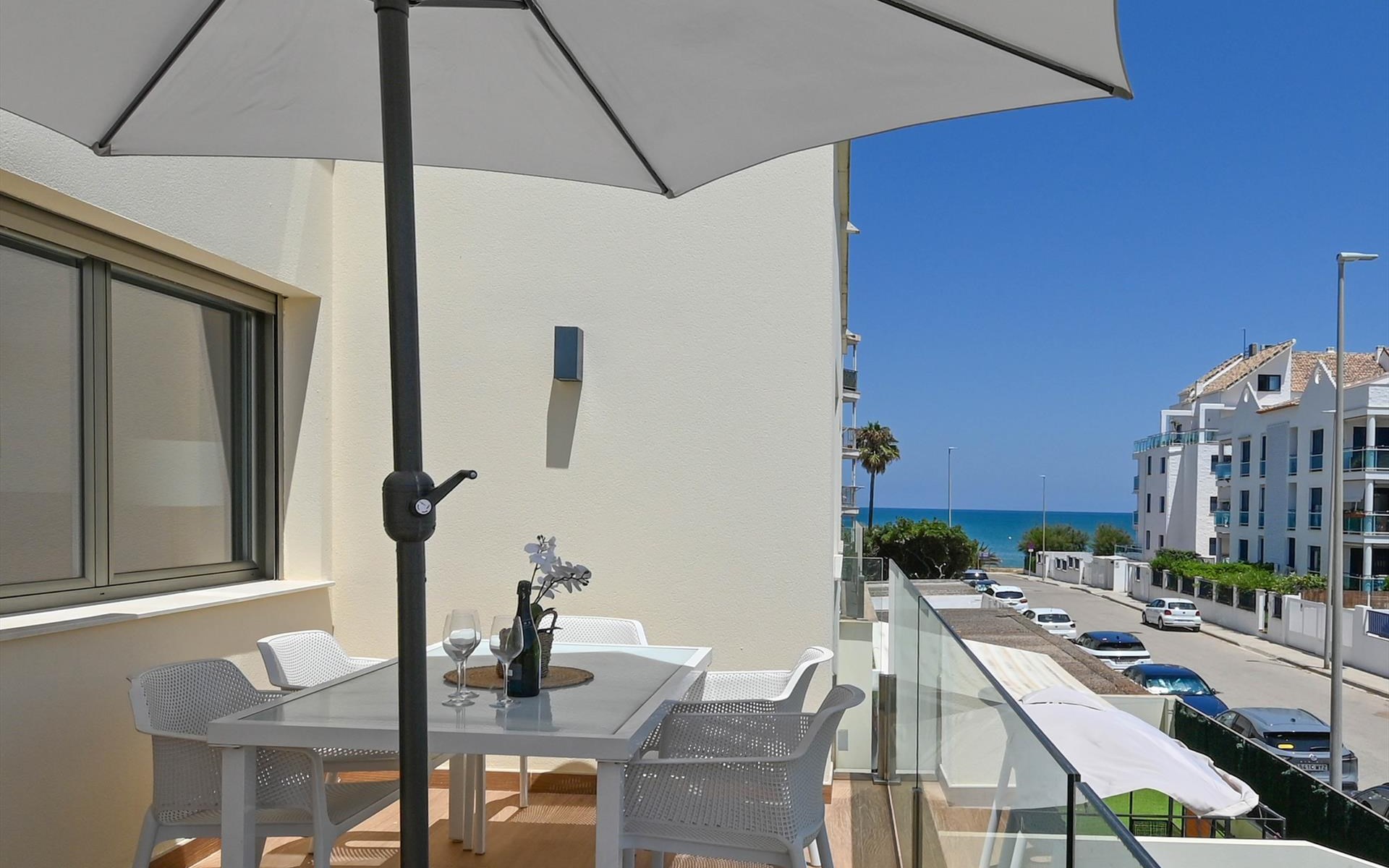 Schöne und komfortable Wohnung mit Gemeinschaftspool in Denia, Costa Blanca, Spanien für 4 Personen. Die Wohnung befindet sich in einem Wohngebiet nahe dem Strand, nur 25 m vom Playa de L'Estanyo entfernt, 4 km von El Vergel und 0,025 km vom Mittelmeer.