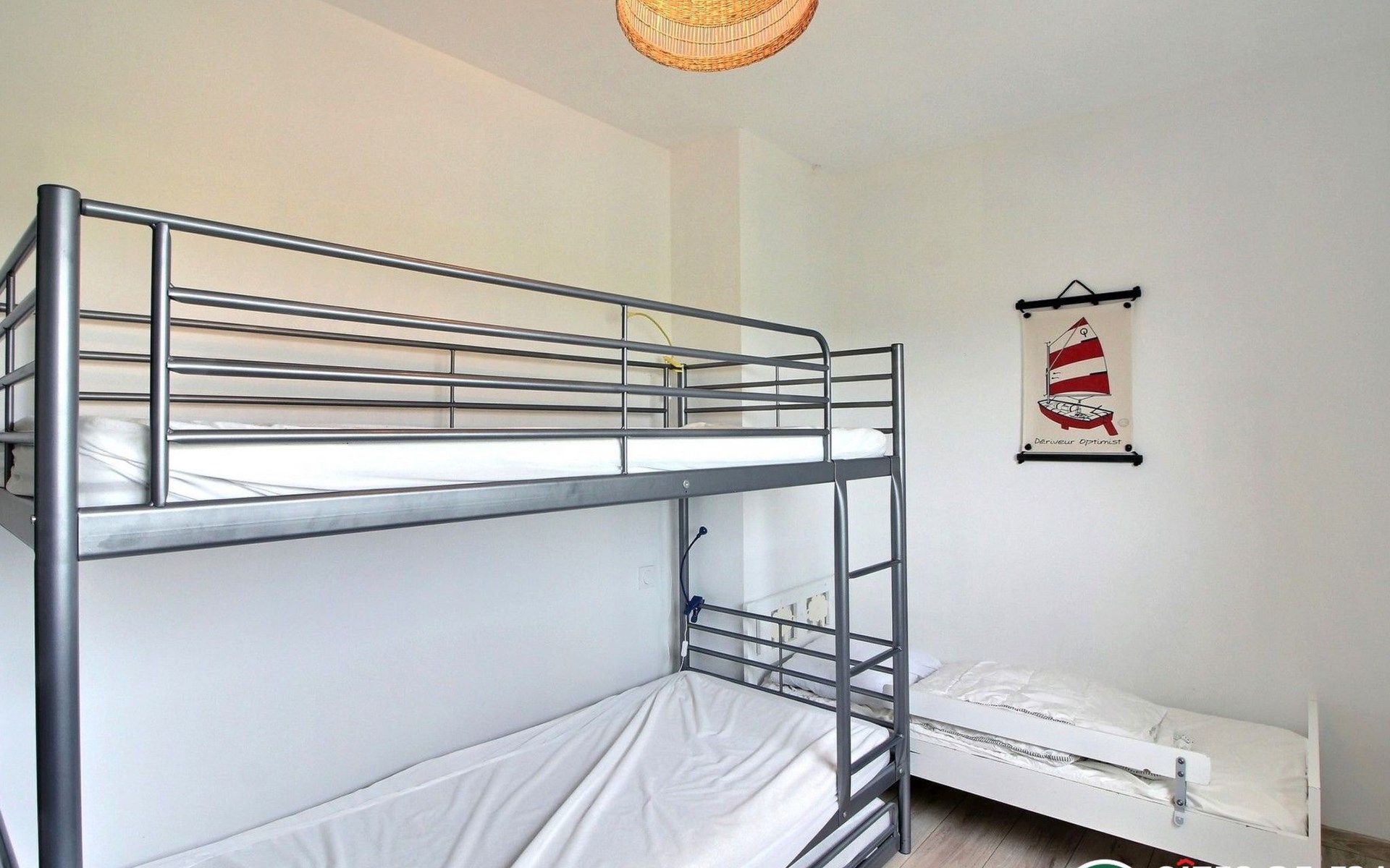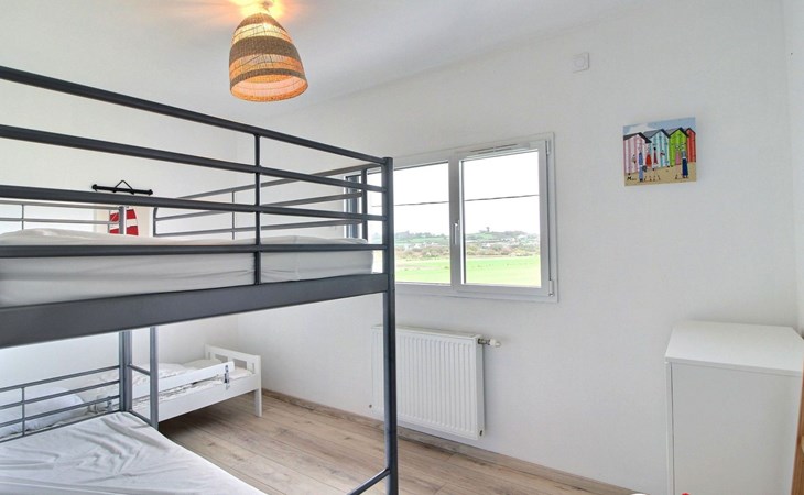 Ein den Kindern gewidmetes Zimmer mit Etagenbett (3 Schlafplätze) und Juniorbett, sehr gut schallisoliert