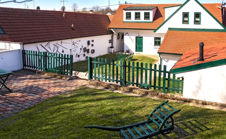 Das Schlafgut zeichnet sich durch einen wunderschön gestalteten nicht einsehbaren Innenhof. An den Wänden hängt 80-jährige Tradition, angefangen von Weinspritzen, urigen Werkzeugen, wie Klampfen, Hacken, Sensen und Sauschädelkocher. Nehmen Sie sich Zeit. Verweilen Sie auf den Sonnenterrassen mit Bänken und auf den Stühlen. Denken Sie an die gute alte Zeit. Schalten Sie ab, genießen Sie die Ruhe, die Uneinsehbarkeit. Auch für Radfahrer ist bestens gesorgt – inkl. urigem Radständer. Wer gerne seinen Wein im typischen Ambiente genießen möchte, ist im hauseigenen urigen Weinkeller mit einer gemütlichen typischen Weinviertel Stubn genau richtig.