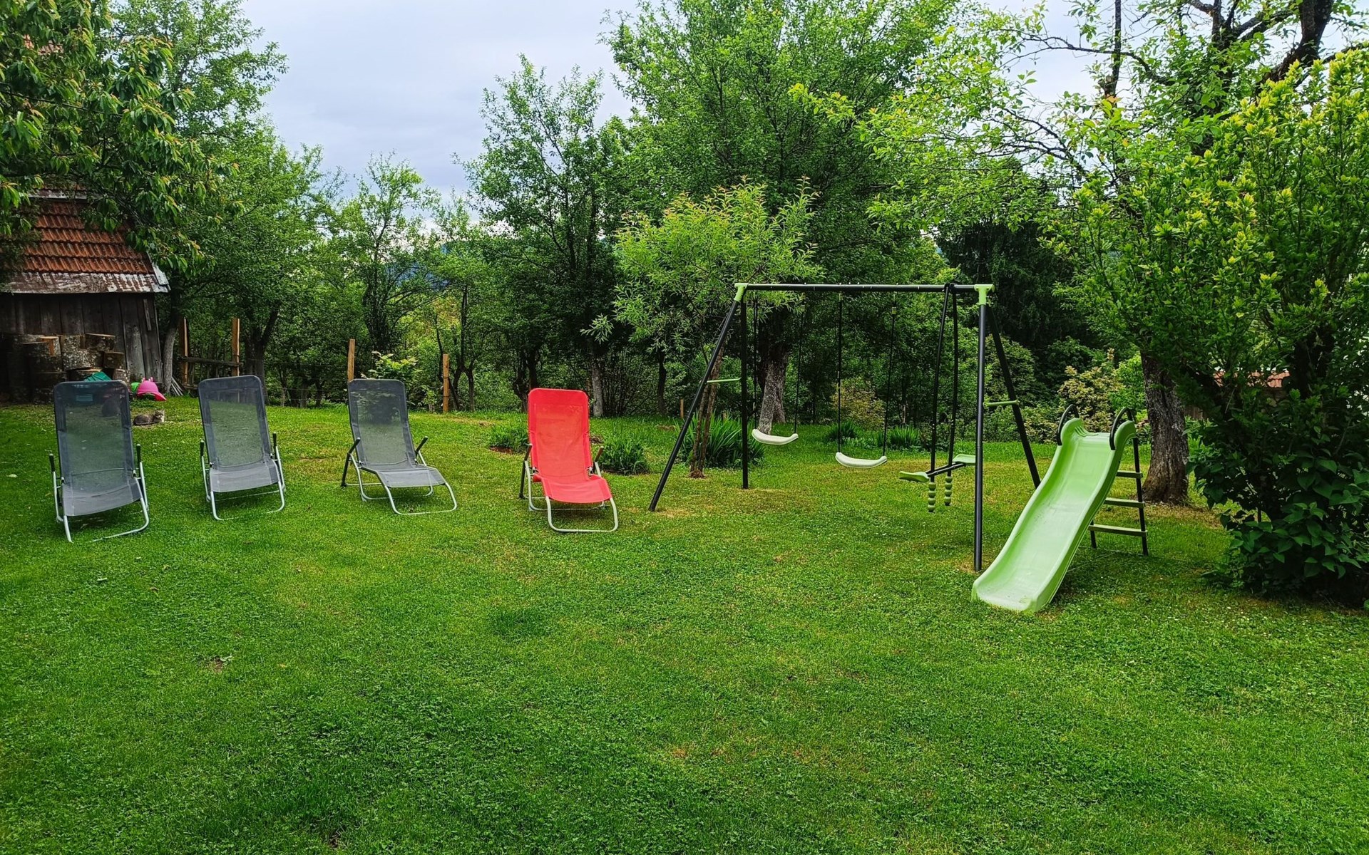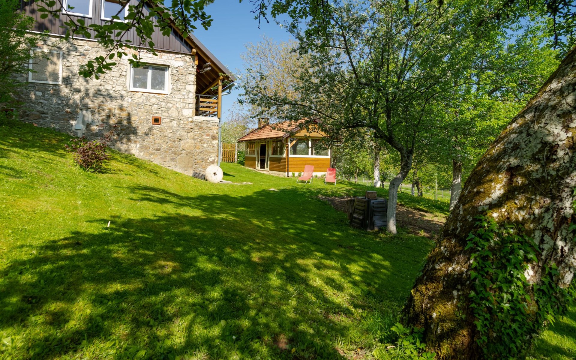 - ein großer Garten mit einem Obstgarten, alles natürlich ohne Spritzmittel