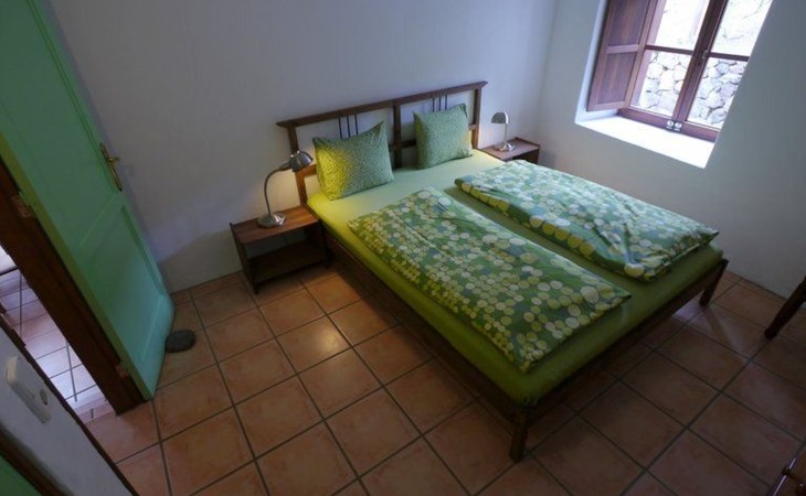 Das ca. 85m² große Ferienhaus bietet Platz für maximal fünf Personen. Der Wohnraum mit einem Essplatz und einer Sitzgruppe lädt zum Verweilen und geselligem Beisammensein ein. Angrenzend befindet sich die voll ausgestattete Küche. Neben allen wichtigen Küchenutensilien zur Selbstversorgung sind außerdem noch eine Spülmaschine, ein Gasherd, ein Kühlschrank und eine Kaffeemaschine vorhanden. Während im ersten separaten Schlafraum ein King Size Bett vorzufinden ist, ist das zweite Schlafzimmer mit zwei Einzelbetten versehen. Hier besteht die Möglichkeit noch ein Zustellbett aufzustellen. Ein Duschbad mit WC und einer Waschmaschine runden das Angebot ab.