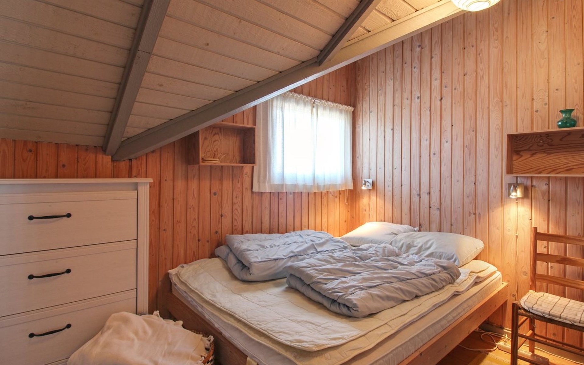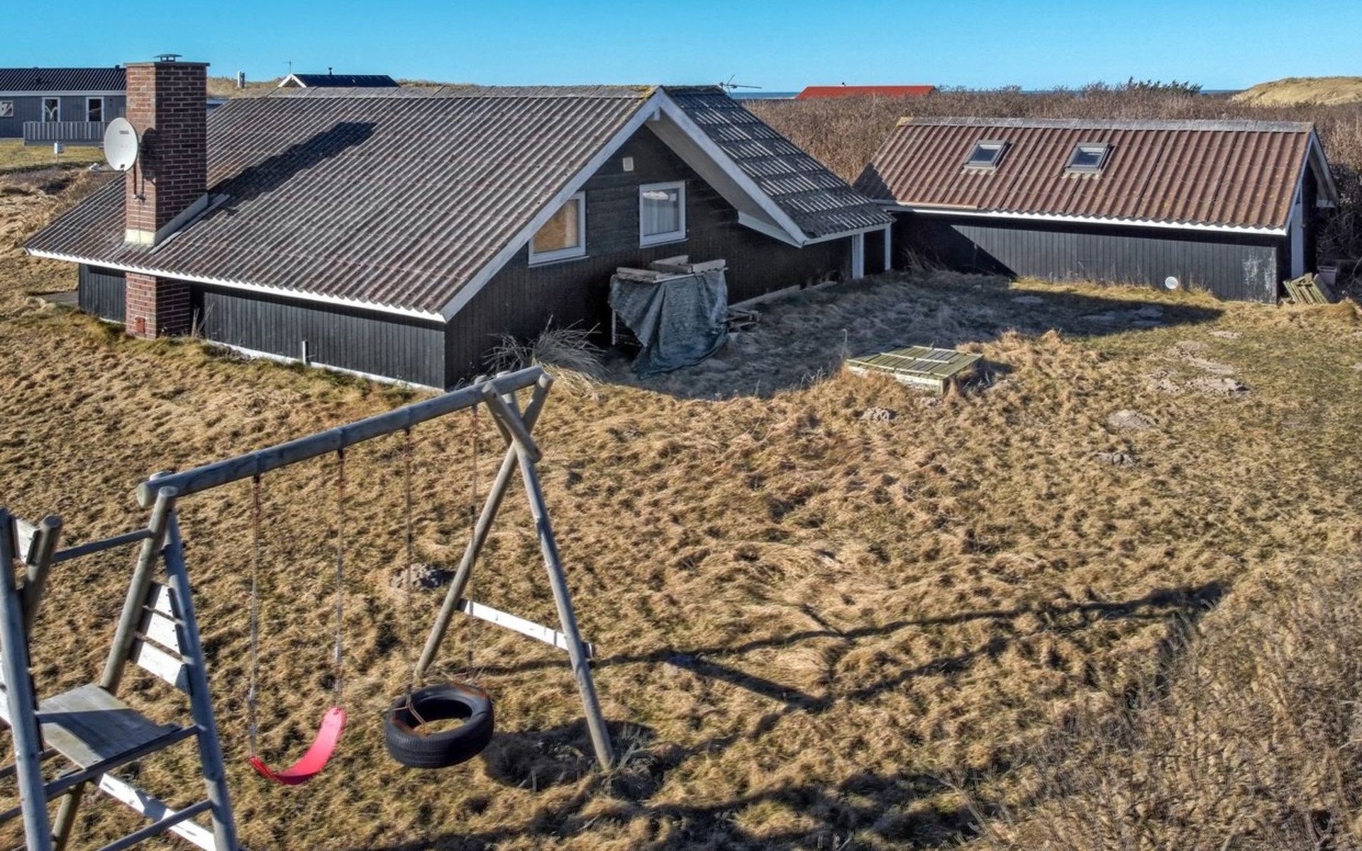 Einfamilienhaus, Baujahr 1978. 200 m vom Meer. Zur Alleinbenutzung: naturbelassenes Grundstück 2'000 m2. Terrasse (20 m2), Kinderspielplatz (Schaukel). Im Hause: Waschmaschine, Wäschetrockner. Parkplatz beim Haus. Lebensmittelgeschäft 5 km. Der Besitzer akzeptiert keine Jugendgruppen.