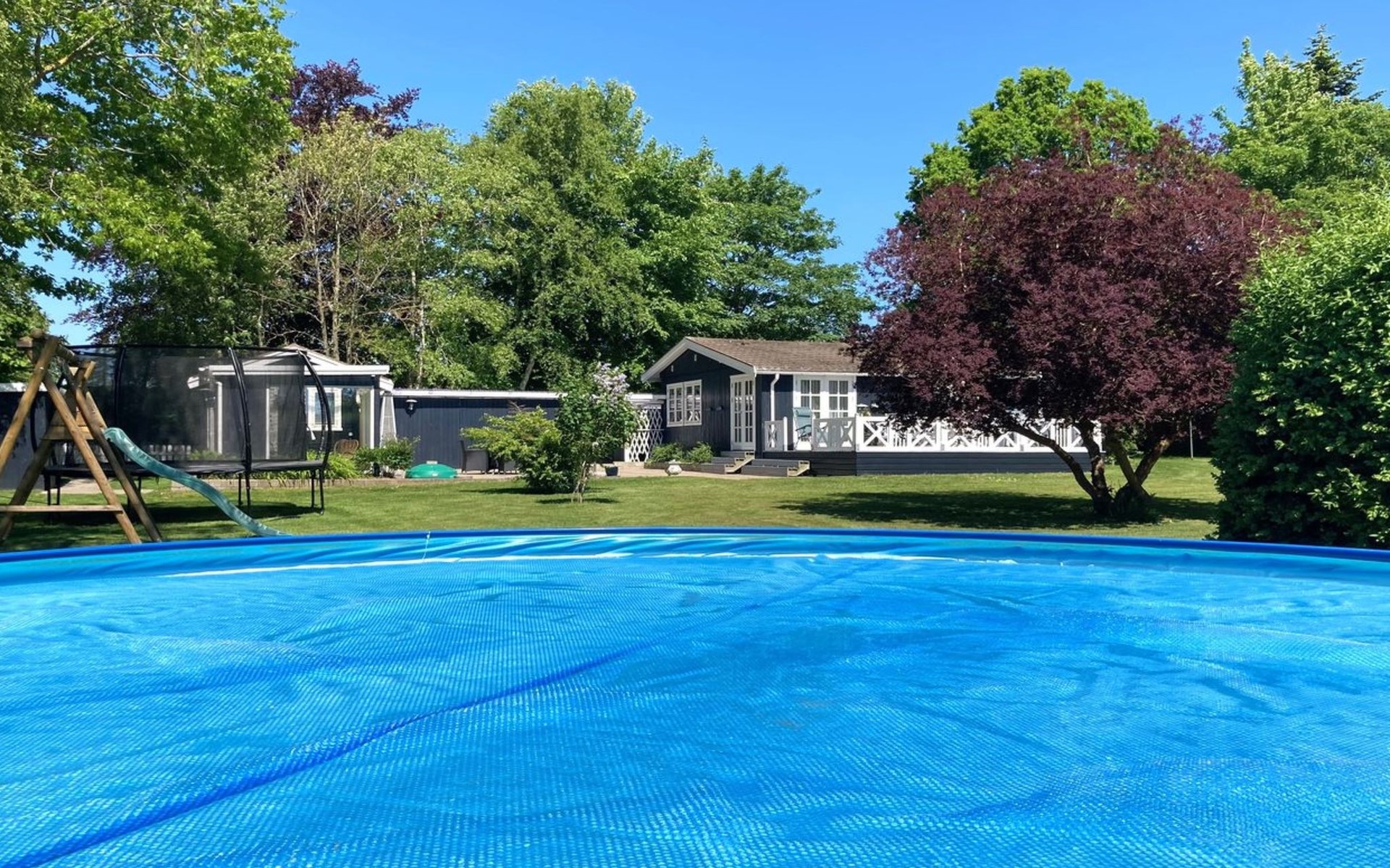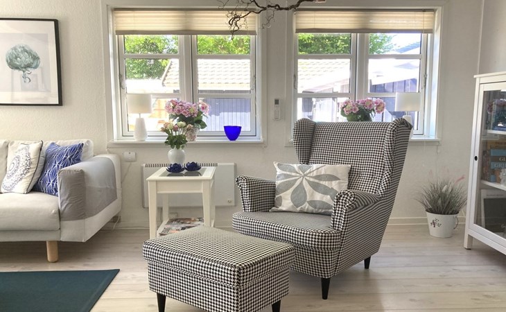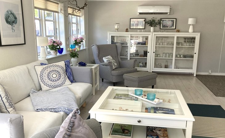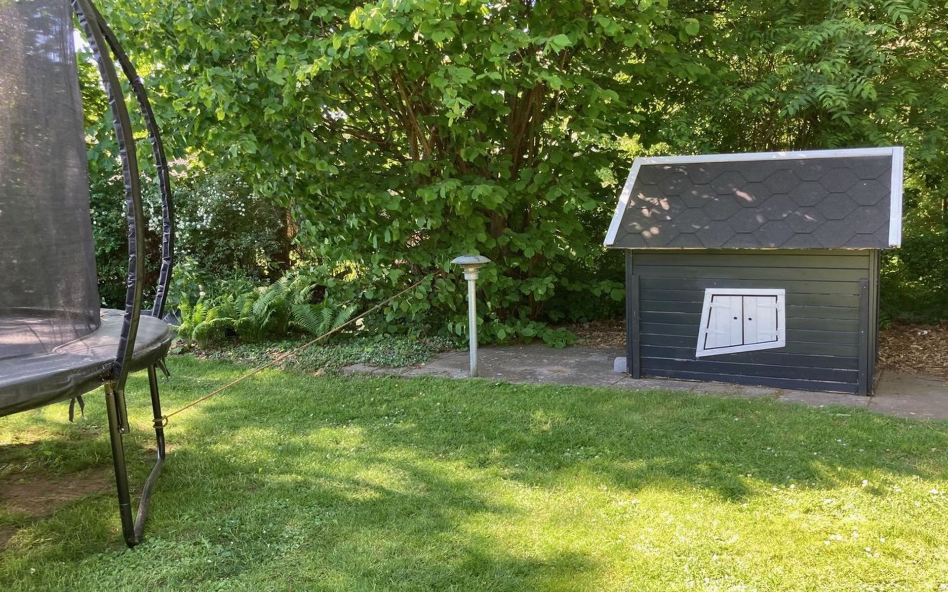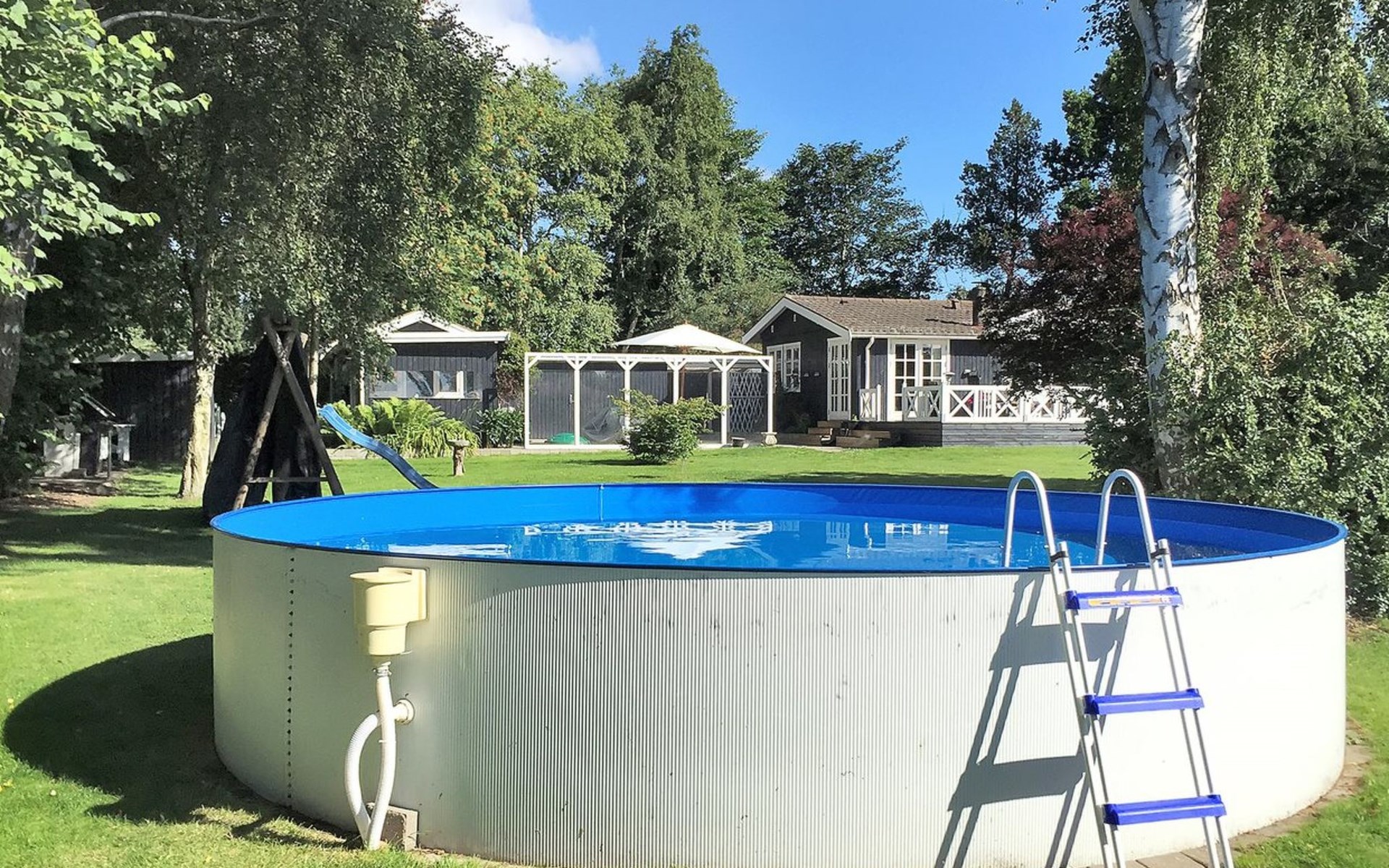 Einfamilienhaus, Baujahr 1974. Zur Alleinbenutzung: Grundstück 1'975 m2, gepflegter Garten. Terrasse (74 m2), Grill, Kinderspielplatz (Rutschbahn, Schaukel). Im Hause: Waschmaschine. Parkplatz beim Haus. Lebensmittelgeschäft 2.5 km. Golfplatz 16 km. Der Besitzer akzeptiert keine Jugendgruppen.
