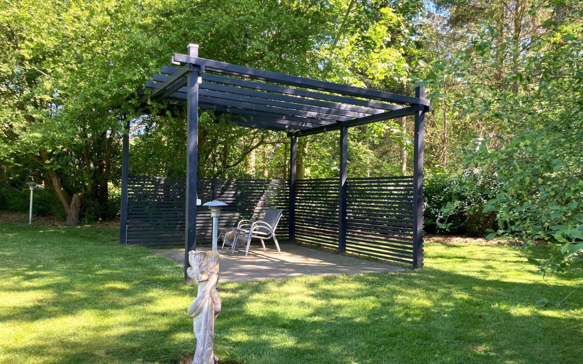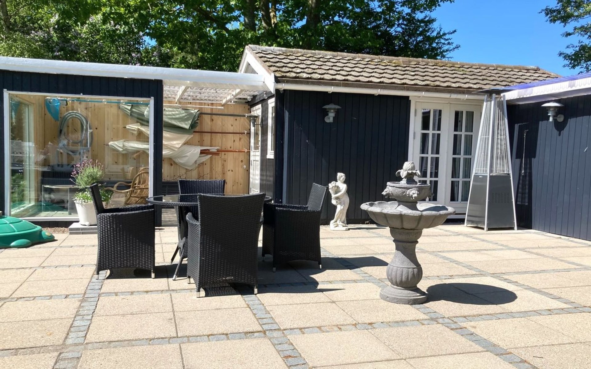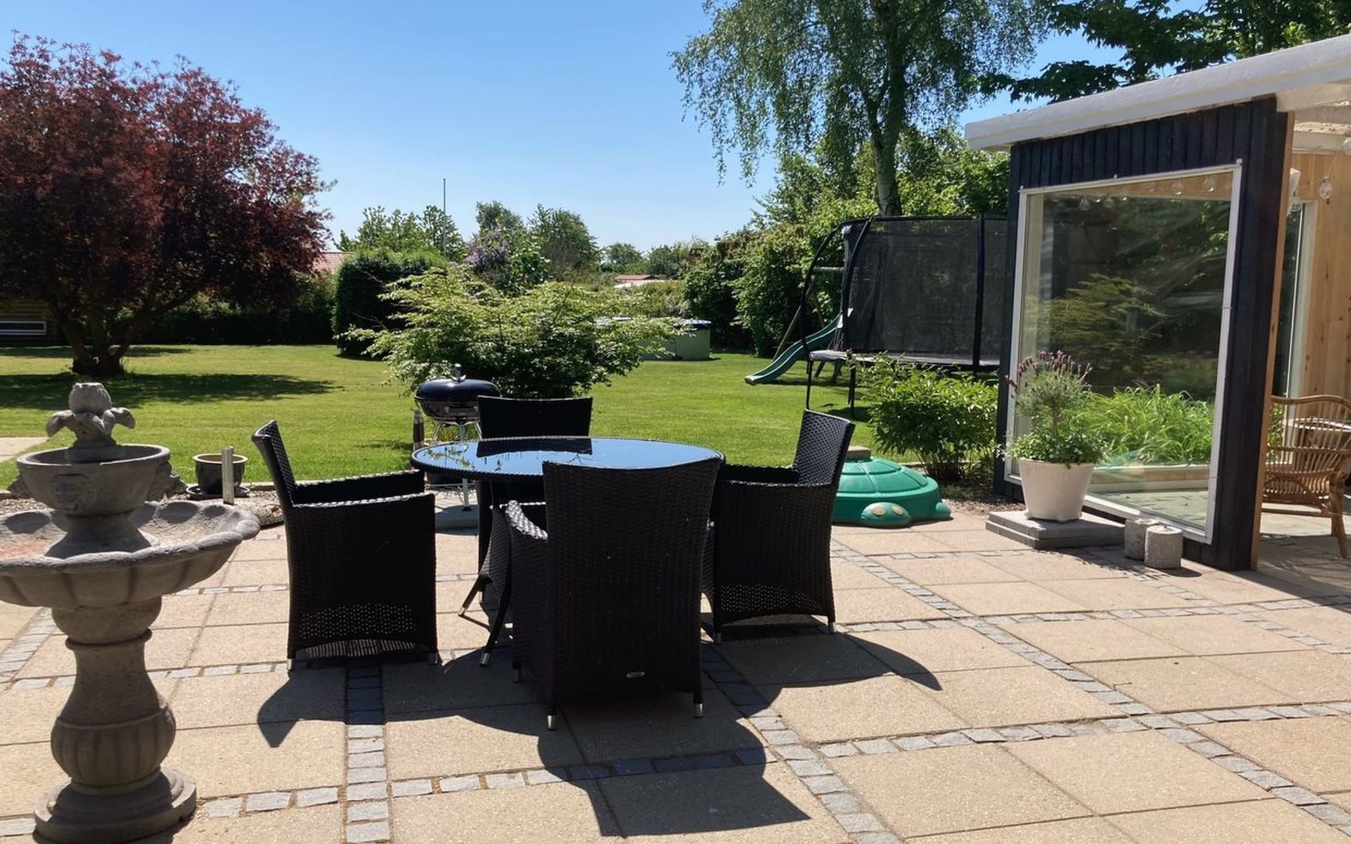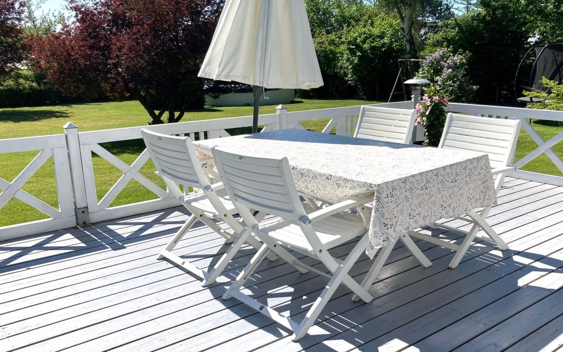 Einfamilienhaus, Baujahr 1974. Zur Alleinbenutzung: Grundstück 1'975 m2, gepflegter Garten. Terrasse (74 m2), Grill, Kinderspielplatz (Rutschbahn, Schaukel). Im Hause: Waschmaschine. Parkplatz beim Haus. Lebensmittelgeschäft 2.5 km. Golfplatz 16 km. Der Besitzer akzeptiert keine Jugendgruppen.