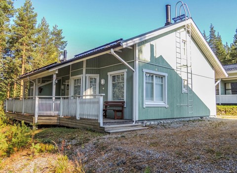 A log cottage (1998), living room and kitchen. Bedroom with a double bed (160 cm), and a sleeping alcove with one bed (120 cm). In addition, two lofts, one loft with two beds and the other with one bed. Indoor toilet. The fireplace is a cast iron hearth with a glass door.