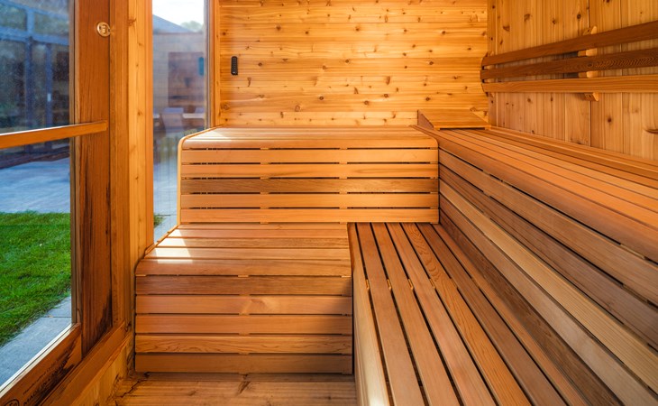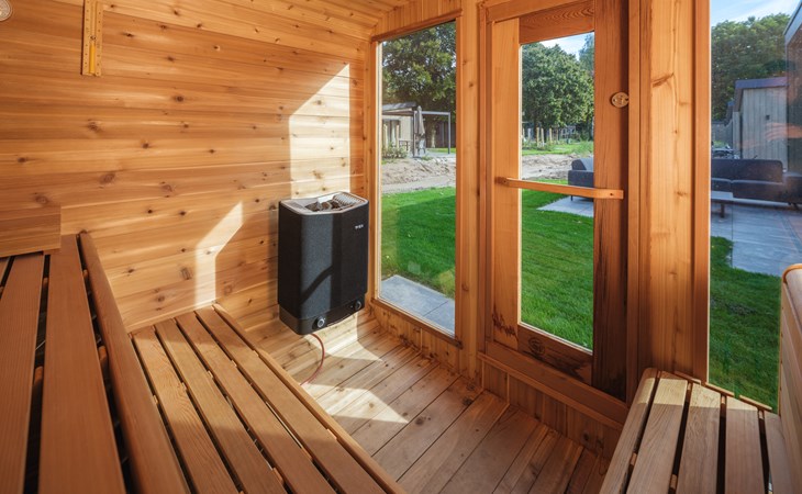 Essenburgh bietet nicht nur einen luxuriösen Hot Tub, sondern auch die Möglichkeit, in Ihrer Ferienunterkunft eine authentische finnische Sauna zu genießen. Erleben Sie das ganze Jahr über pure Entspannung in einer hochwertigen Sauna aus langlebigem White-Cedar-Holz. Das handgefertigte, elegante Design fügt sich harmonisch in die natürliche Umgebung ein und bietet ein exklusives Wellnesserlebnis. Die Sauna ist mit komfortablen, gestaffelten Bänken ausgestattet und bietet Platz für bis zu vier Personen. Dank des großen, doppelt gehärteten Glasfensters wirkt die Kabine offen und ermöglicht es Ihnen, sowohl die wohltuende Wärme als auch eine wunderschöne Aussicht zu genießen. Entspannen Sie sich nach einem aktiven Tag, lassen Sie die Wärme Ihre Muskeln lockern und tanken Sie neue Energie in dieser stilvollen Wellness-Oase direkt an Ihrer Unterkunft.