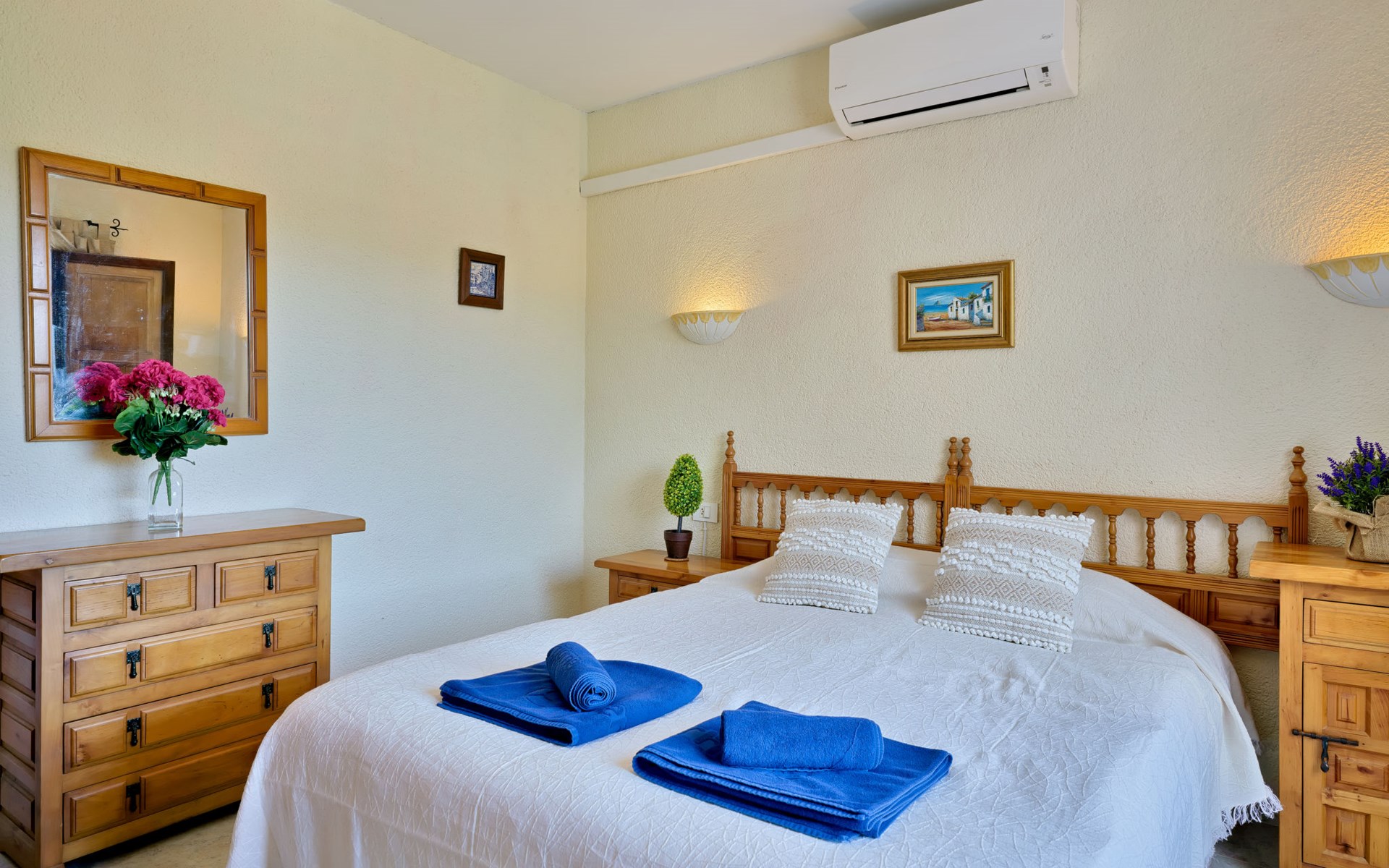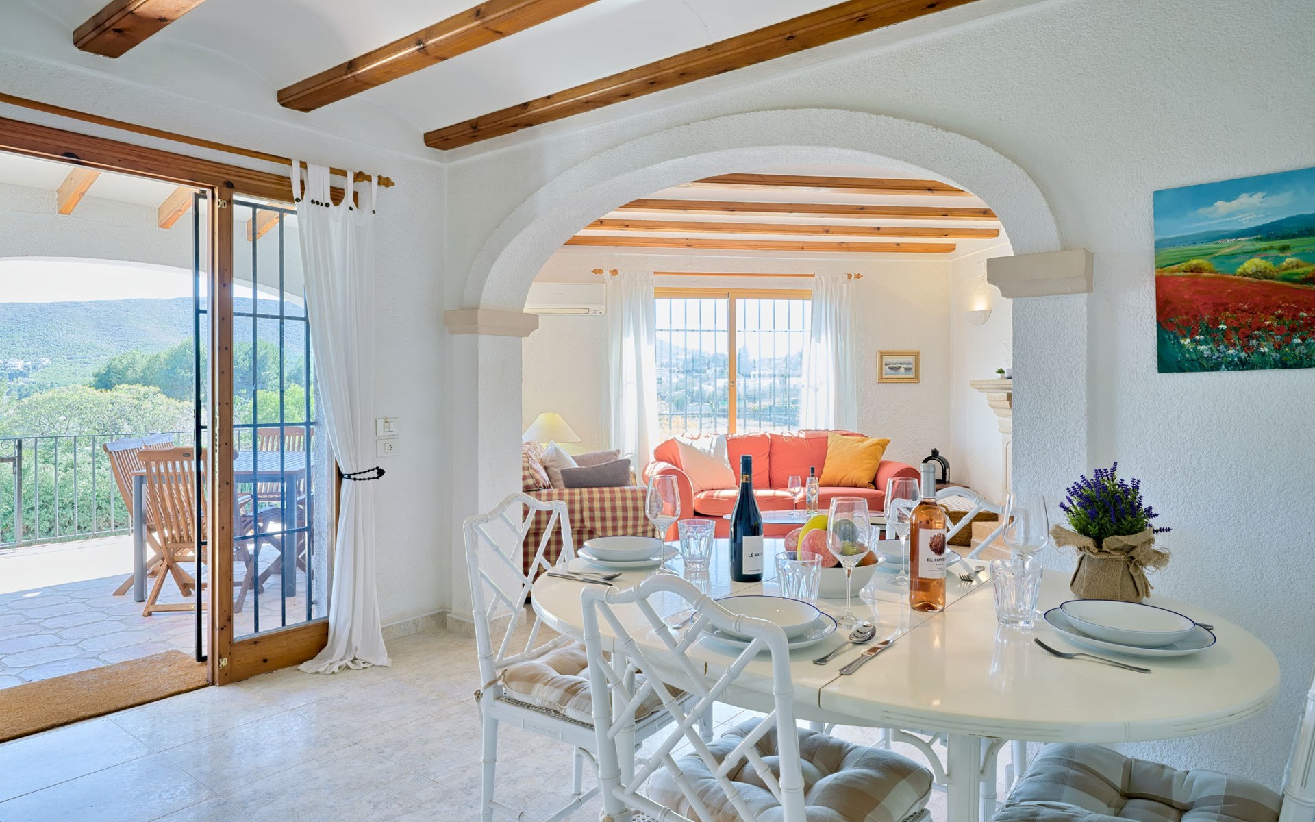 Grosses, gemütliches Haus "Solimilo". Im Ortsteil La Colina, ruhige, sonnige Lage, 3.6 km vom Meer, 3.6 km vom Strand. Zur Alleinbenutzung: Garten mit Pflanzen und Bäumen, Schwimmbad (10 x 5 m, 115 - 200 cm tief, saisonale Verfügbarkeit: 01.Jan. - 31.Dez.) mit Innentreppe. Aussendusche, Parkplatz auf dem Grundstück. Einkaufsgeschäft 3 km, Supermarkt 3.2 km, Restaurant 1.3 km, Bushaltestelle "Mas y Mas carretera del Pla" 2.9 km, Sandstrand "Arenal" 3.6 km. Sporthafen 4.5 km, Golfplatz (9 Loch) 1.5 km, Surfschule 4.5 km, Segelschule 4.5 km. Der Besitzer akzeptiert keine Jugendgruppen.