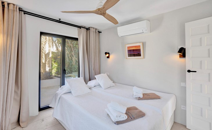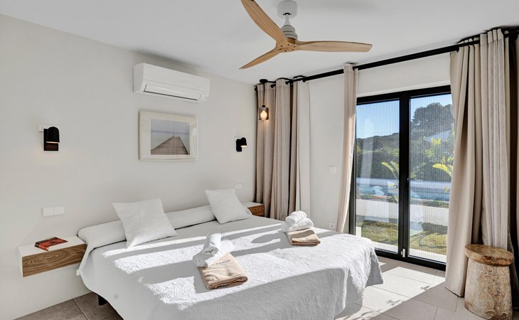 - 3 klimatisierte Schlafzimmer, jedes mit Kingsize-Bett (200 x 180 cm) und Ventilator