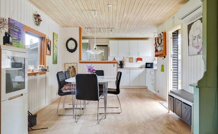 Einfamilienhaus, Baujahr 1969. 350 m vom Meer. Zur Alleinbenutzung: Grundstück 1'268 m2, gepflegter Garten. Terrasse (30 m2), Grill, Kinderspielplatz (Schaukel). Im Hause: Waschmaschine. Parkplatz beim Haus. Lebensmittelgeschäft 2.9 km. Golfplatz 7.9 km. Der Besitzer akzeptiert keine Jugendgruppen.