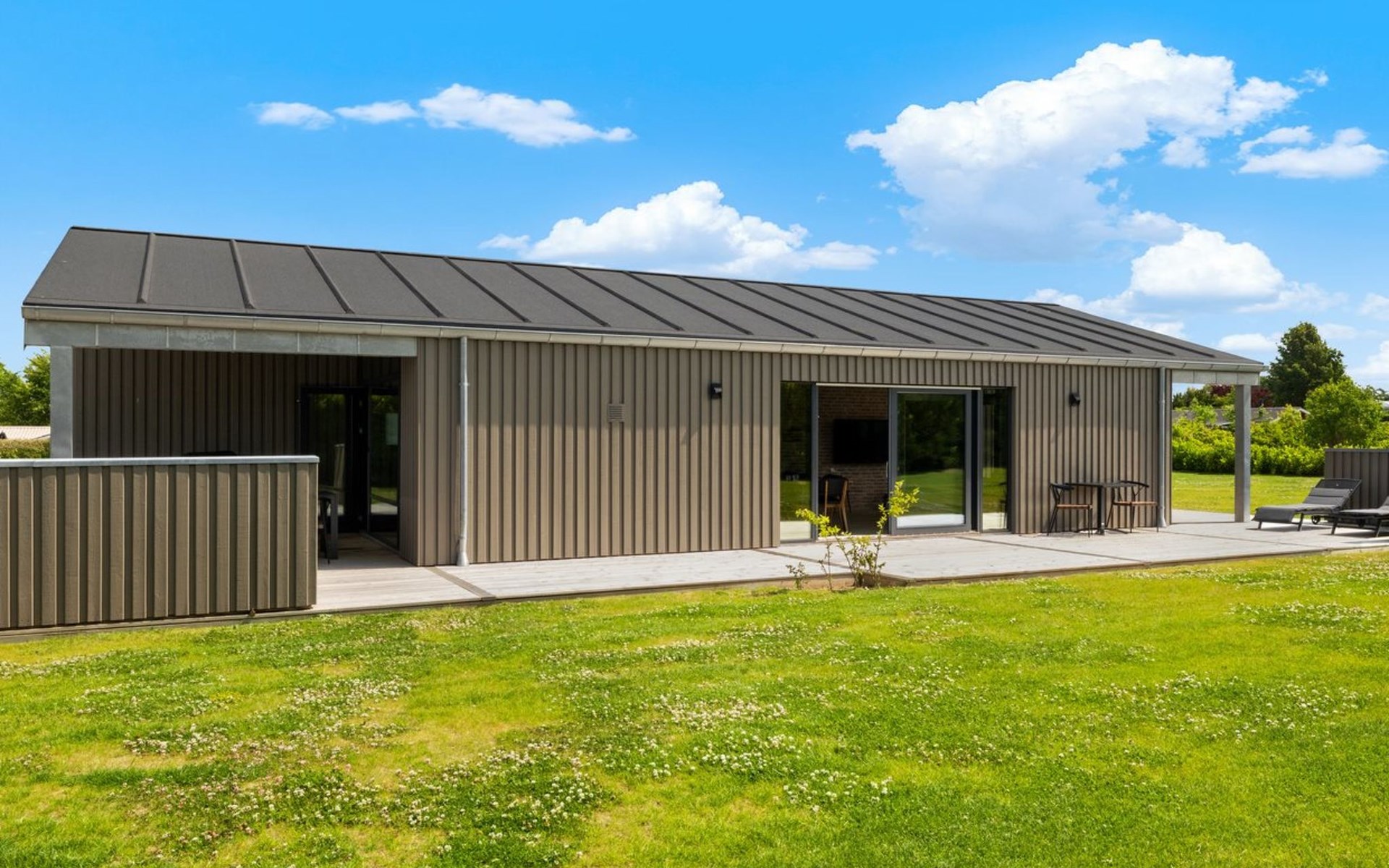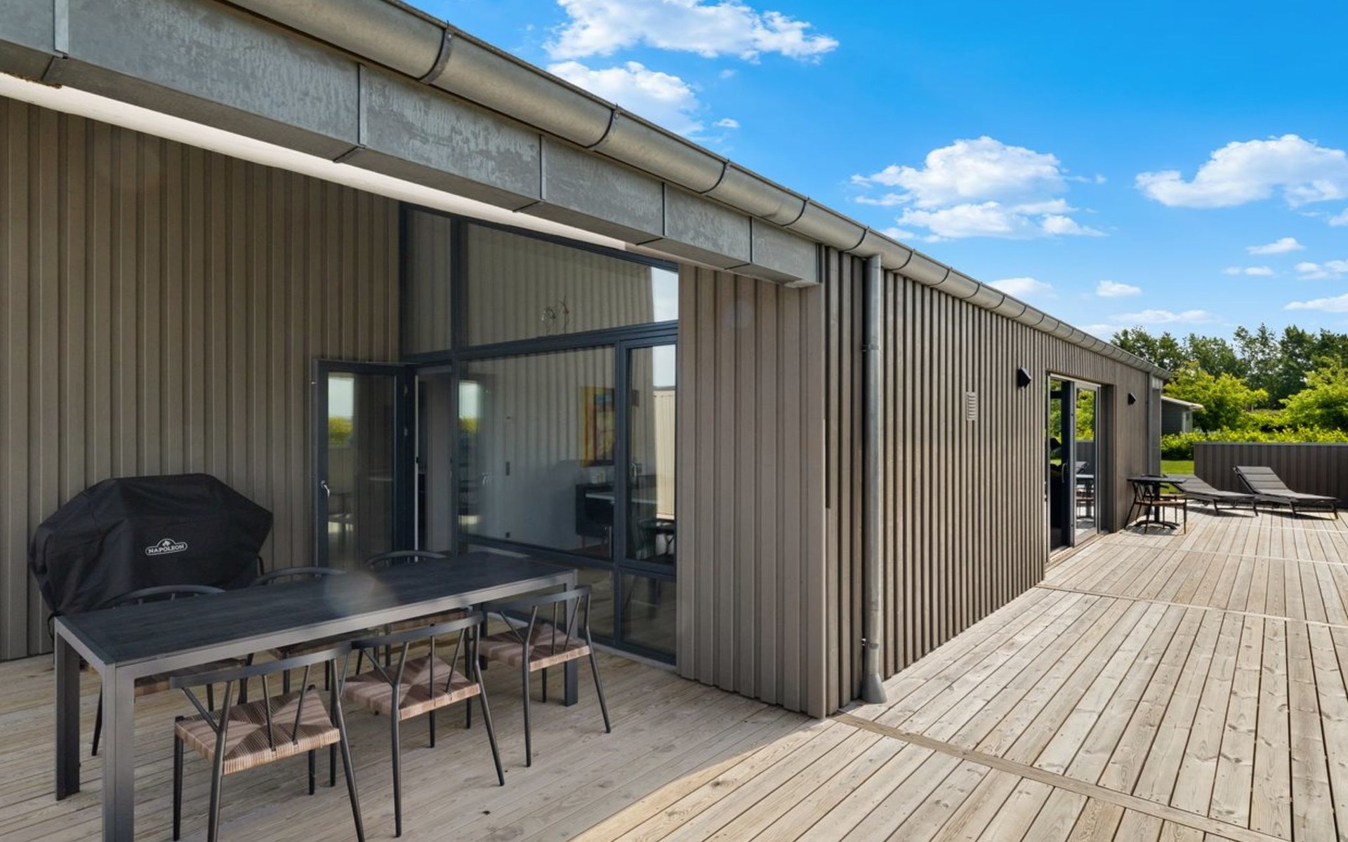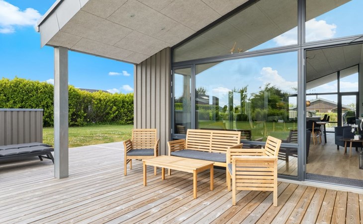 Einfamilienhaus, Baujahr 2024. 250 m vom Meer. Zur Alleinbenutzung: Grundstück 1'182 m2, gepflegter Garten. Grill. Im Hause: Tischfussball, Waschmaschine, Wäschetrockner. Parkplatz beim Haus. E-Ladestation. Lebensmittelgeschäft 6.3 km. Golfplatz 7.3 km. Der Besitzer akzeptiert keine Jugendgruppen.