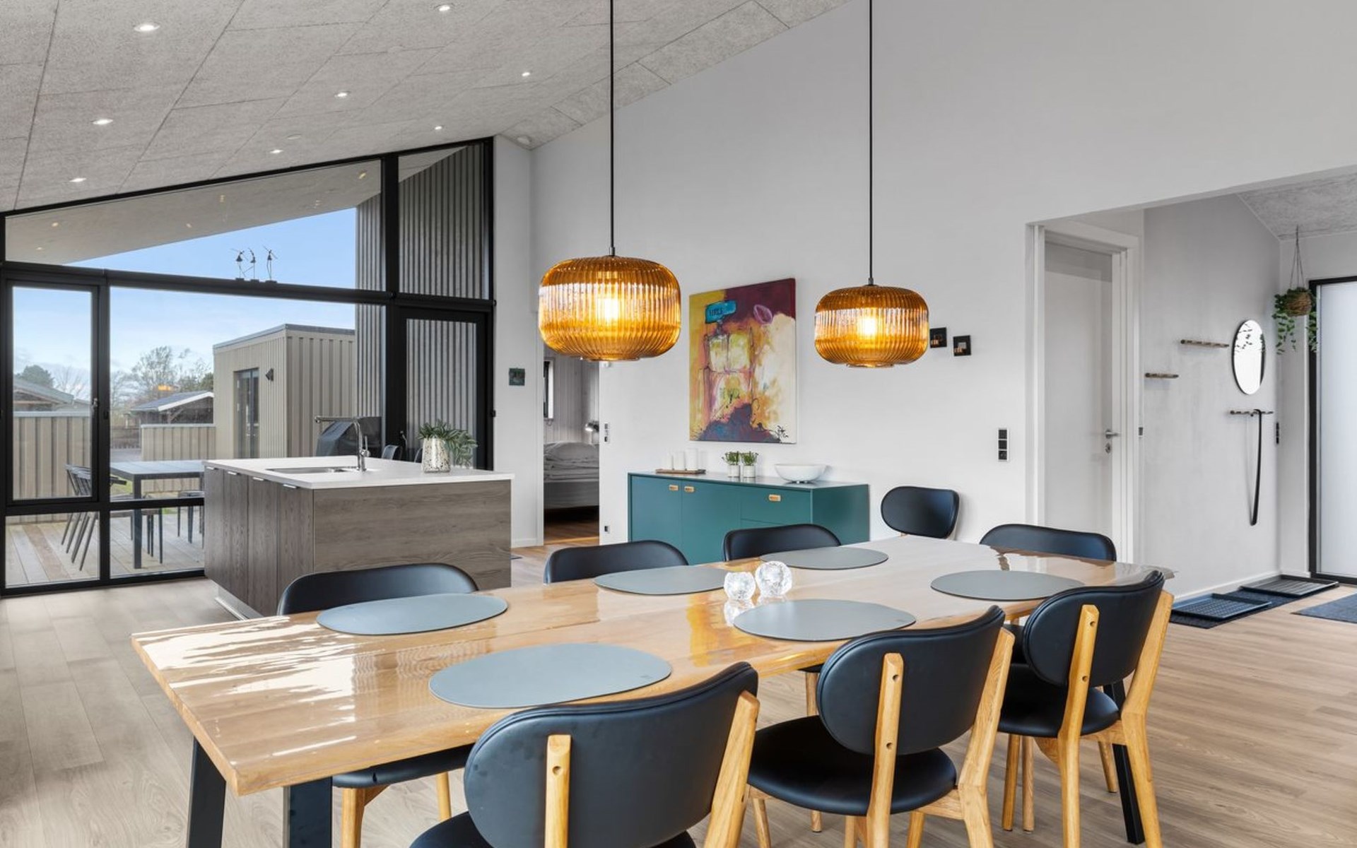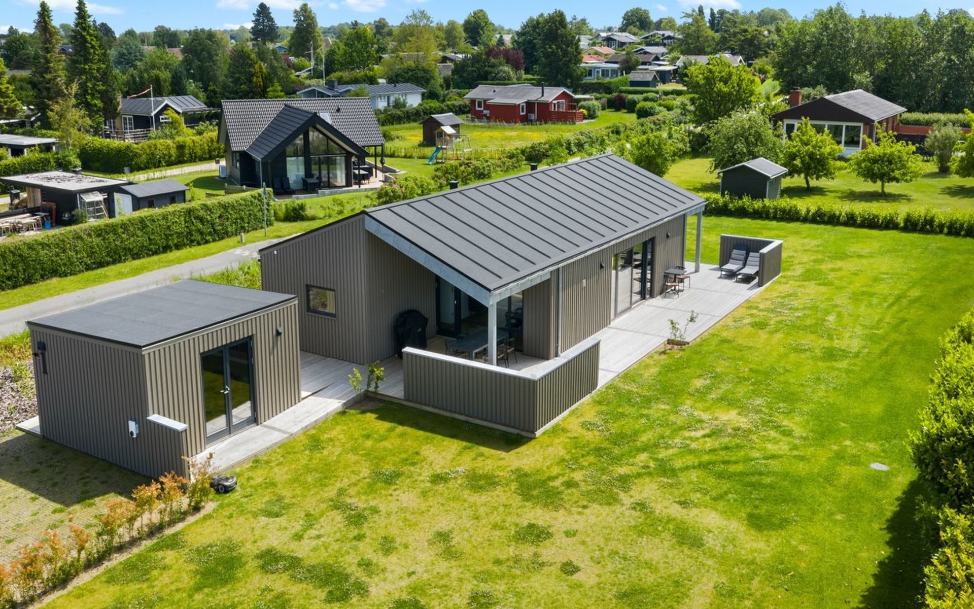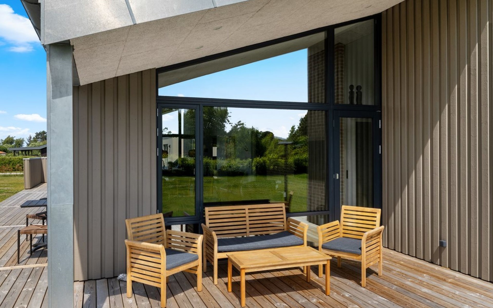 Einfamilienhaus, Baujahr 2024. 250 m vom Meer. Zur Alleinbenutzung: Grundstück 1'182 m2, gepflegter Garten. Grill. Im Hause: Tischfussball, Waschmaschine, Wäschetrockner. Parkplatz beim Haus. E-Ladestation. Lebensmittelgeschäft 6.3 km. Golfplatz 7.3 km. Der Besitzer akzeptiert keine Jugendgruppen.
