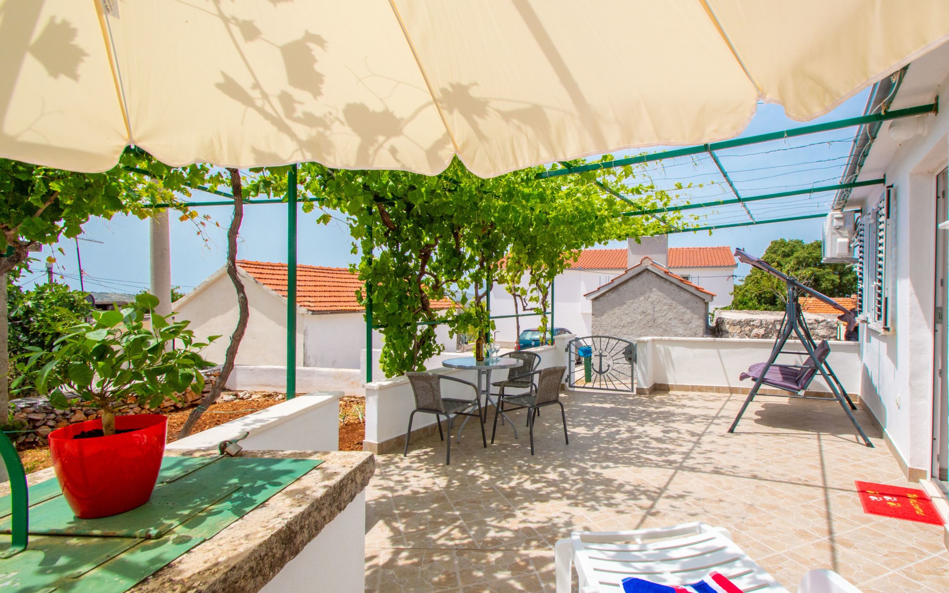 Einfamilienhaus "Snježana". Im Weiler Dvornica, 2.5 km vom Zentrum von Ražanj, 9 km vom Zentrum von Rogoznica, ruhige, sonnige Lage, 1.4 km vom Meer, 1.4 km vom Strand. Zur Mitbenutzung: Grill. Zur Alleinbenutzung: Grundstück 100 m2. Im Hause: Internetzugang. Parkplatz beim Haus auf dem Grundstück. Einkaufsgeschäft 1 km, Restaurant 2.5 km, Bushaltestelle 3.1 km, Kieselstrand 2.5 km, Felsstrand 1.4 km, betonierter Strand 1.4 km. Jacht-Hafen 10 km. Bitte beachten: Flugplatz 30 km vom Haus. Grill 10 m vom Haus entfernt, zur Mitbenutzung mit der Ferienwohnung HR4720.652.