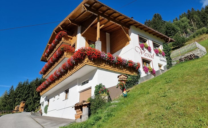 Haus "Vesul". Im Ortsteil Seichle, 3 km vom Zentrum von Kappl, 6 km vom Zentrum von Ischgl, 20 km vom Zentrum von Landeck. Im Hause: Skiraum, Zentralheizung, Skischuhtrockner. Brötchenservice. Parkplatz (für 6 Autos) beim Haus. Einkaufsgeschäft 3 km, Lebensmittelgeschäft 3 km, Bushaltestelle "Kappl Ulmich" 550 m. Skilift 3 km, Gondelbahn 3 km, Skibushaltestelle 50 m. Bitte beachten: Der Besitzer wohnt im selben Haus. Achtung: Am Abreisetag muss das 1. OG bis 8:30Uhr geräumt sein. Das Gepäck kann in den restlichen Zimmern im Hauptgeschoss bis 10 Uhr aufbewahrt werden.