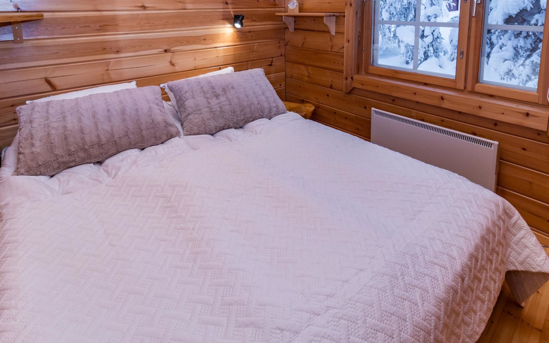 This destination is an ideal choice for families, couples, and anyone who appreciates a peaceful location by the picturesque Lake Kuontijärvi. The cabin has its own shower and WC for privacy and comfort. In addition, there is a lakeside sauna with a wood-burning sauna stove for shared use with the other half of the semi-detached house.