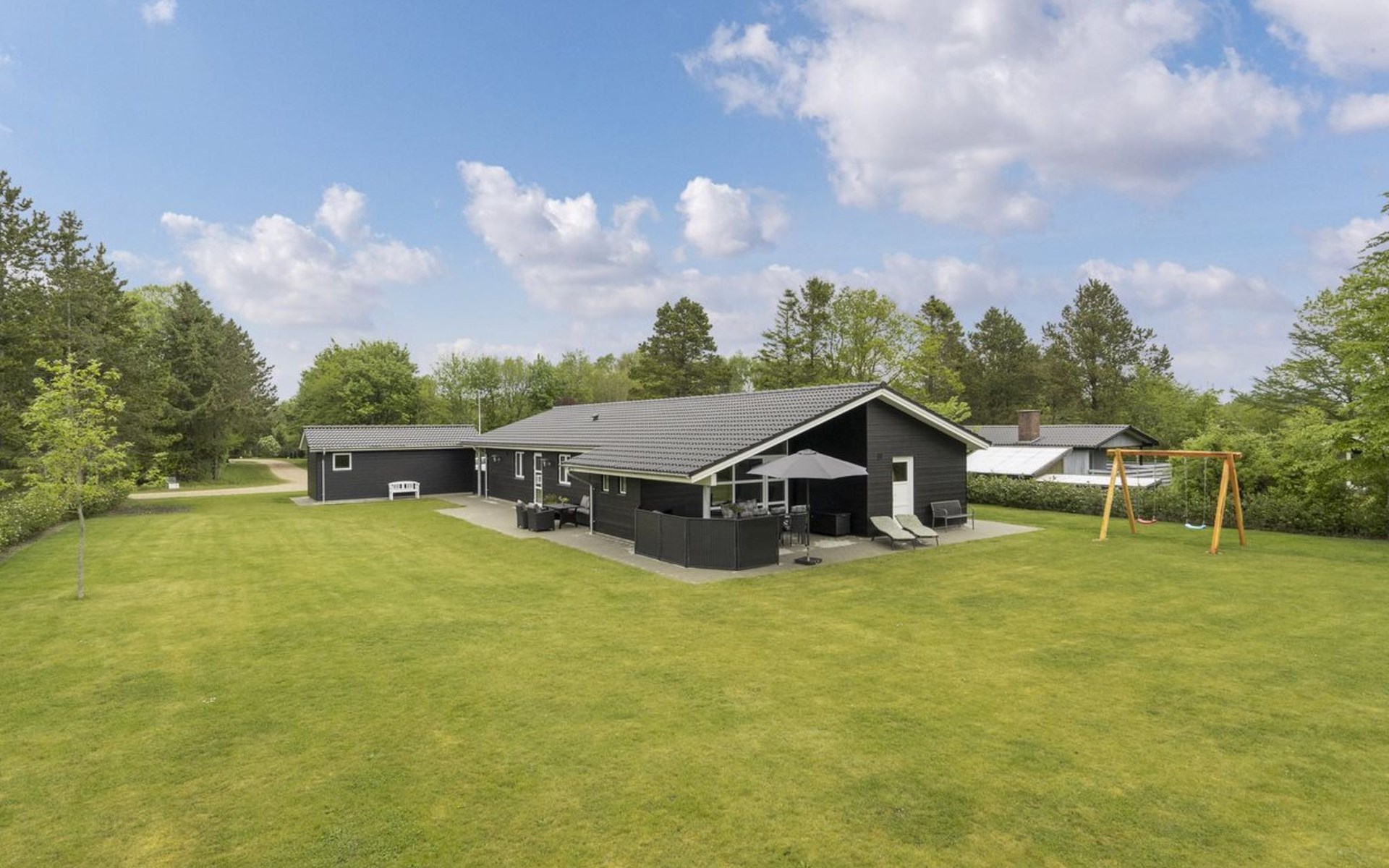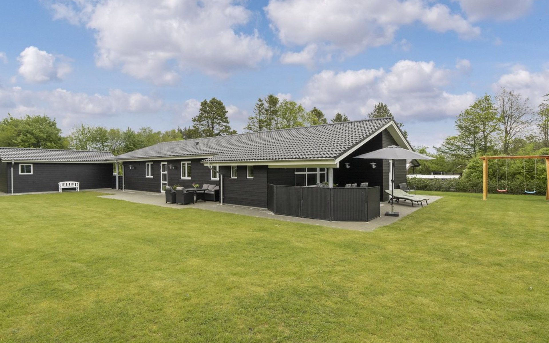 Einfamilienhaus, Baujahr 2022. 14 km vom Meer. Zur Alleinbenutzung: Grundstück 1'500 m2, gepflegter Garten. (Schaukel). Im Hause: Waschmaschine, Wäschetrockner. Parkplatz beim Haus. Carport. E-Ladestation. Lebensmittelgeschäft 1 km. Der Besitzer akzeptiert keine Jugendgruppen.