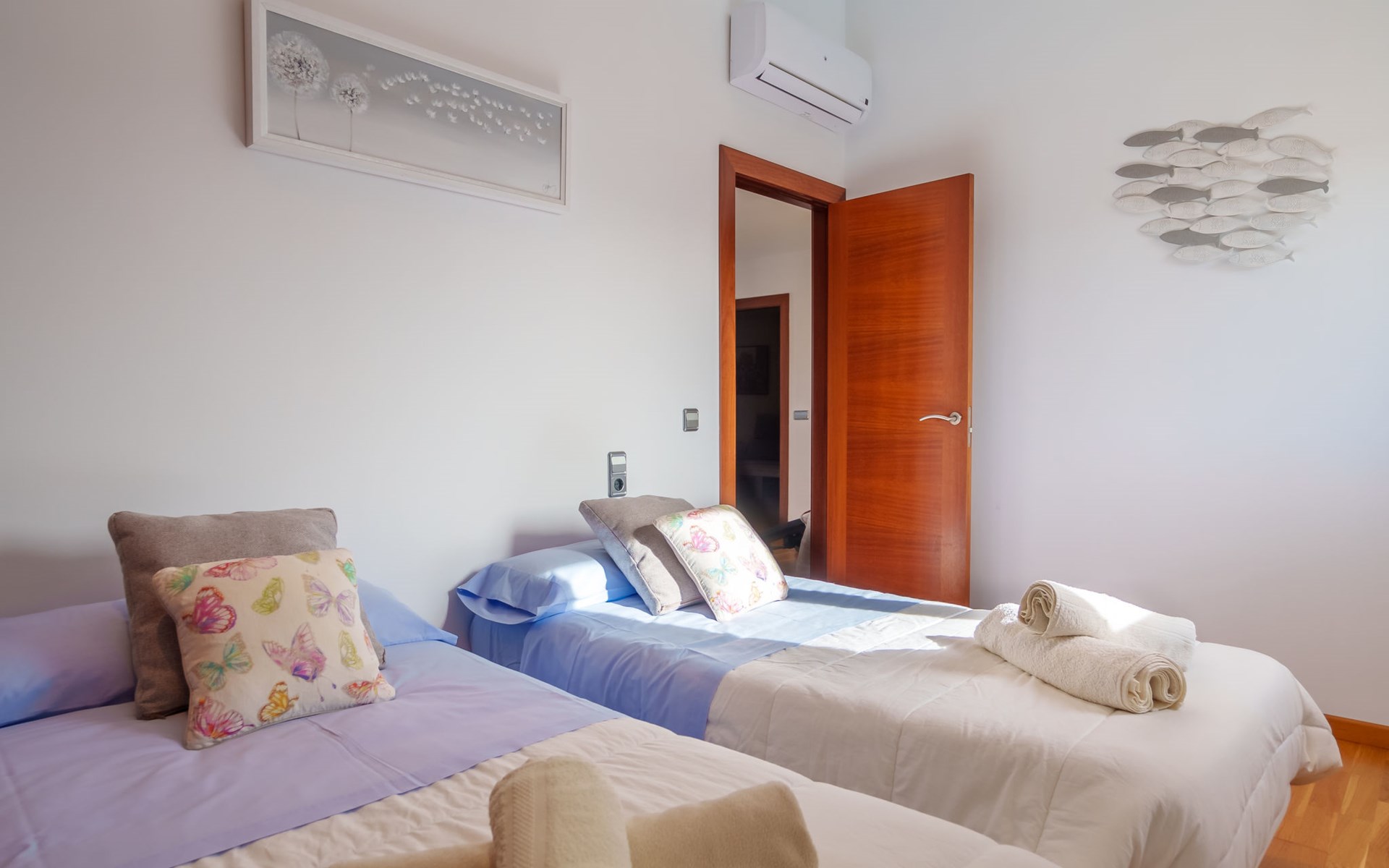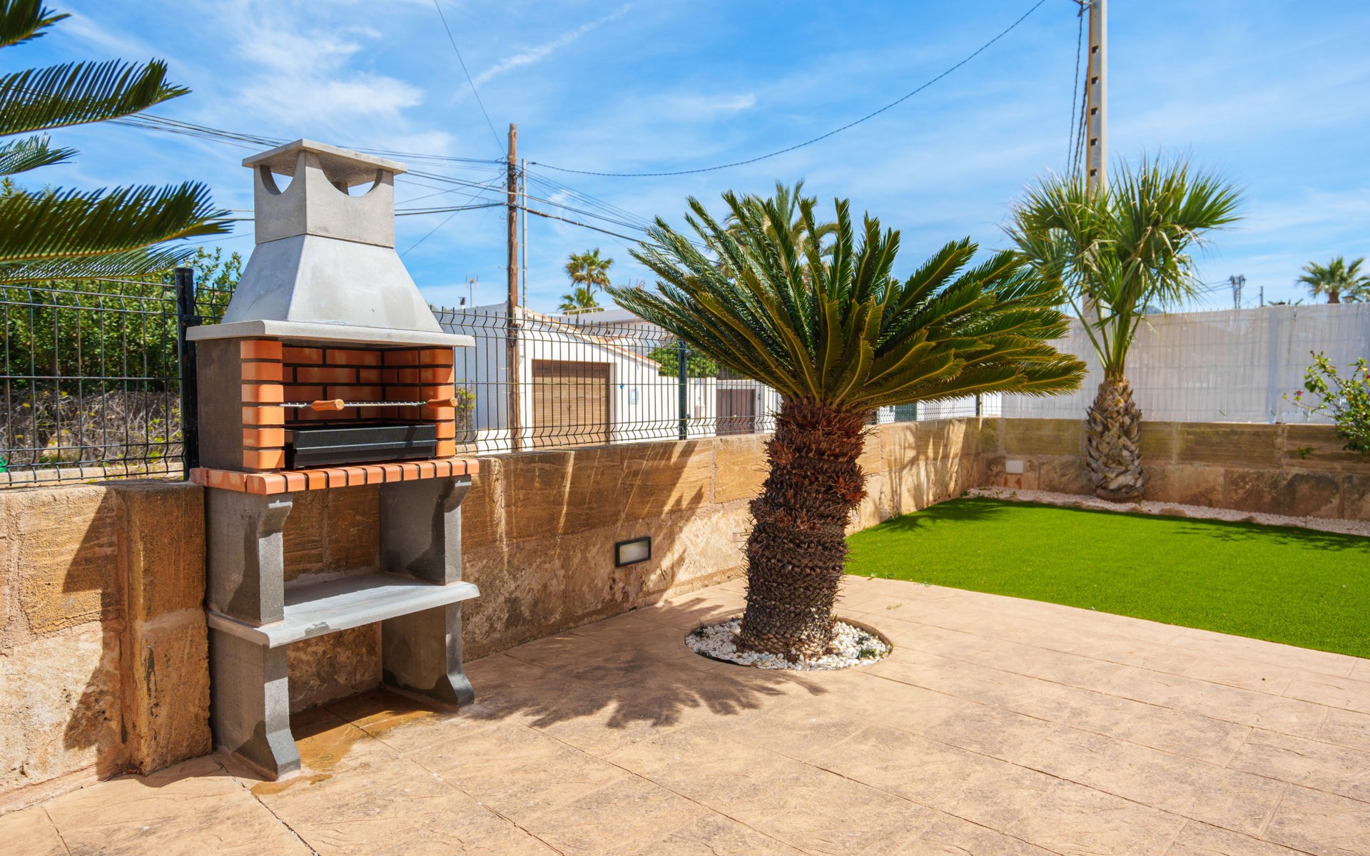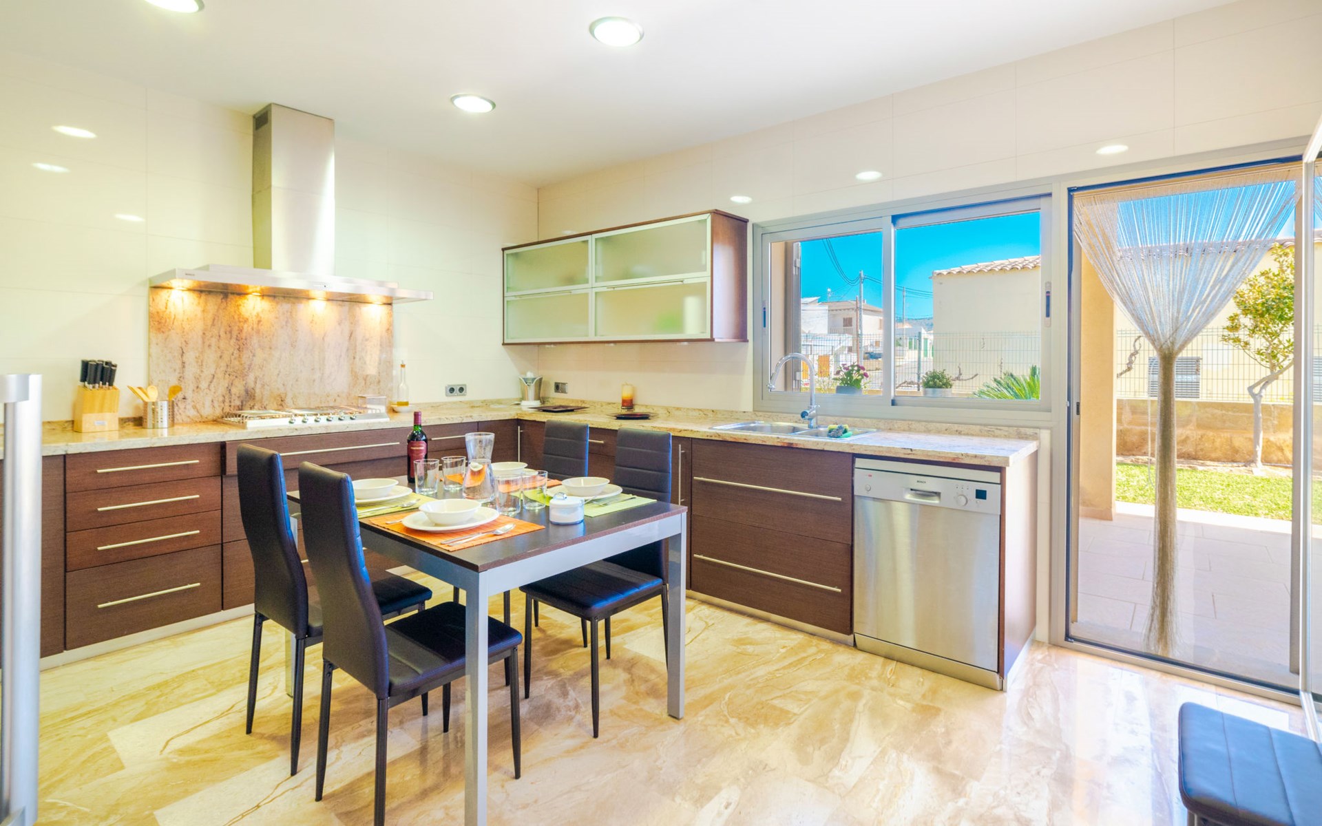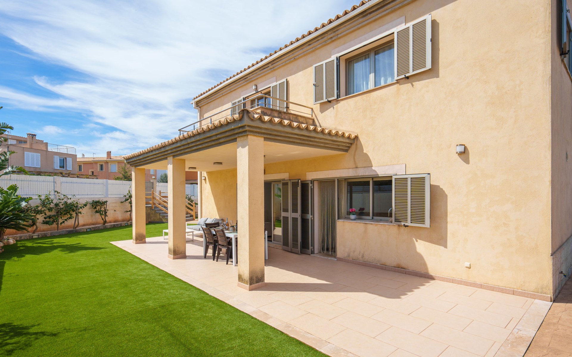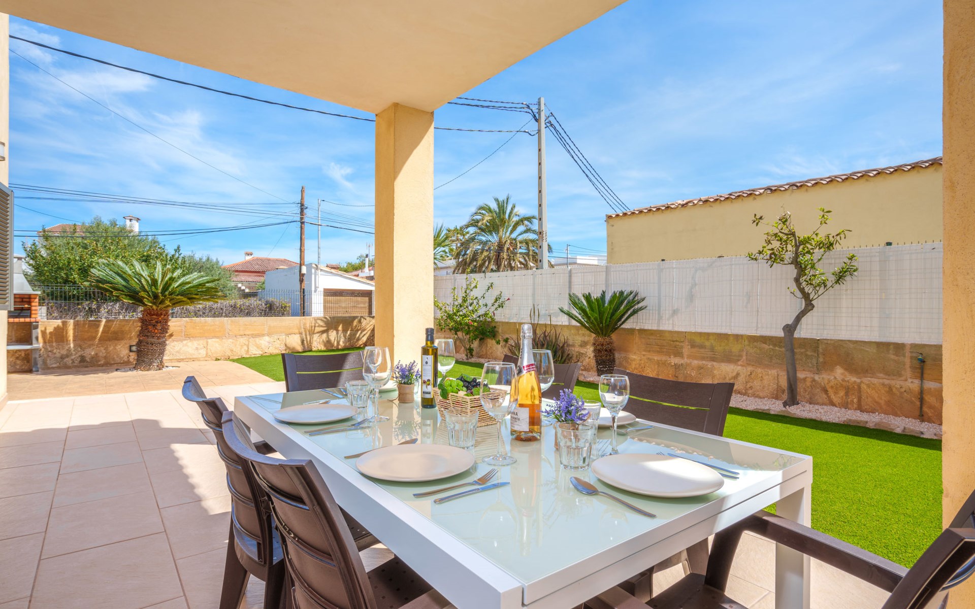 Barcarés 1 km von Alcúdia: Sehr grosse, sehr moderne, freistehende Villa "Son Jil", auf 2 Stockwerken, Baujahr 2005. Ruhige, sonnige Lage im Villenviertel, 2 km vom Waldrand, 60 m vom Meer, Strasse zu überqueren. Zur Alleinbenutzung: grosser, gepflegter Garten mit Rasen und Pflanzen, Schwimmbad eckig (8 x 4 m, 150 - 150 cm tief, saisonale Verfügbarkeit: 01.Jan. - 31.Dez.) mit Salzelektrolyse-Reinigungssystem. Aussendusche, Sitzplatz, Laube, Pergola, Gartenmöbel, Grill. Im Hause: Internetzugang, Wireless LAN, Zentralheizung, Klimaanlage, Waschmaschine. Öffentliches Parkhaus, öffentliche Parkplätze auf der Strasse. Einkaufsgeschäft 1 km, Supermarkt 1.2 km, Einkaufszentrum 45 km, Restaurant 160 m, Bar, Fußgängerzone 50 m, Zentrum zu Fuss in 15 Minuten erreichbar, Bushaltestelle 1.5 km, Fähre 3 km, Sandstrand "Platja Es Morer Vermell" 550 m, Felsstrand "Platja Es Barcarés" 60 m. Sporthafen 250 m, Jacht-Hafen 3 km, Golfplatz (18 Loch) 6 km, Tennis 2.5 km, Reitstall 2.5 km, Sportzentrum 2.5 km, Wanderwege ab Haus 1 km, Radweg 700 m, Kinderspielplatz 500 m. Nahe gelegene Sehenswürdigkeiten: Ermita de la Victoria, Barcarés, Manresa, Sa Marina, Es Malpas. Ciutat Romana de Pollentia, Alcudia. Port d'Alcúdia, Port de Pollença - Pollença, North Beaches. Wandergebiete: Sa Talaia, Es Puig de Sant Martí, Serra Tramuntana Pollença. Bitte beachten: geeignet für Familien, geeignet für Senioren. Objekt geeignet für 8 Erwachsene Jugendgruppen nur auf Anfrage. Flugplatz 60 km vom Haus.