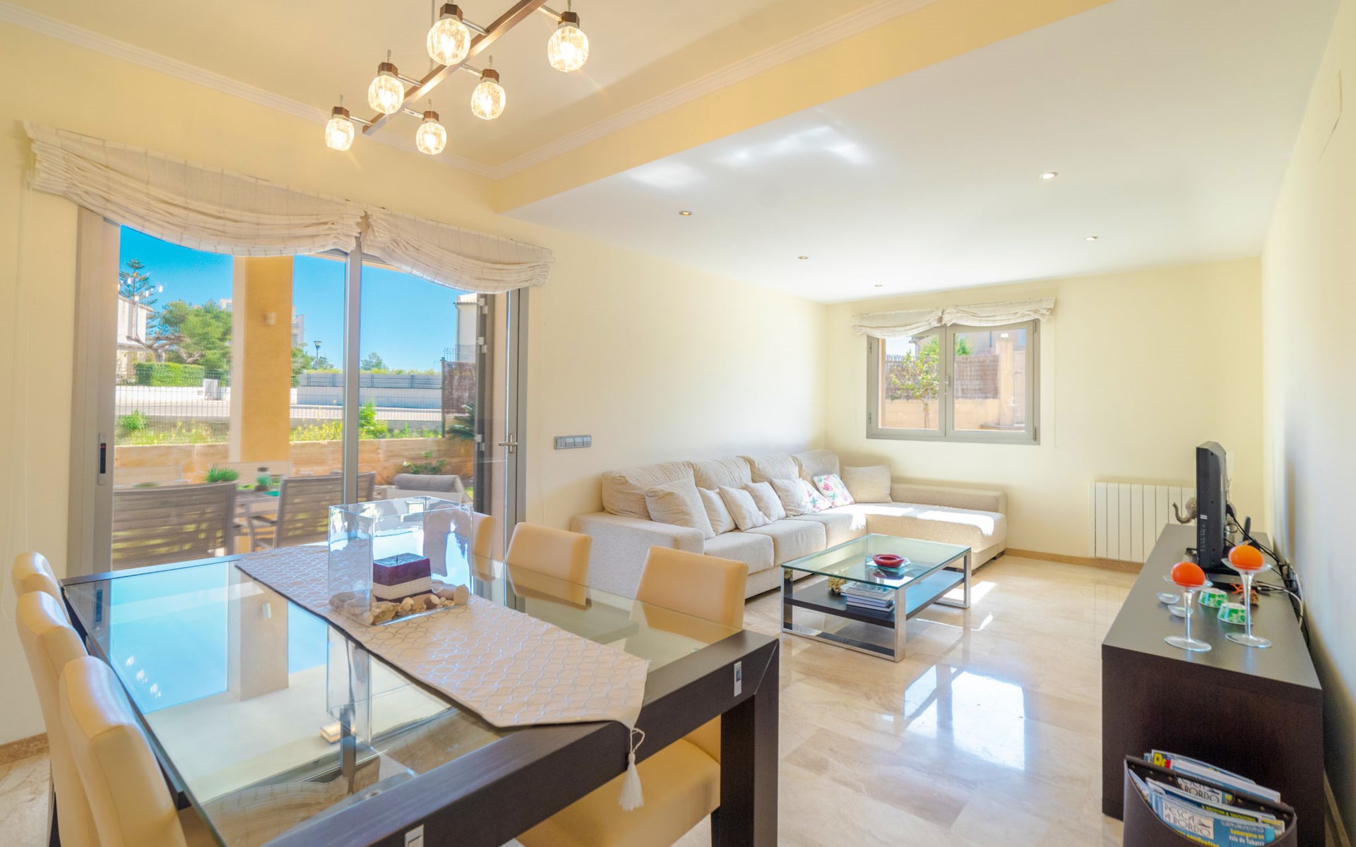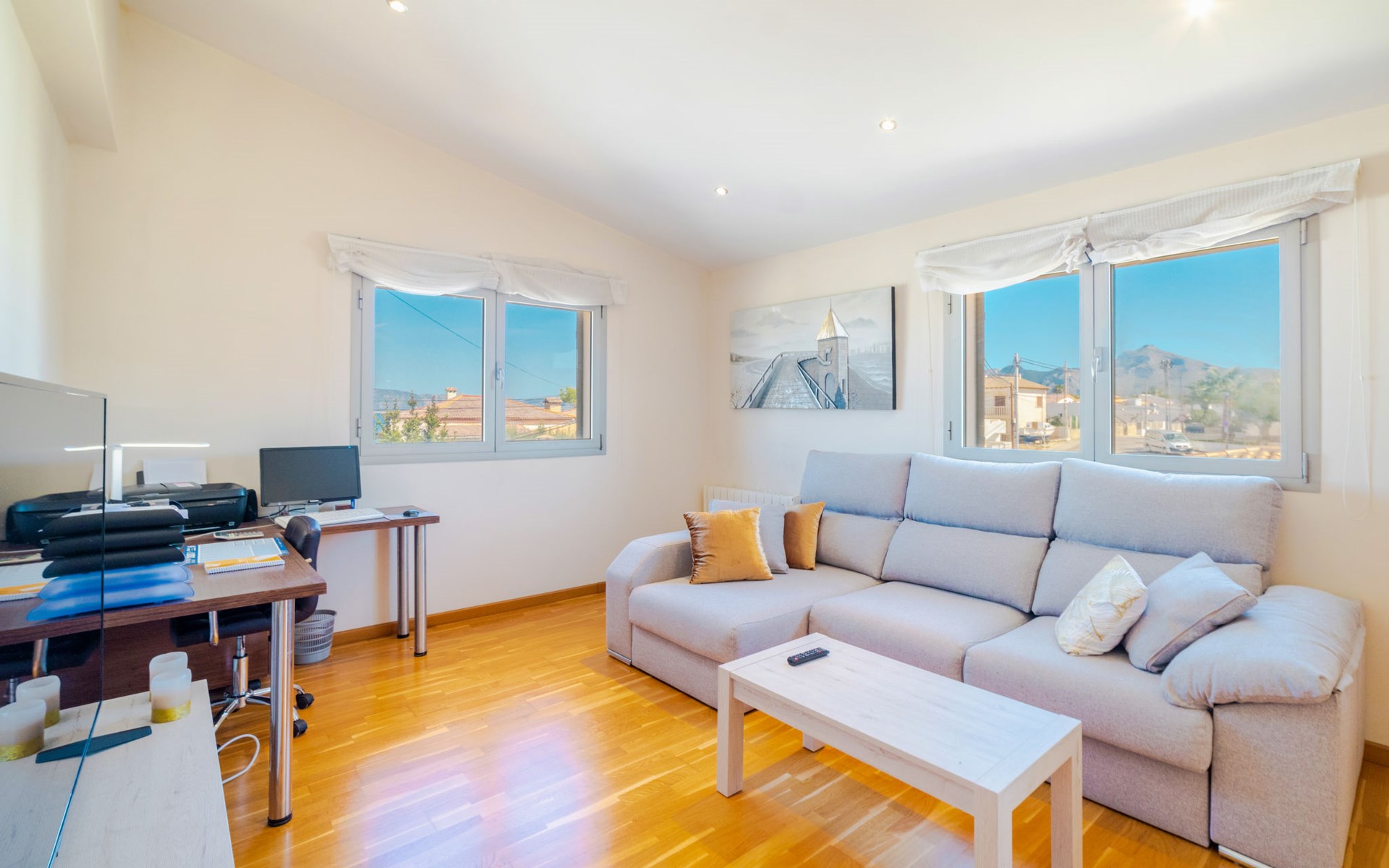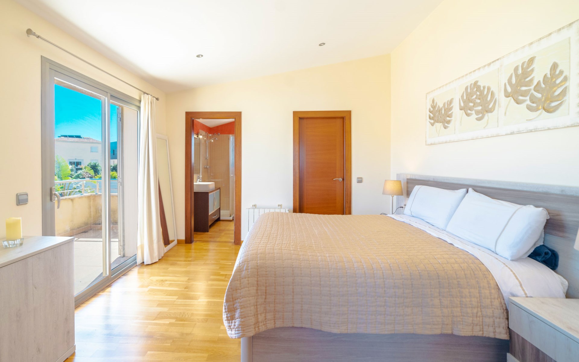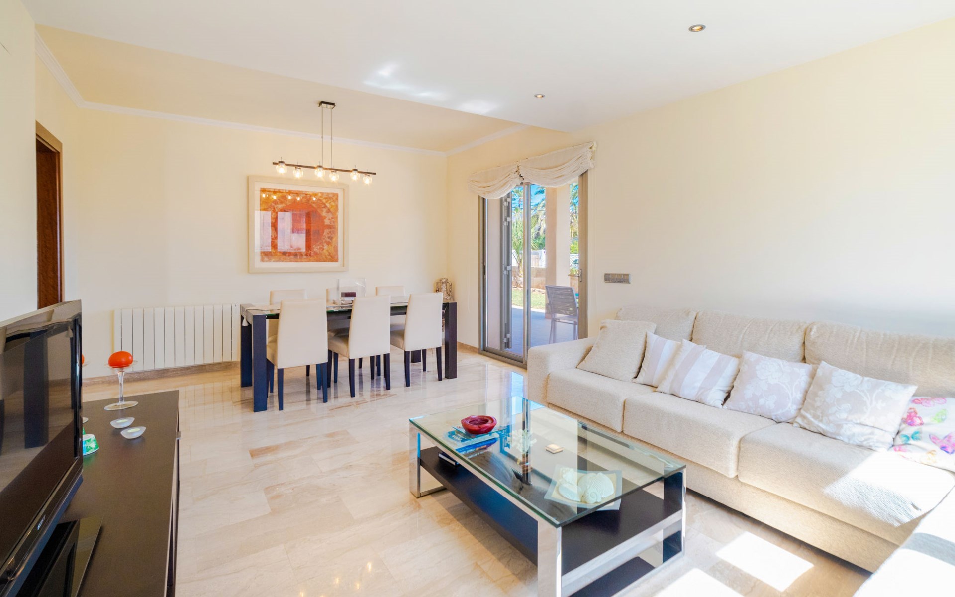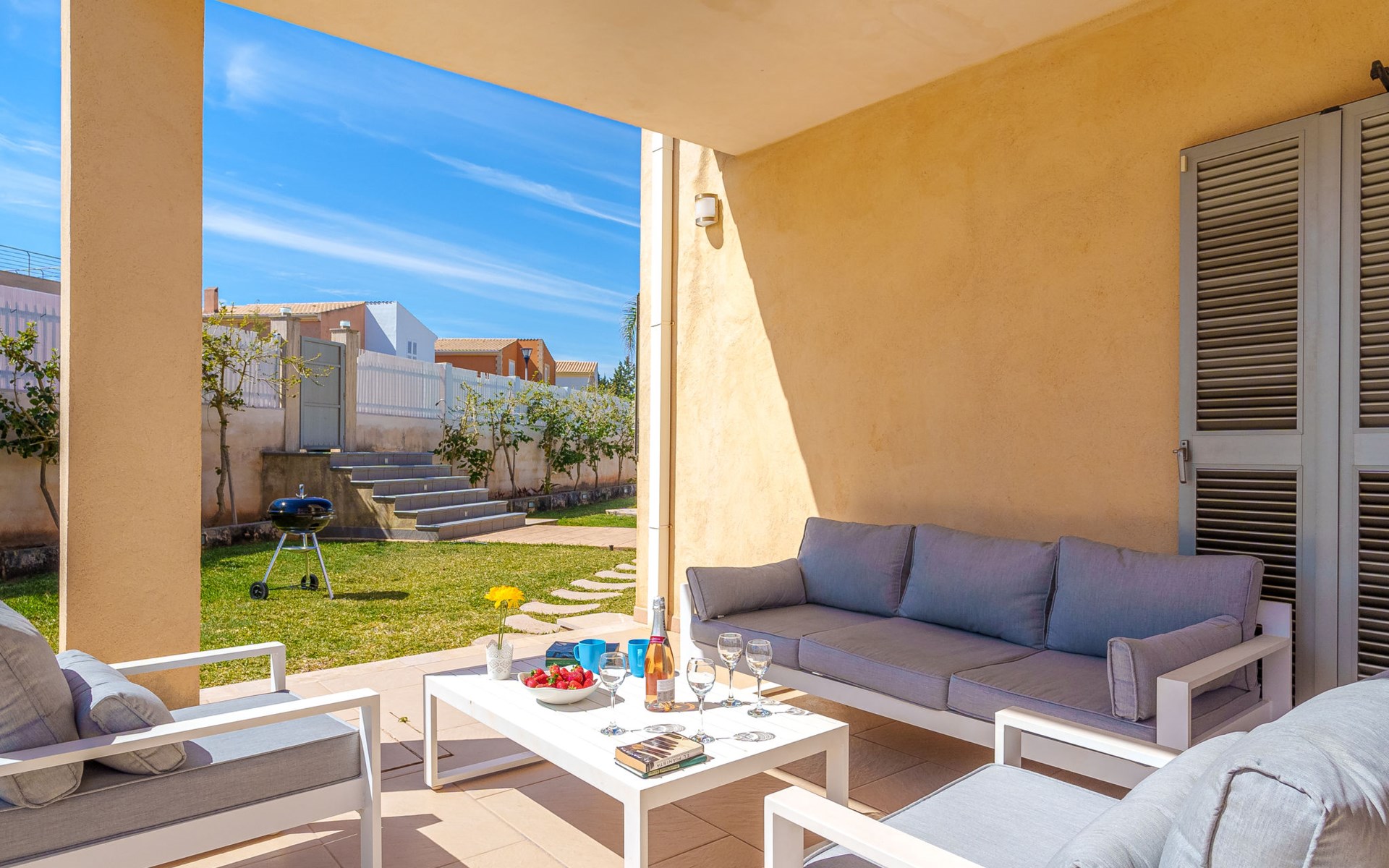 Barcarés 1 km von Alcúdia: Sehr grosse, sehr moderne, freistehende Villa "Son Jil", auf 2 Stockwerken, Baujahr 2005. Ruhige, sonnige Lage im Villenviertel, 2 km vom Waldrand, 60 m vom Meer, Strasse zu überqueren. Zur Alleinbenutzung: grosser, gepflegter Garten mit Rasen und Pflanzen, Schwimmbad eckig (8 x 4 m, 150 - 150 cm tief, saisonale Verfügbarkeit: 01.Jan. - 31.Dez.) mit Salzelektrolyse-Reinigungssystem. Aussendusche, Sitzplatz, Laube, Pergola, Gartenmöbel, Grill. Im Hause: Internetzugang, Wireless LAN, Zentralheizung, Klimaanlage, Waschmaschine. Öffentliches Parkhaus, öffentliche Parkplätze auf der Strasse. Einkaufsgeschäft 1 km, Supermarkt 1.2 km, Einkaufszentrum 45 km, Restaurant 160 m, Bar, Fußgängerzone 50 m, Zentrum zu Fuss in 15 Minuten erreichbar, Bushaltestelle 1.5 km, Fähre 3 km, Sandstrand "Platja Es Morer Vermell" 550 m, Felsstrand "Platja Es Barcarés" 60 m. Sporthafen 250 m, Jacht-Hafen 3 km, Golfplatz (18 Loch) 6 km, Tennis 2.5 km, Reitstall 2.5 km, Sportzentrum 2.5 km, Wanderwege ab Haus 1 km, Radweg 700 m, Kinderspielplatz 500 m. Nahe gelegene Sehenswürdigkeiten: Ermita de la Victoria, Barcarés, Manresa, Sa Marina, Es Malpas. Ciutat Romana de Pollentia, Alcudia. Port d'Alcúdia, Port de Pollença - Pollença, North Beaches. Wandergebiete: Sa Talaia, Es Puig de Sant Martí, Serra Tramuntana Pollença. Bitte beachten: geeignet für Familien, geeignet für Senioren. Objekt geeignet für 8 Erwachsene Jugendgruppen nur auf Anfrage. Flugplatz 60 km vom Haus.