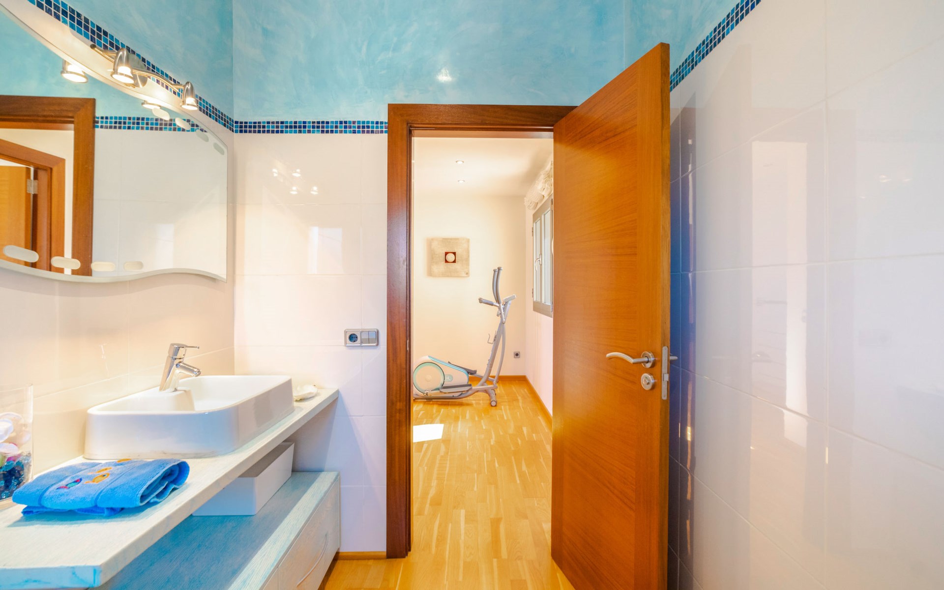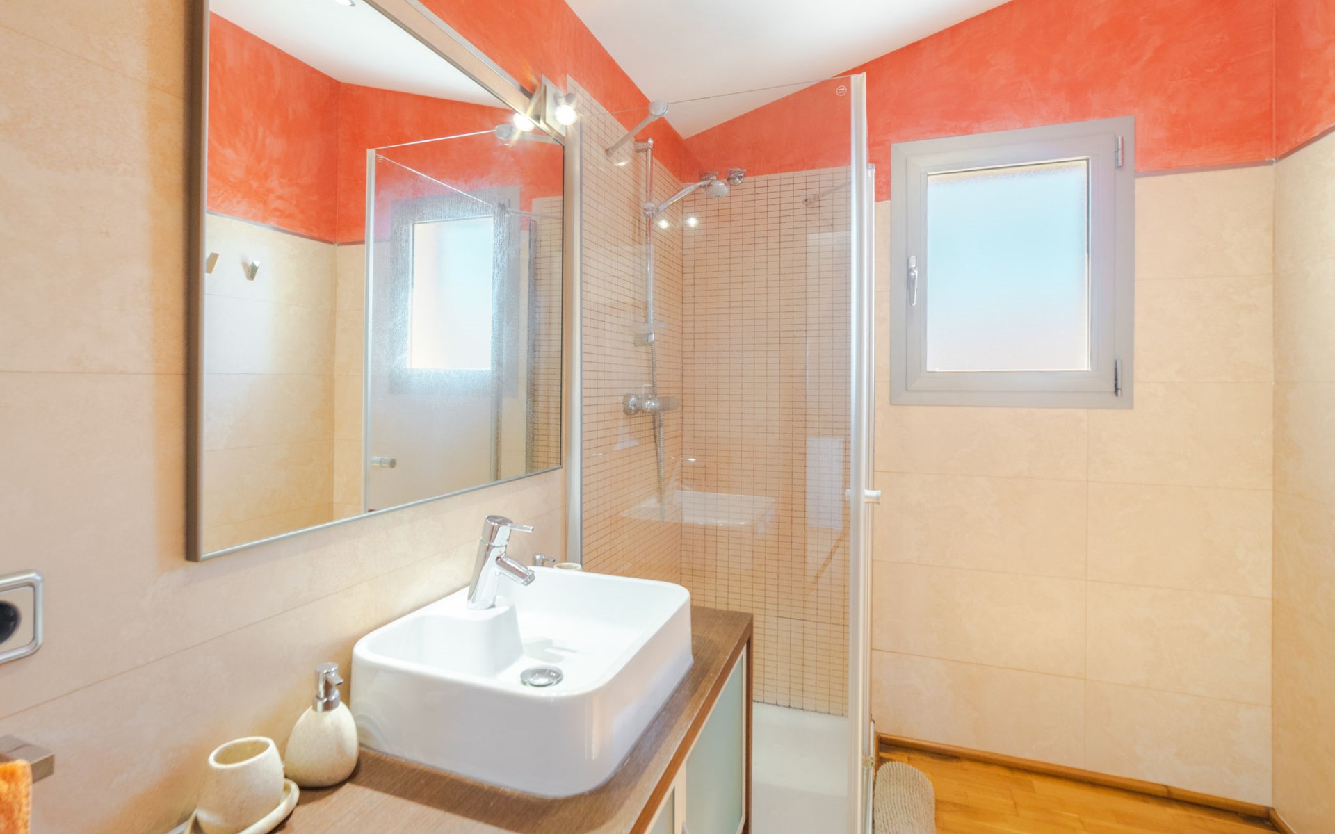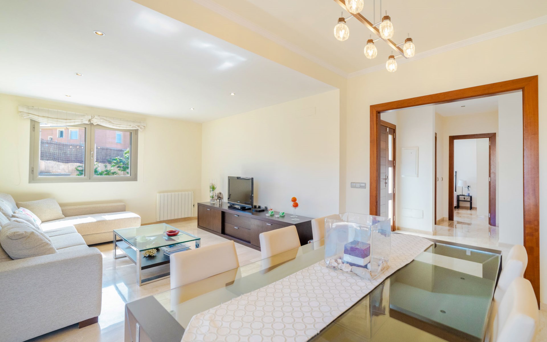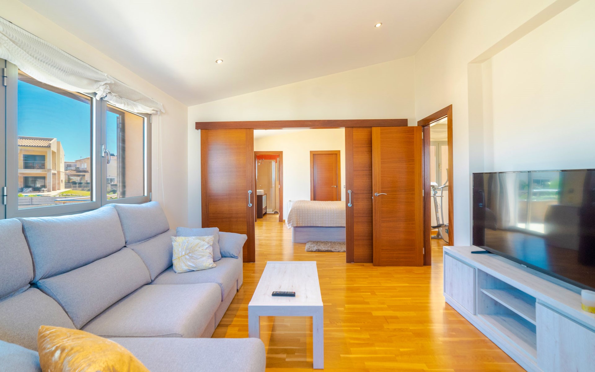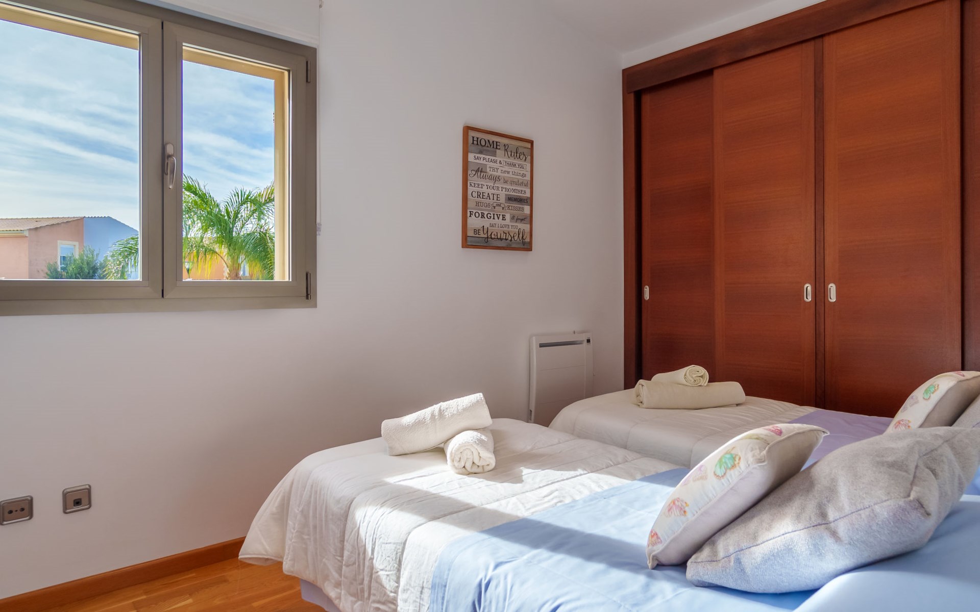Barcarés 1 km von Alcúdia: Sehr grosse, sehr moderne, freistehende Villa "Son Jil", auf 2 Stockwerken, Baujahr 2005. Ruhige, sonnige Lage im Villenviertel, 2 km vom Waldrand, 60 m vom Meer, Strasse zu überqueren. Zur Alleinbenutzung: grosser, gepflegter Garten mit Rasen und Pflanzen, Schwimmbad eckig (8 x 4 m, 150 - 150 cm tief, saisonale Verfügbarkeit: 01.Jan. - 31.Dez.) mit Salzelektrolyse-Reinigungssystem. Aussendusche, Sitzplatz, Laube, Pergola, Gartenmöbel, Grill. Im Hause: Internetzugang, Wireless LAN, Zentralheizung, Klimaanlage, Waschmaschine. Öffentliches Parkhaus, öffentliche Parkplätze auf der Strasse. Einkaufsgeschäft 1 km, Supermarkt 1.2 km, Einkaufszentrum 45 km, Restaurant 160 m, Bar, Fußgängerzone 50 m, Zentrum zu Fuss in 15 Minuten erreichbar, Bushaltestelle 1.5 km, Fähre 3 km, Sandstrand "Platja Es Morer Vermell" 550 m, Felsstrand "Platja Es Barcarés" 60 m. Sporthafen 250 m, Jacht-Hafen 3 km, Golfplatz (18 Loch) 6 km, Tennis 2.5 km, Reitstall 2.5 km, Sportzentrum 2.5 km, Wanderwege ab Haus 1 km, Radweg 700 m, Kinderspielplatz 500 m. Nahe gelegene Sehenswürdigkeiten: Ermita de la Victoria, Barcarés, Manresa, Sa Marina, Es Malpas. Ciutat Romana de Pollentia, Alcudia. Port d'Alcúdia, Port de Pollença - Pollença, North Beaches. Wandergebiete: Sa Talaia, Es Puig de Sant Martí, Serra Tramuntana Pollença. Bitte beachten: geeignet für Familien, geeignet für Senioren. Objekt geeignet für 8 Erwachsene Jugendgruppen nur auf Anfrage. Flugplatz 60 km vom Haus.