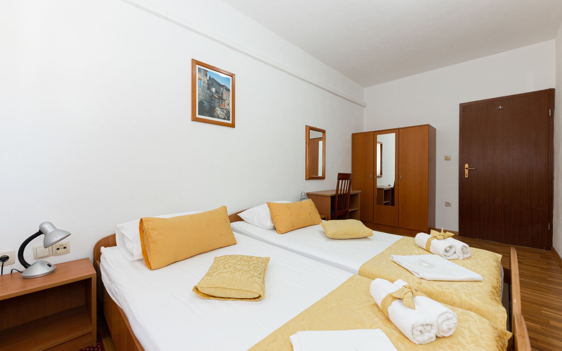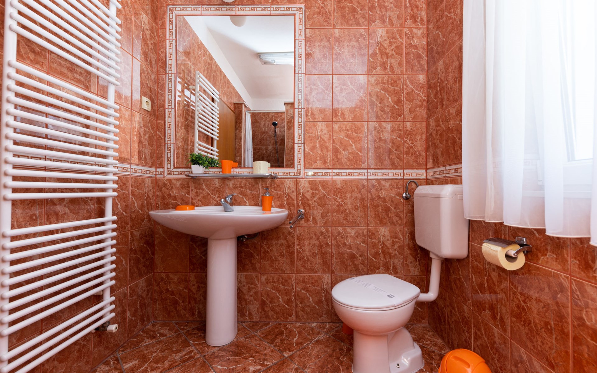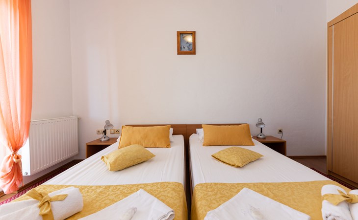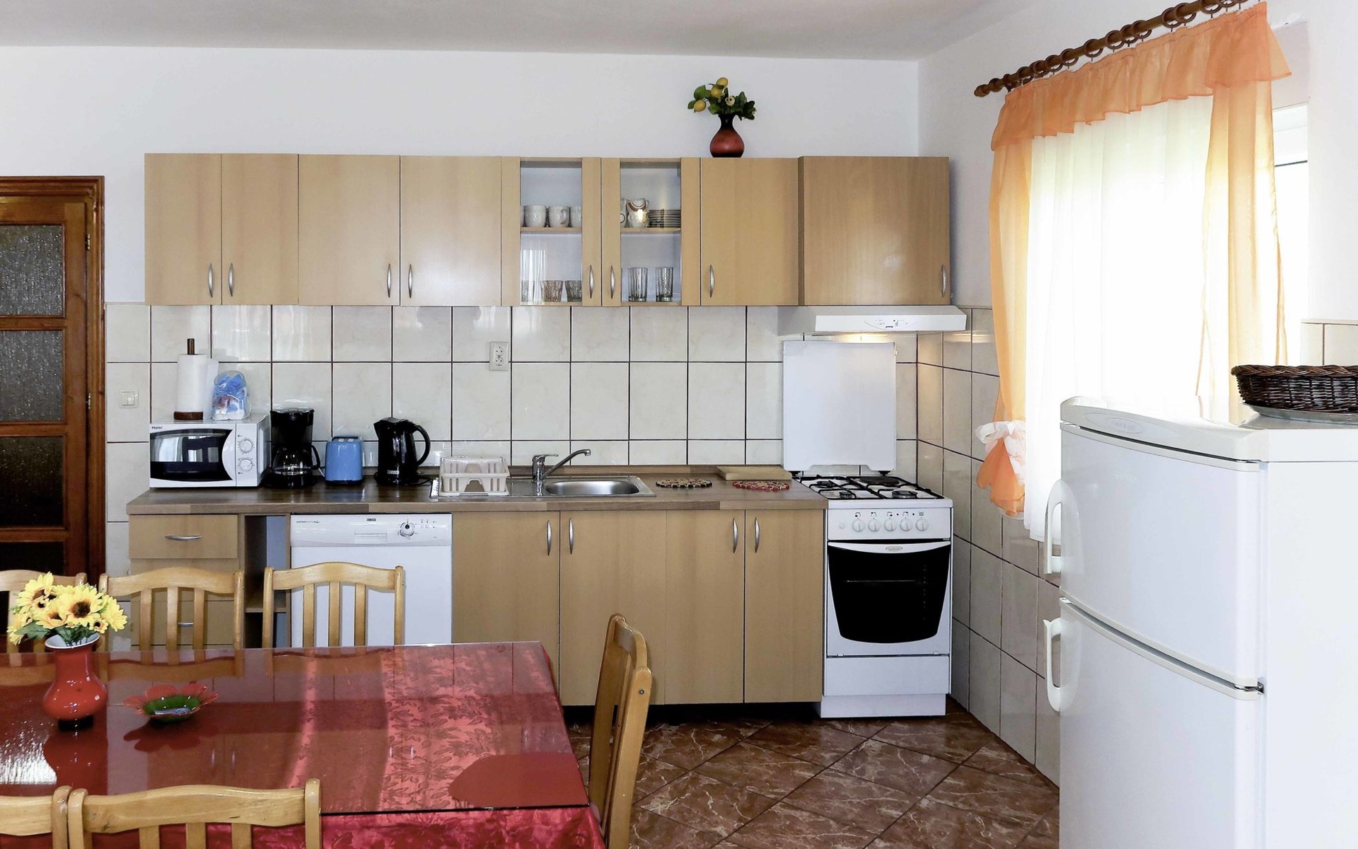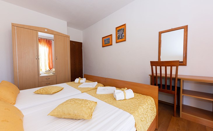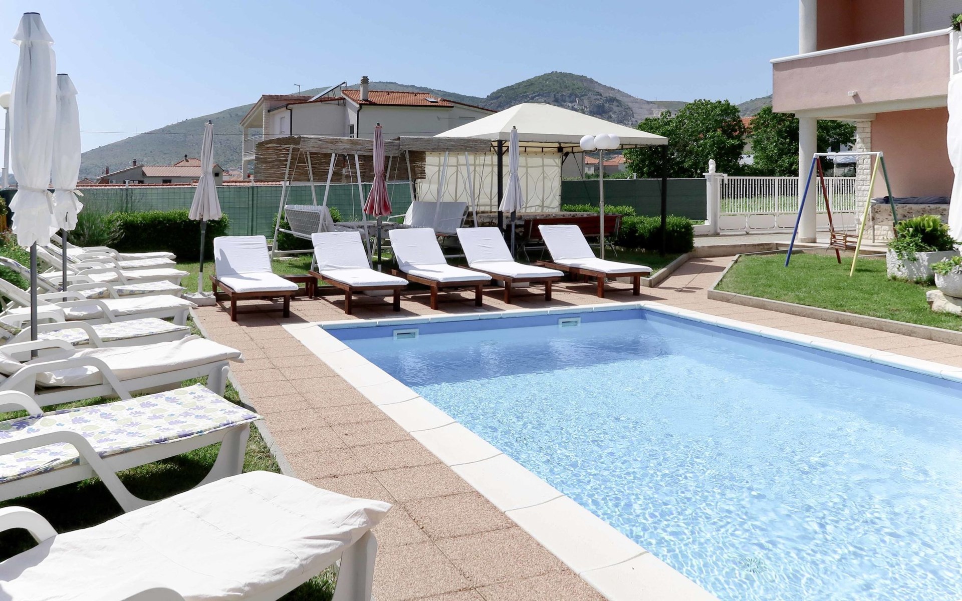 Dreifamilienhaus "Villa Saba". 800 m vom Zentrum von Trogir, 900 m vom Meer, 2.5 km vom Strand. Zur Mitbenutzung: Grundstück 700 m2 (eingezäunt) mit Rasen und Bäumen, Schwimmbad (6 x 4 m, 150 cm tief, saisonale Verfügbarkeit: 03.Apr. - 06.Nov.) mit Innentreppe. Aussendusche, Terrasse. Im Hause: Internetzugang. Parkplatz beim Haus auf dem Grundstück. Supermarkt 800 m, Bushaltestelle 950 m, Felsstrand 2.5 km. Keine Vermietung an Jugendgruppen.