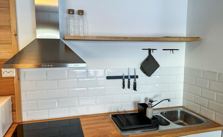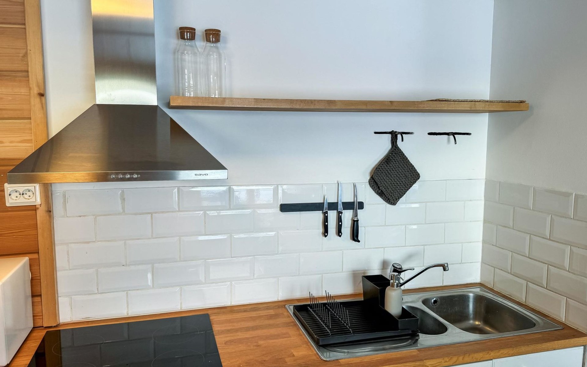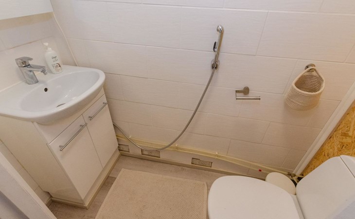 Tap water comes from the lake, but passes through a purification system and is drinkable. Wi-Fi is available via 4G. In the bathroom, there is a water pump whose sound can be heard in other rooms when water is drawn from the tap.