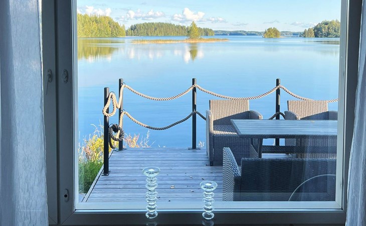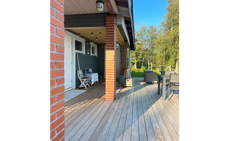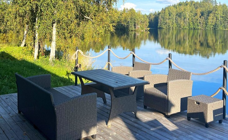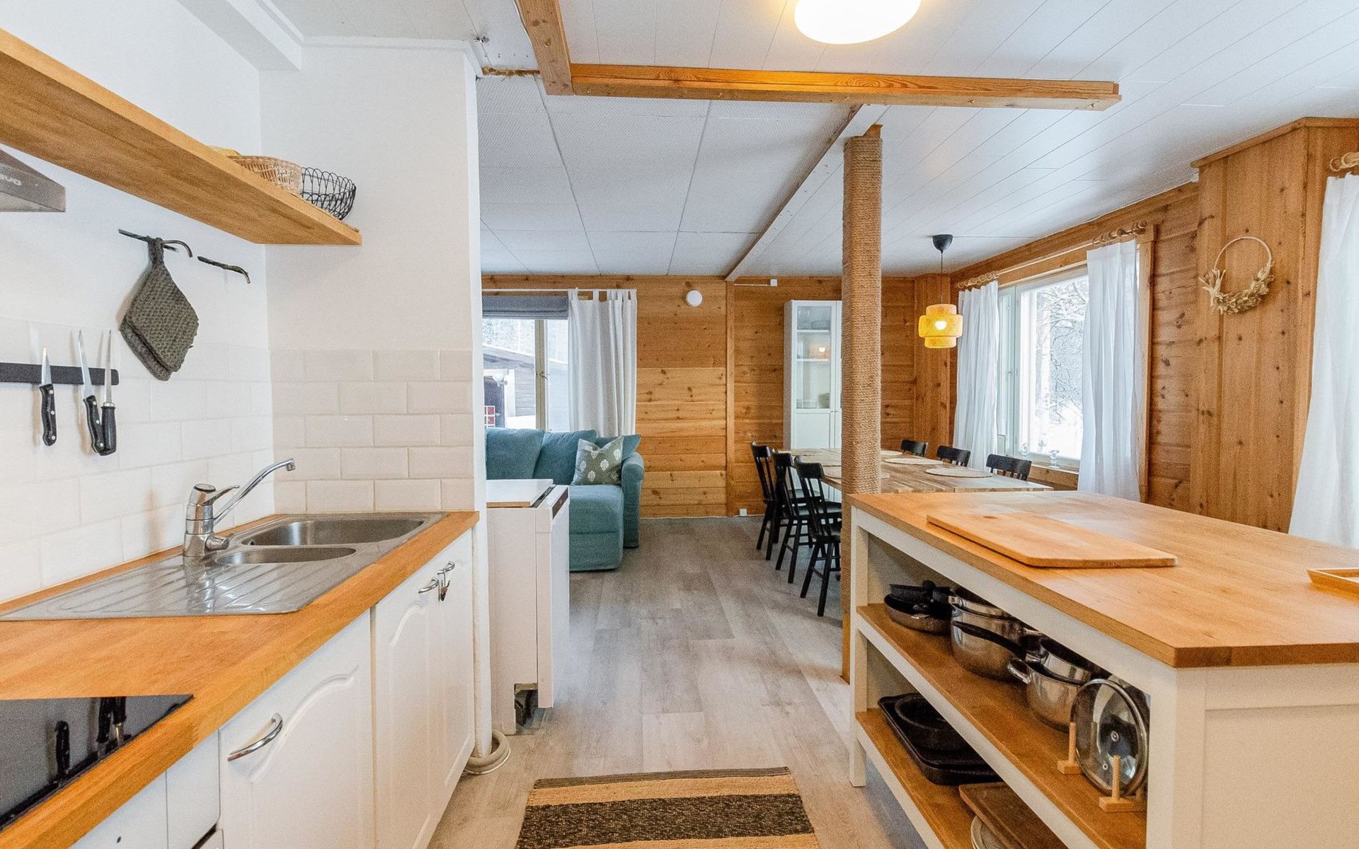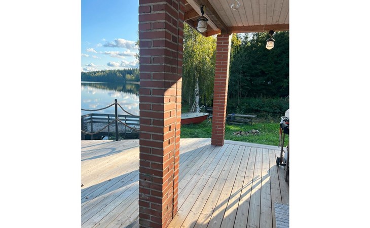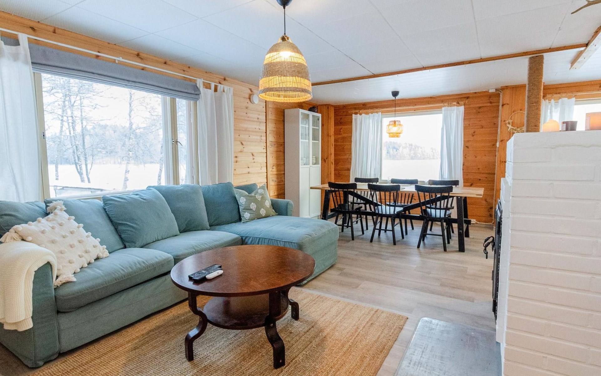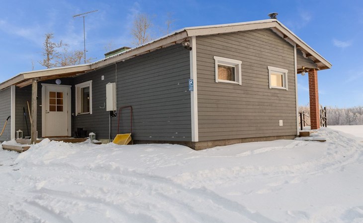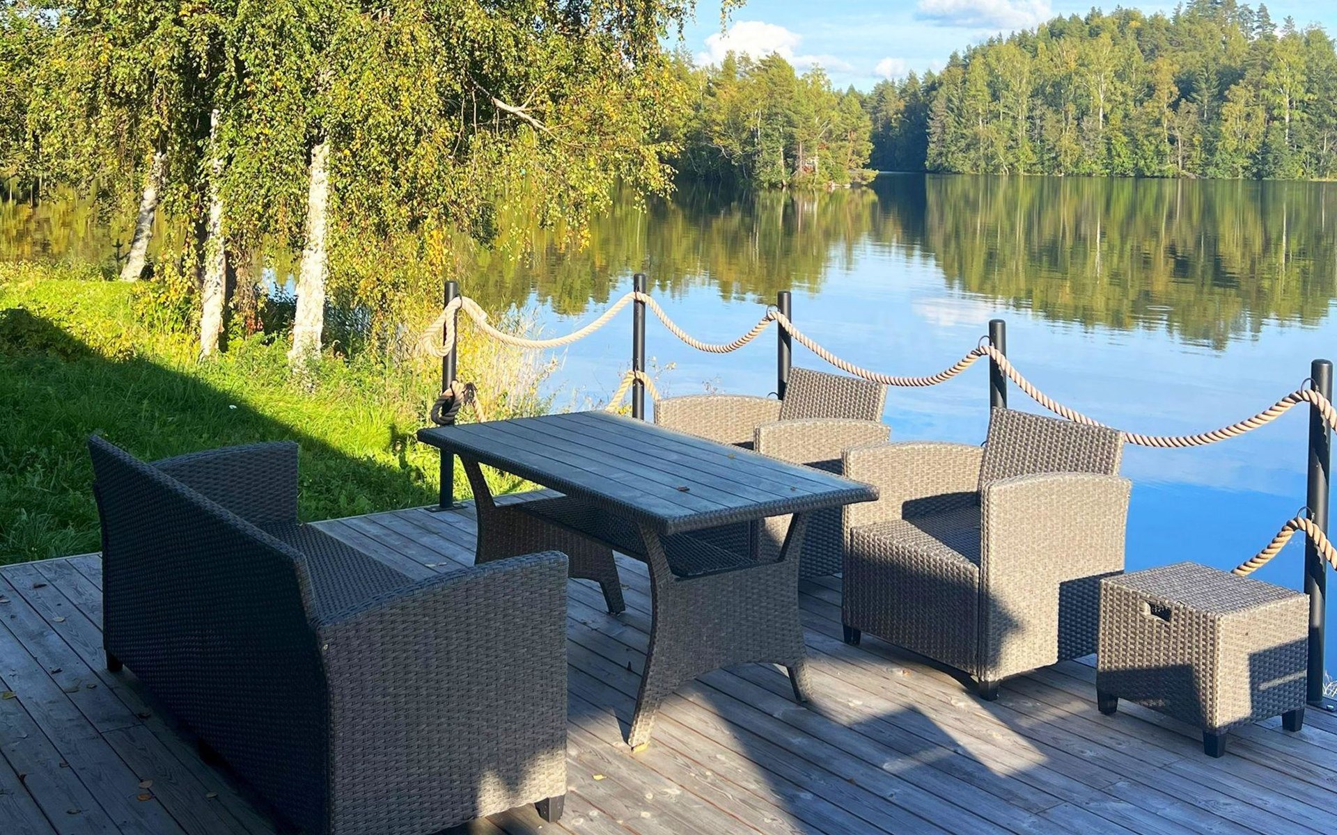 Holiday cabin, built in 1965 and fully renovated in 2023. The living room and bedroom both feature pull-out sofa beds, with an additional double bed in the bedroom alcove. Access from the bedroom to the bathroom and sauna, which has a wood-burning sauna stove. Terrace.