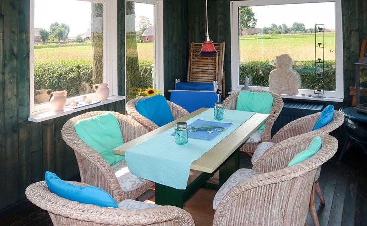Freistehendes Zweifamilienhaus "Huuske am Polder", auf 2 Stockwerken. Im Ortsteil Ditzumerhamrich, 4 km vom Zentrum von Ditzum, 4 km vom Meer, im Grünen. Zur Alleinbenutzung: Grundstück 1'400 m2, schöner, gepflegter Garten mit Bäumen, Wiese. Laube, Gartenmöbel. Im Hause: Fahrräder vorhanden. Einkaufsgeschäft 3 km, Supermarkt 4 km, Bahnstation "Leer" 18 km, Fähre "Ditzum" 5.5 km, Sandstrand "Norddeich" 88 km, Hallenbad 20 km, Badesee "Soltborg" 12 km. Besitzer nutzt Räume im Haus. Dollart 4 km. Die Besitzerin hält sich gelegentlich zur Grundstückpflege auf.