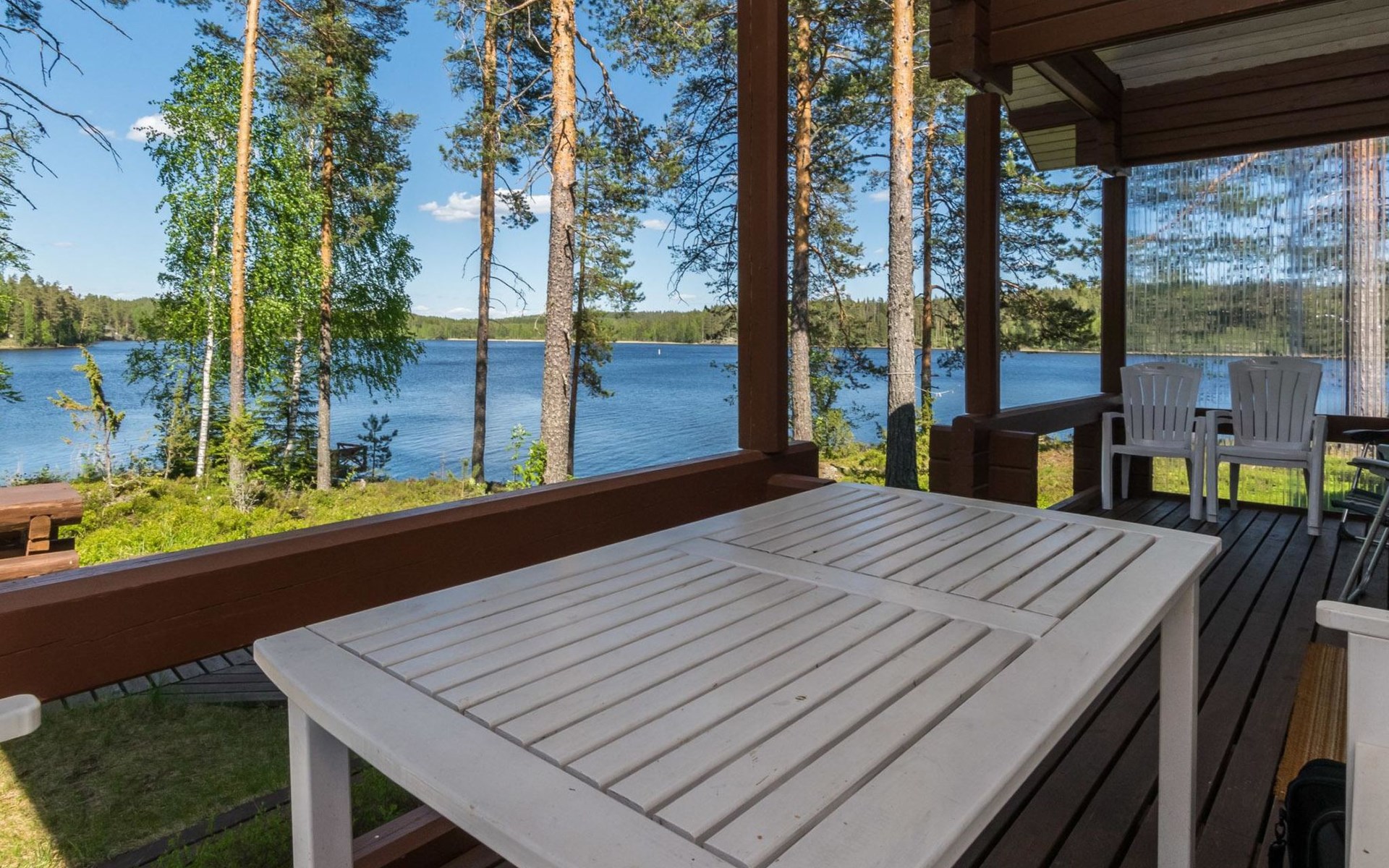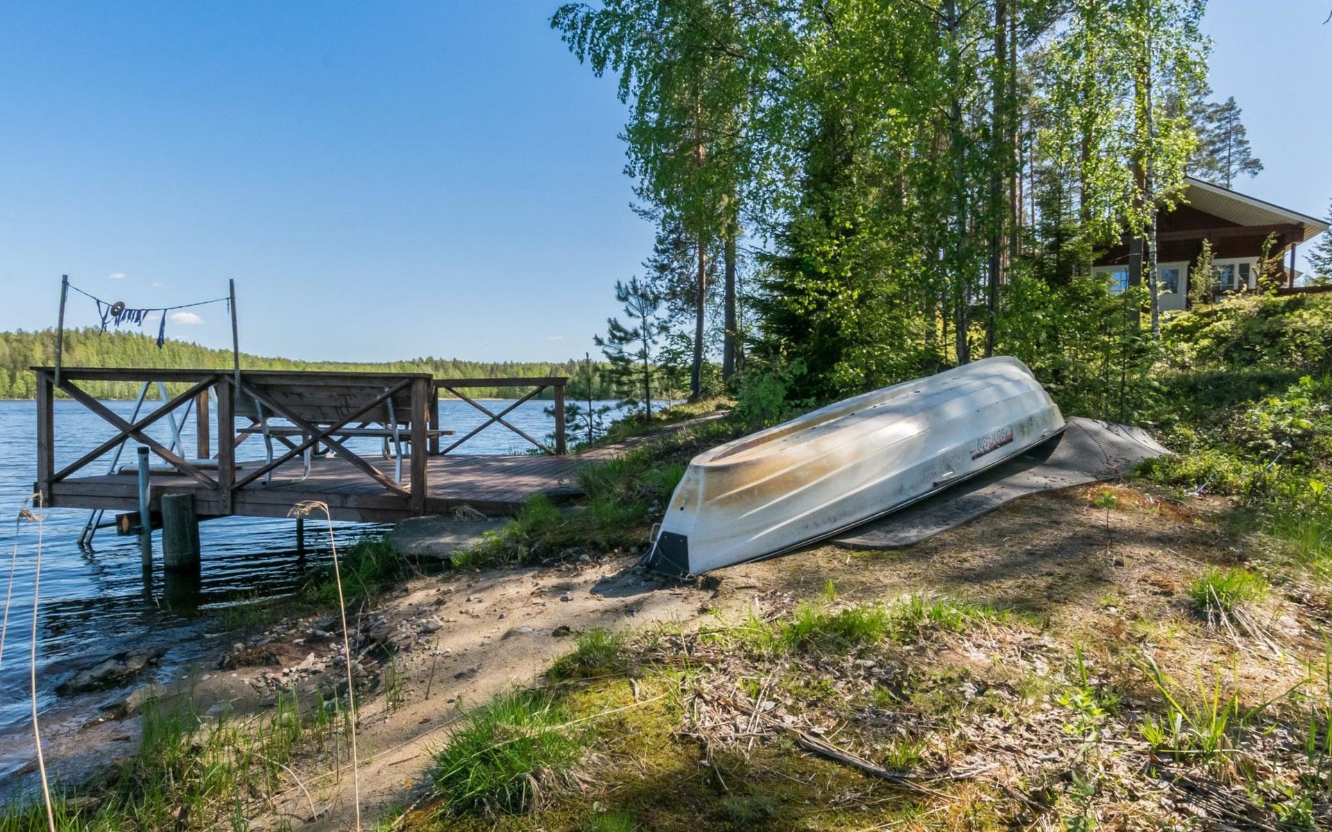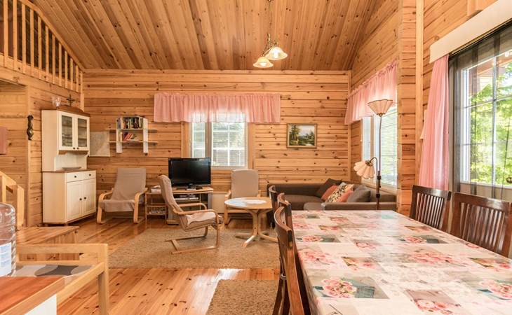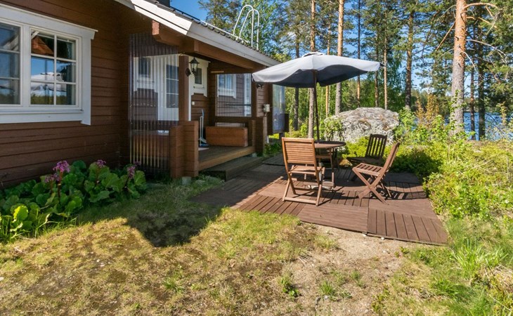 69 km südöstlich von Savonlinna, See Ylä-Tyrjäjärvi 25 m (Länge 2 km, Breite 1 km), tiefer und harter Fels-/Sandboden, Anlegestelle und eigenes Boot. Block-Ferienhaus, Baujahr 2005, Wohnküche, 2 Schlafzimmer mit je 2 Betten, Schlafboden mit 4 Betten, Veranda, Sauna, Waschraum, Ankleideraum, Toilette, WiFi. Satelliten-Fernsehen. Der Besitzer bringt Trinkwasser ins Haus. Gute Angelgewässer. Das Ferienhaus befindet sich in der Grenzzone, die Erlaubnis zum Rudern im Grenzgebiet des Sees ist kostenlos erhältlich. Folgende Informationen werden benötigt: die Namen der Passagiere und ihre Geburtsdaten, sowie Reisepassnummer, zusätzlich noch Ausstellungsdatum und -Ort des Reisepasses von der Person, die für die Buchung verantwortlich ist. Diese Informationen bitte rechtzeitig vor der Anreise ins Büro Lomarengas oder dem Hausbesitzer schicken. Saari Kirche 3.5 km, Handelsmuseum 5 km, Stein von Mykkii 10 km, Siikalahti Vogelsee 20 km, Skulpturenpark 29 km, Punkaharju 35 km, Lusto 44 km, Kesämaa und Retretti 44 km, Savonlinna 69 km, Imatra 85 km, Helsinki 340 km.