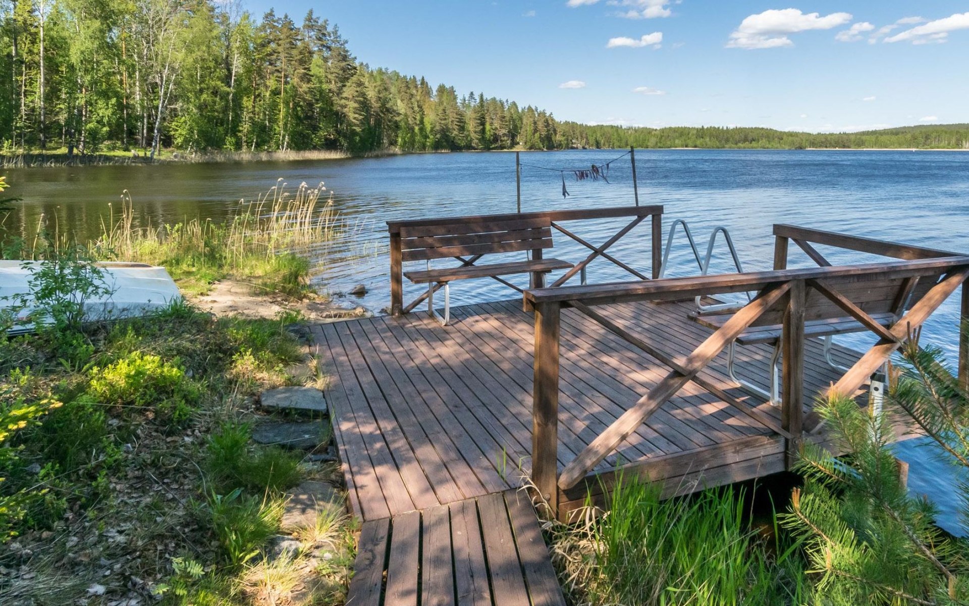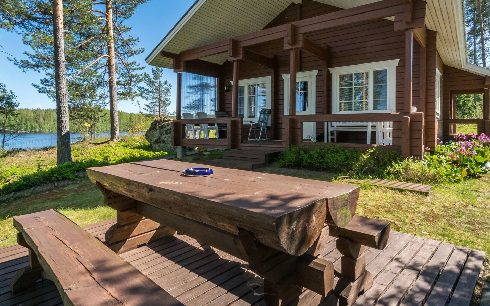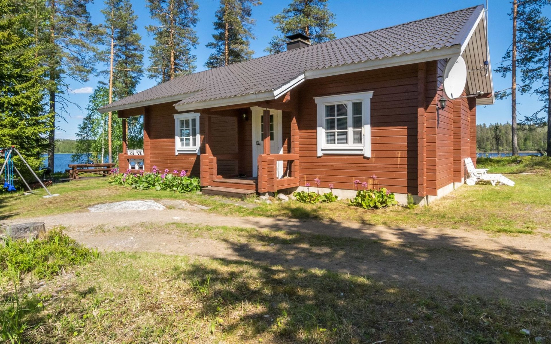 69 km südöstlich von Savonlinna, See Ylä-Tyrjäjärvi 25 m (Länge 2 km, Breite 1 km), tiefer und harter Fels-/Sandboden, Anlegestelle und eigenes Boot. Block-Ferienhaus, Baujahr 2005, Wohnküche, 2 Schlafzimmer mit je 2 Betten, Schlafboden mit 4 Betten, Veranda, Sauna, Waschraum, Ankleideraum, Toilette, WiFi. Satelliten-Fernsehen. Der Besitzer bringt Trinkwasser ins Haus. Gute Angelgewässer. Das Ferienhaus befindet sich in der Grenzzone, die Erlaubnis zum Rudern im Grenzgebiet des Sees ist kostenlos erhältlich. Folgende Informationen werden benötigt: die Namen der Passagiere und ihre Geburtsdaten, sowie Reisepassnummer, zusätzlich noch Ausstellungsdatum und -Ort des Reisepasses von der Person, die für die Buchung verantwortlich ist. Diese Informationen bitte rechtzeitig vor der Anreise ins Büro Lomarengas oder dem Hausbesitzer schicken. Saari Kirche 3.5 km, Handelsmuseum 5 km, Stein von Mykkii 10 km, Siikalahti Vogelsee 20 km, Skulpturenpark 29 km, Punkaharju 35 km, Lusto 44 km, Kesämaa und Retretti 44 km, Savonlinna 69 km, Imatra 85 km, Helsinki 340 km.