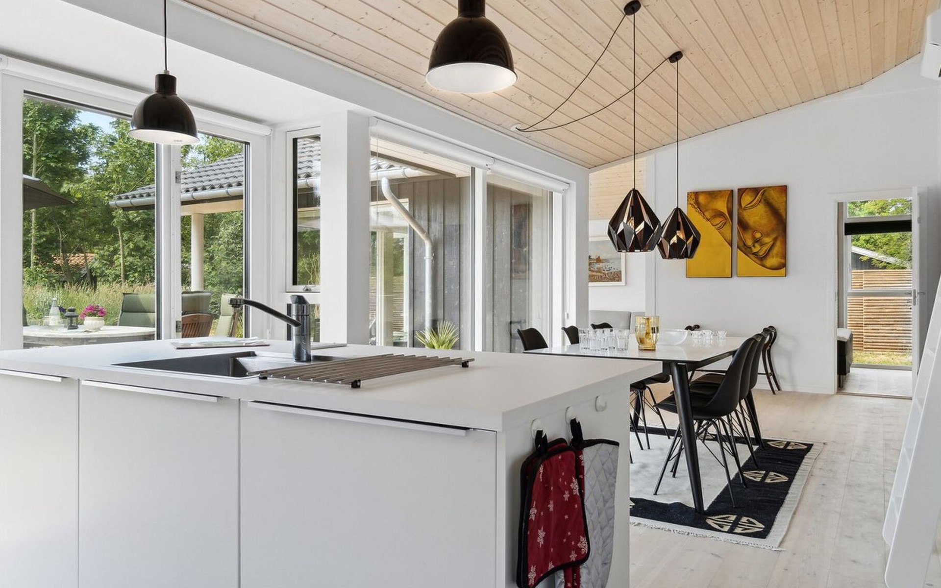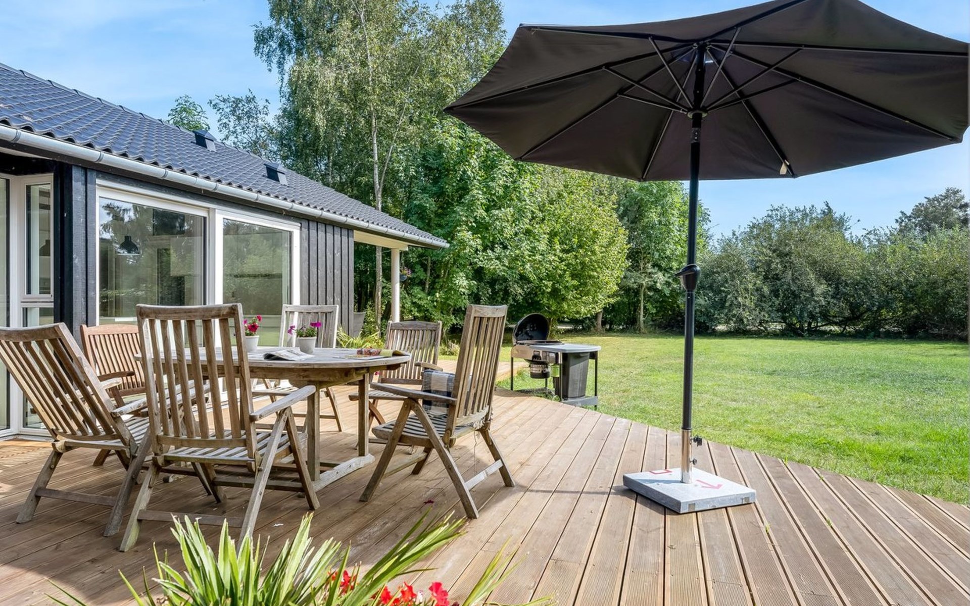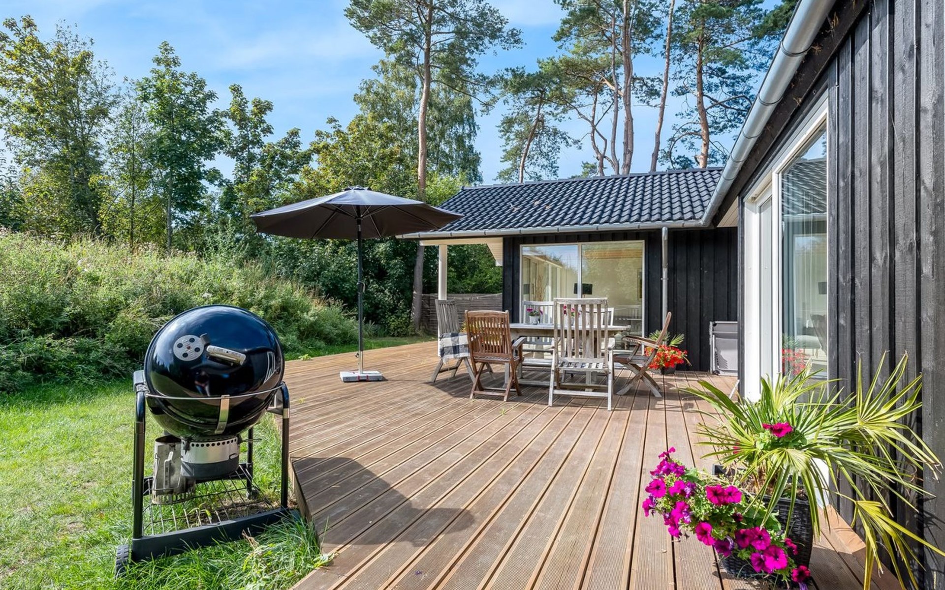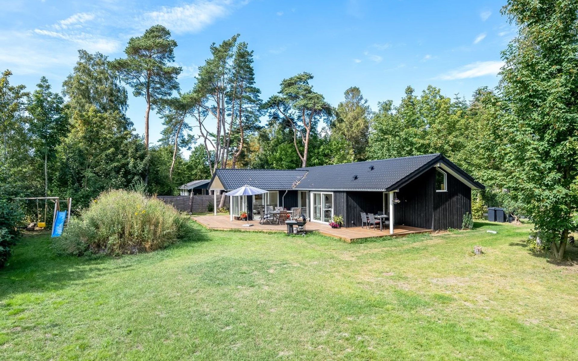 Einfamilienhaus, Baujahr 2022. 200 m vom Meer. Zur Alleinbenutzung: naturbelassenes Grundstück 1'190 m2. Grill, Kinderspielplatz (Rutschbahn, Schaukel). Im Hause: Waschmaschine. Parkplatz beim Haus. Lebensmittelgeschäft 1 km. Golfplatz 3.4 km. Der Besitzer akzeptiert keine Jugendgruppen.