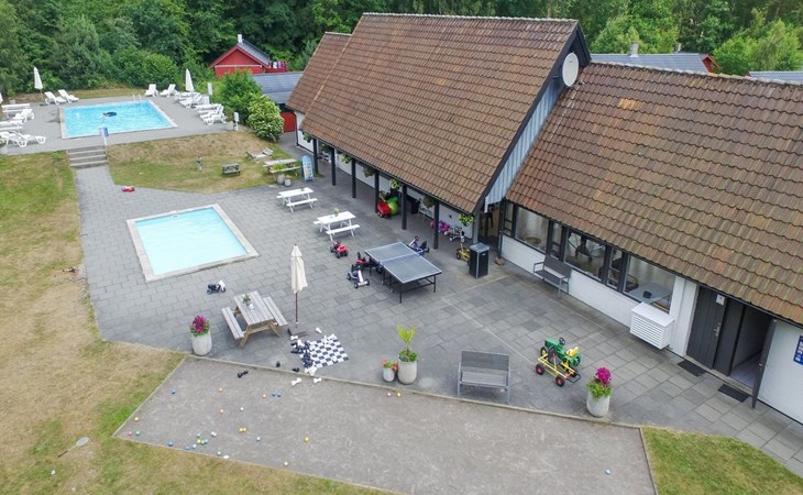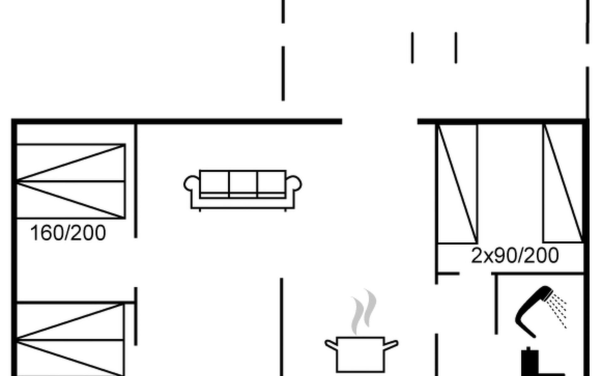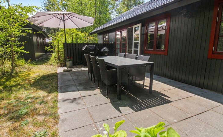 Feriendorf, Baujahr 1973. 125 m vom Meer. Zur Alleinbenutzung: Terrasse (12 m2), Grill, Kinderspielplatz (Schaukel). Lebensmittelgeschäft 1.5 km. Der Besitzer akzeptiert keine Jugendgruppen.