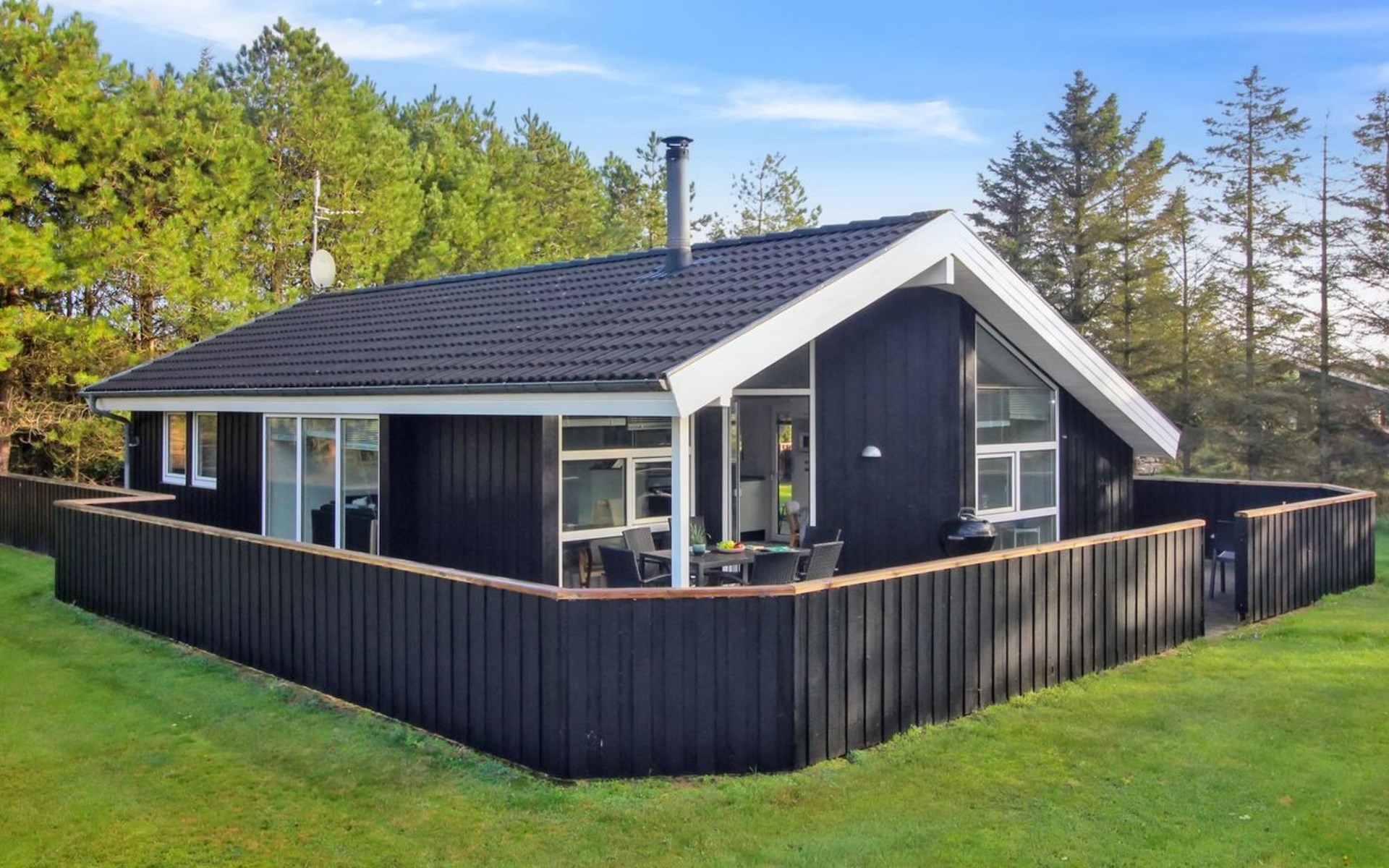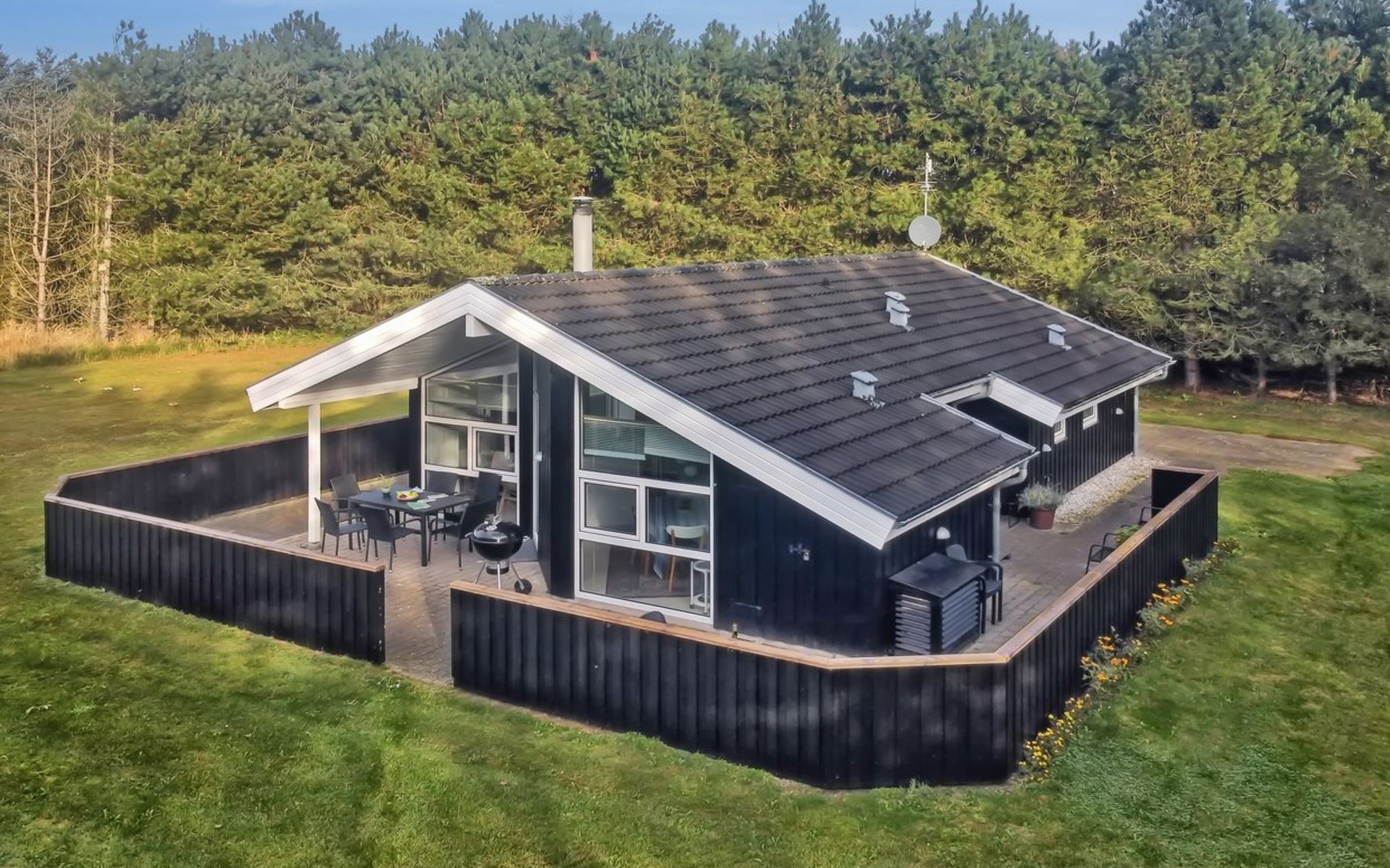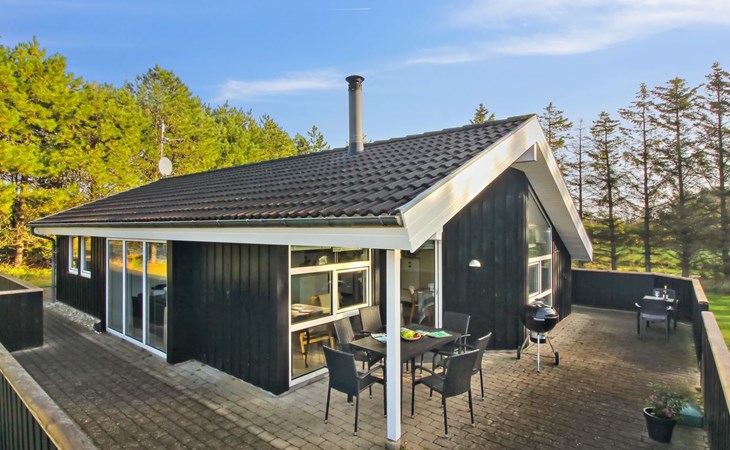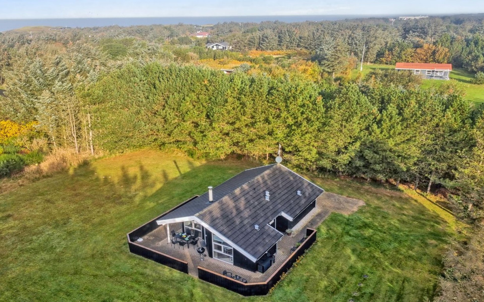 Einfamilienhaus, Baujahr 2000. 500 m vom Meer. Zur Alleinbenutzung: naturbelassenes Grundstück 2'527 m2. Terrasse (112 m2), Kinderspielplatz. Im Hause: Sauna, Waschmaschine. Parkplatz beim Haus. Lebensmittelgeschäft 3.5 km. Der Besitzer akzeptiert keine Jugendgruppen.