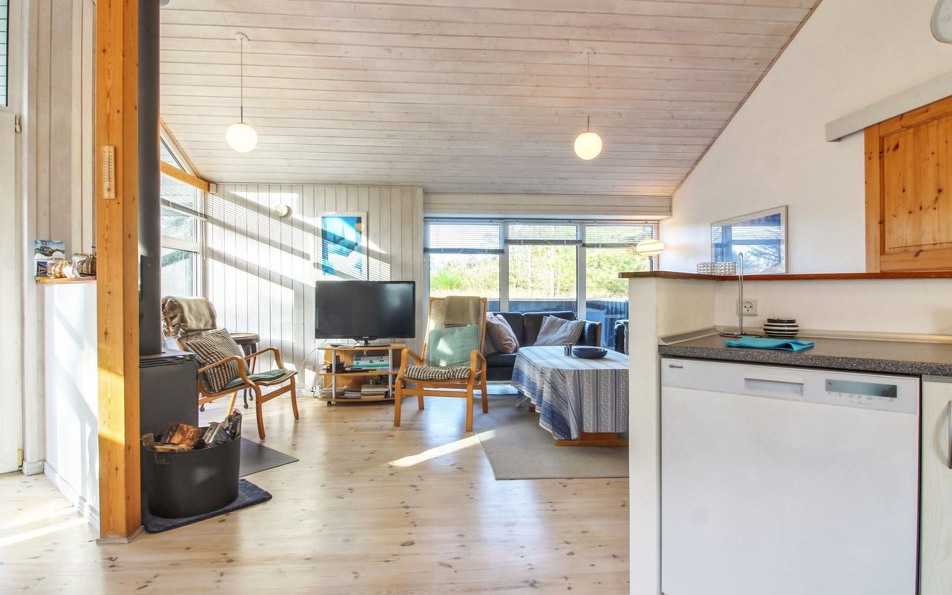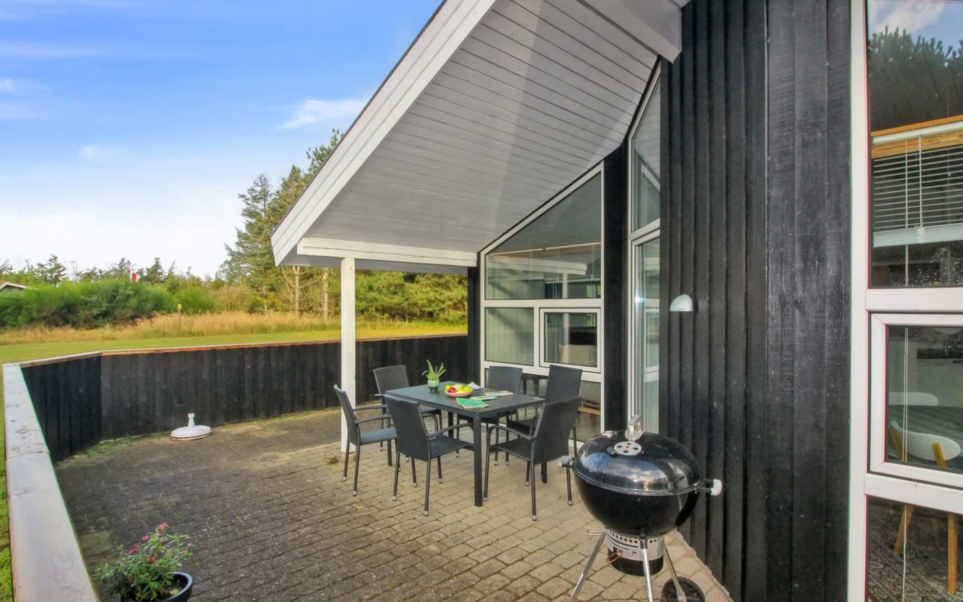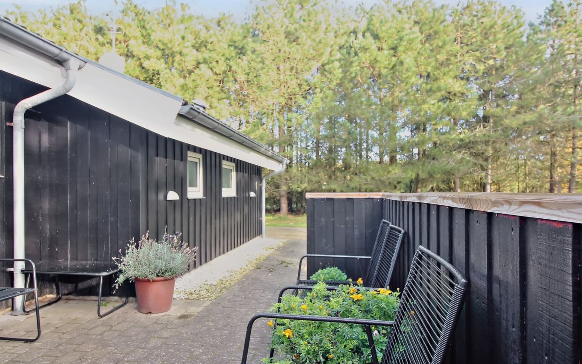 Einfamilienhaus, Baujahr 2000. 500 m vom Meer. Zur Alleinbenutzung: naturbelassenes Grundstück 2'527 m2. Terrasse (112 m2), Kinderspielplatz. Im Hause: Sauna, Waschmaschine. Parkplatz beim Haus. Lebensmittelgeschäft 3.5 km. Der Besitzer akzeptiert keine Jugendgruppen.