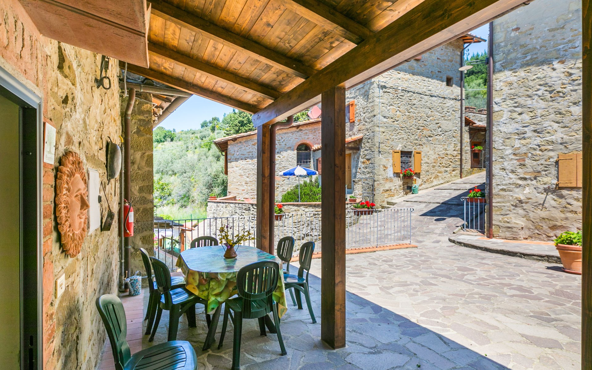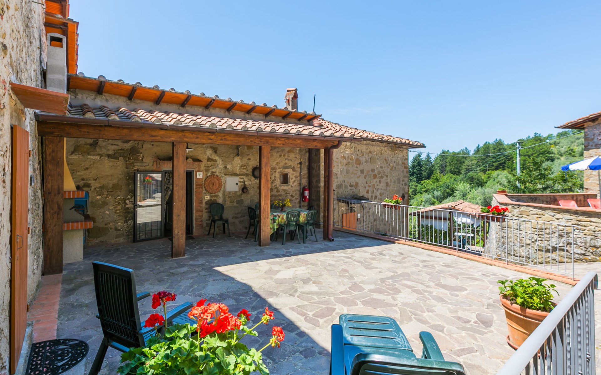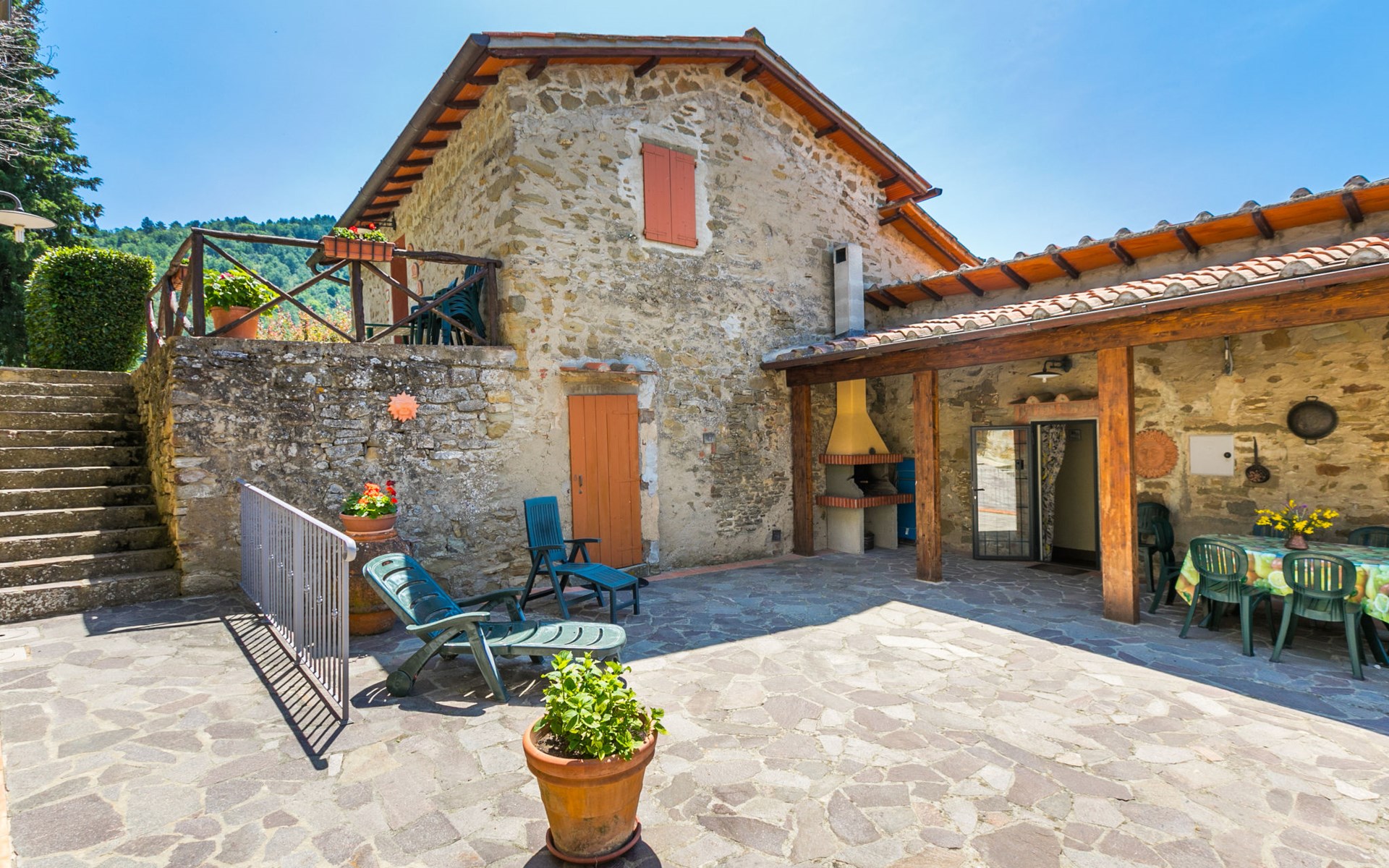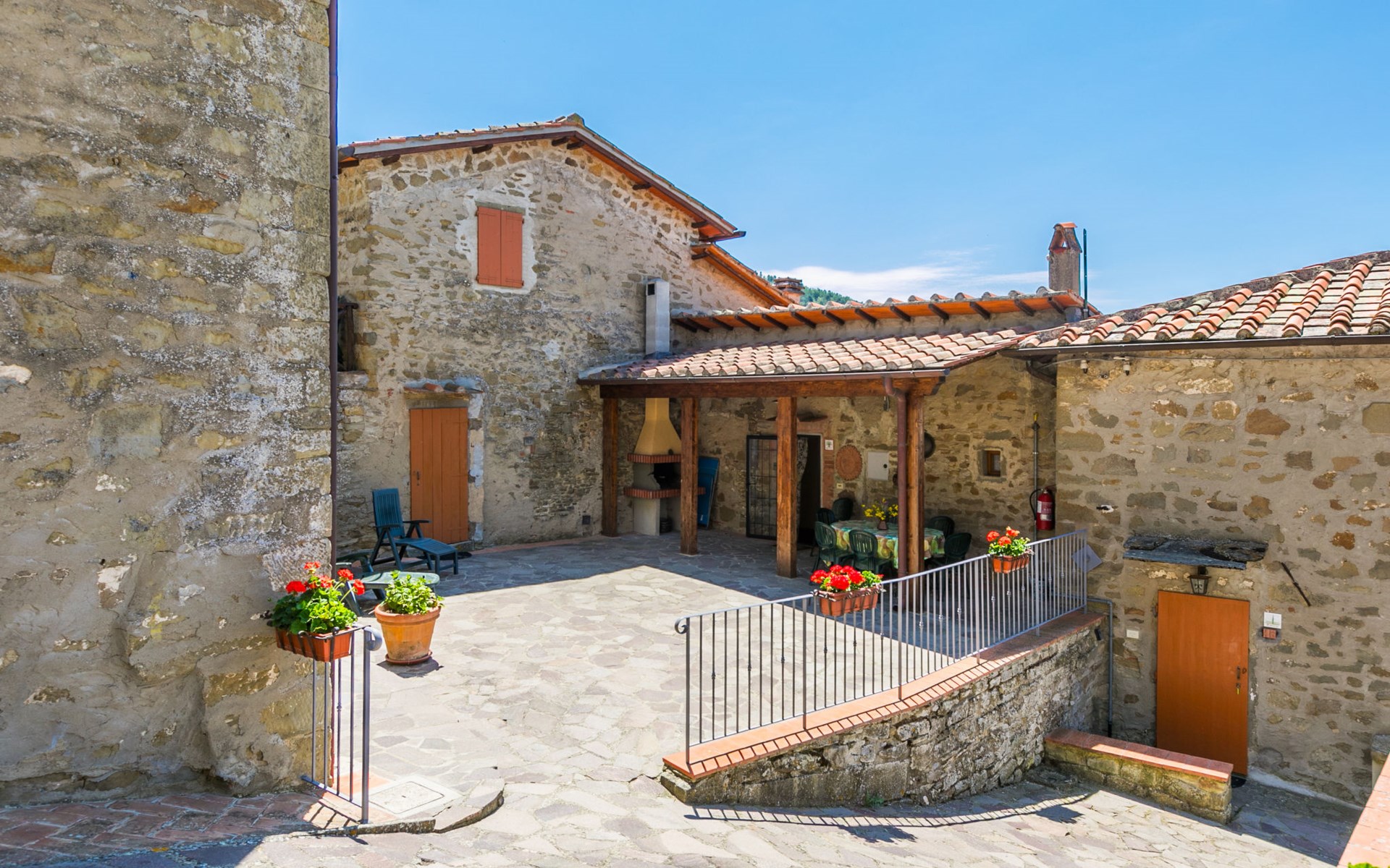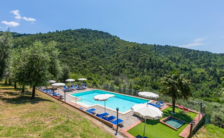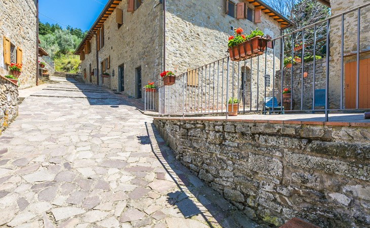 Borgo Stoppi, gelegen auf 600 m ü.M., am Fusse des Castello Poggio alla Regina, war seit dem 11. Jh. im Besitz des Grafen Guidi, ging später an andere Besitzer über und wurde im 14. Jh. zur bedeutendsten Siedlung des mittelalterlichen Gebietes der "Curia del Castiglione" und landwirtschaftliche Hauptstadt der umliegenden Bergregion, mit eigenem Rathaus und grossem Wochenmarkt. Die alten Häuser des Weilers (insgesamt 8 Wohneinheiten) wurden sehr sorgfältig restauriert, was die Schönheit dieses faszinierendes Ortes im Laufe der Jahrhundert auf hervorragende Weise unterstreicht: alte Zypressen, Eichen, Buchen, Pinien und Kastanienbäume sind stille Zeugnisse von der Natur und die Tiere wie Wildschweine, Hasen, Eichhörnchen, Fasane und div. Eulen können in der Umgebung auch beobachtet werden. Von der, mit Olivenbäumen bewachsenen, Terrasse, die eines der besten und unverfälschten Olivenöle der Region hervorbringt, können Sie ein herrliches Panorama über das Arnotal und die Chianti-Hügel geniessen. Residenz "Borgo Stoppi", 600 m.ü.M.. 2.5 km vom Zentrum von Reggello, 30 km vom Zentrum von Firenze, 35 km vom Zentrum von Arezzo, ruhige, sonnige, erhöhte Lage, 70 km vom See, in einer Sackgasse, im Grünen. Zur Mitbenutzung: Grundstück 5'000 m2, Schwimmbad (6 x 12 m, 150 cm tief, saisonale Verfügbarkeit: 22.Mai. - 08.Okt. Öffnungszeiten Schwimmbad: 08:00-21:00). Aussendusche. Heizung vor Ort zu zahlen, Heizung nur verfügbar von 01.Nov. - 07.Apr.. Steile Zufahrt bis zum Haus (800 m Naturweg). Parkplatz auf dem Grundstück. Einkaufsgeschäft 2.5 km, Lebensmittelgeschäft 2.5 km, Supermarkt 2.5 km, Restaurant 2.5 km, Bar 2.5 km, Café 2.5 km, Bushaltestelle 3.5 km, Bahnstation "Figline Valdarno" 10 km, Badesee "Lago di Bilancino" 70 km. Nahe gelegene Sehenswürdigkeiten: Firenze 40 km, Siena 86 km, Arezzo 64 km, Abazzia di Vallombrosa 16 km. Bitte beachten: Fahrzeug empfohlen. Geeignet für Familien. Das Foto ist nur ein Hausbeispiel.