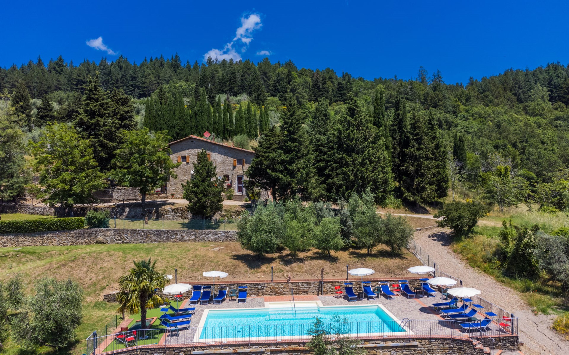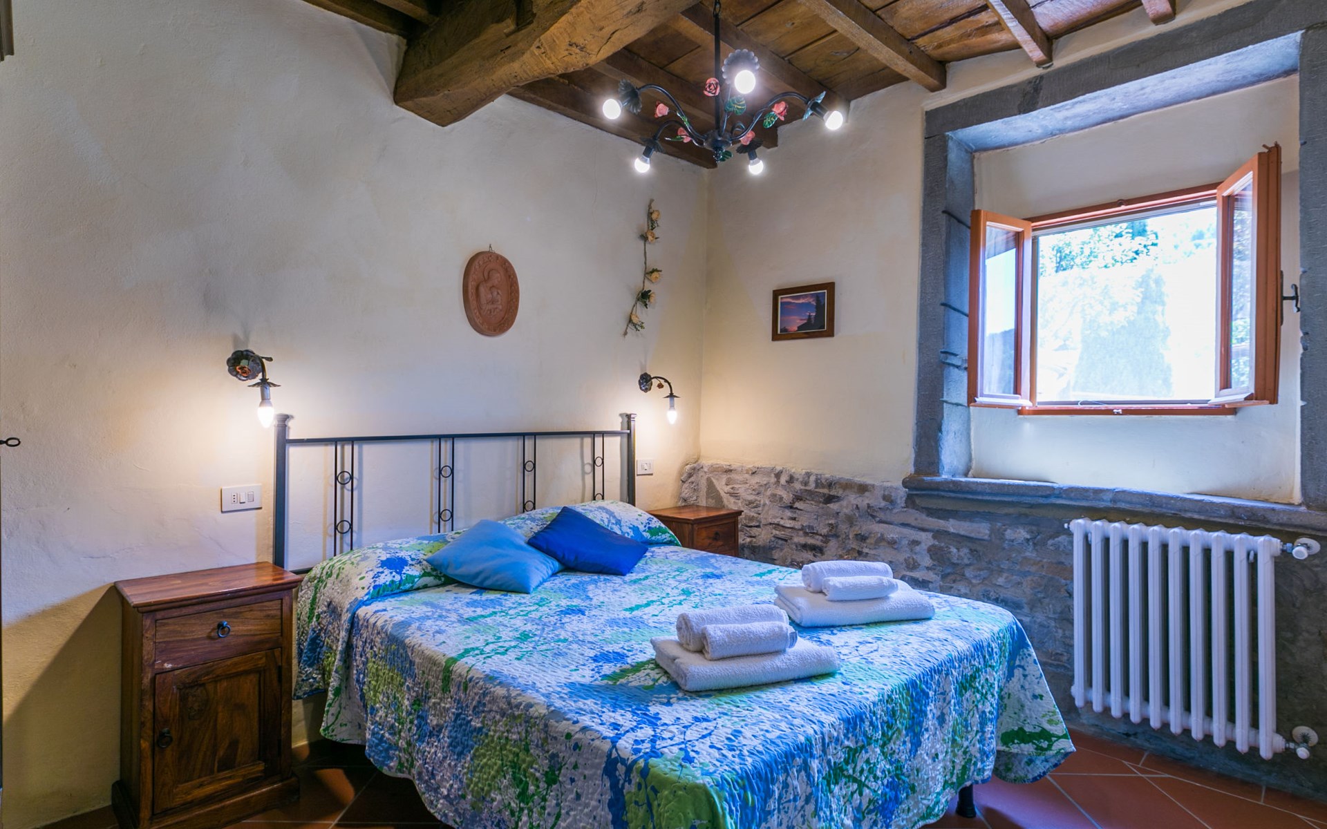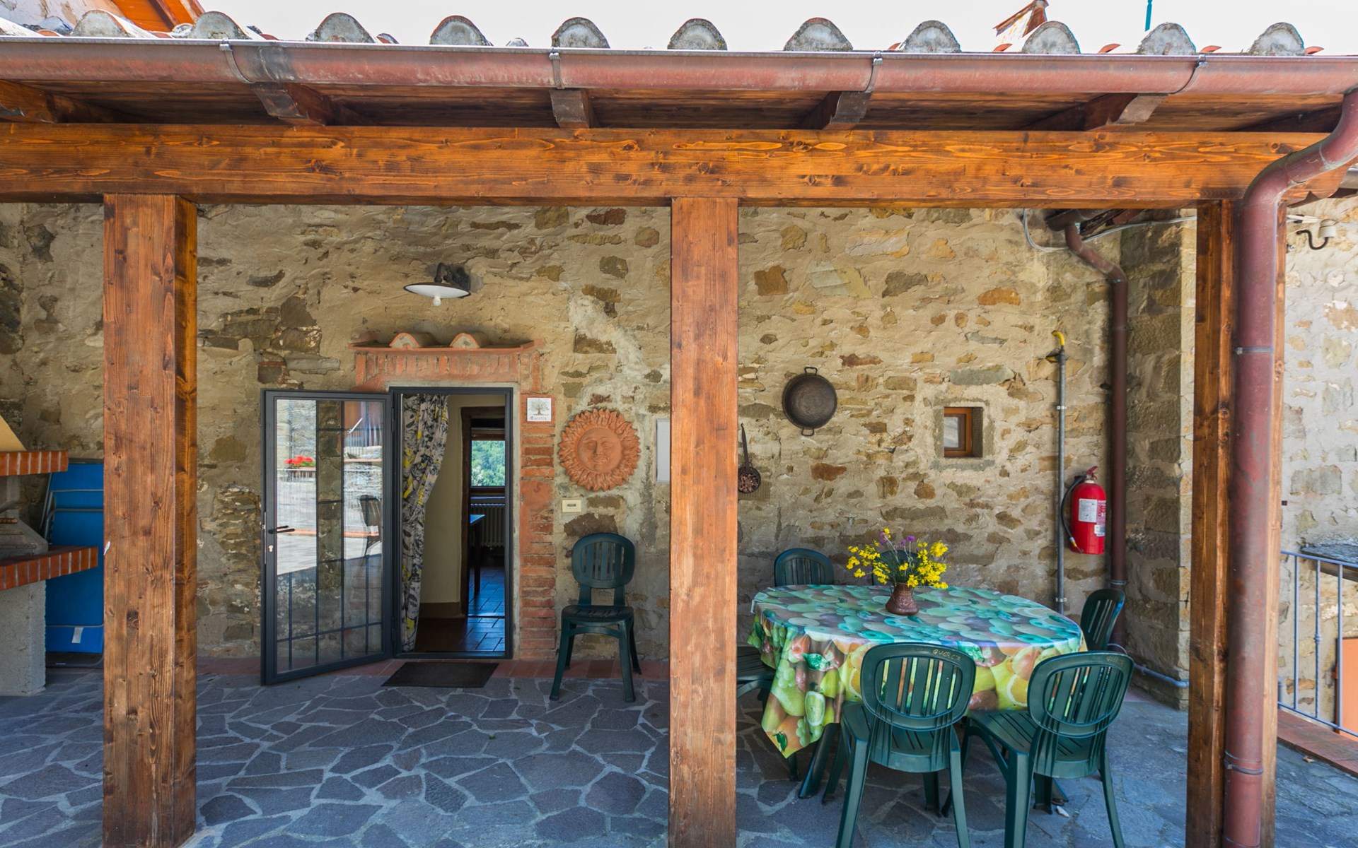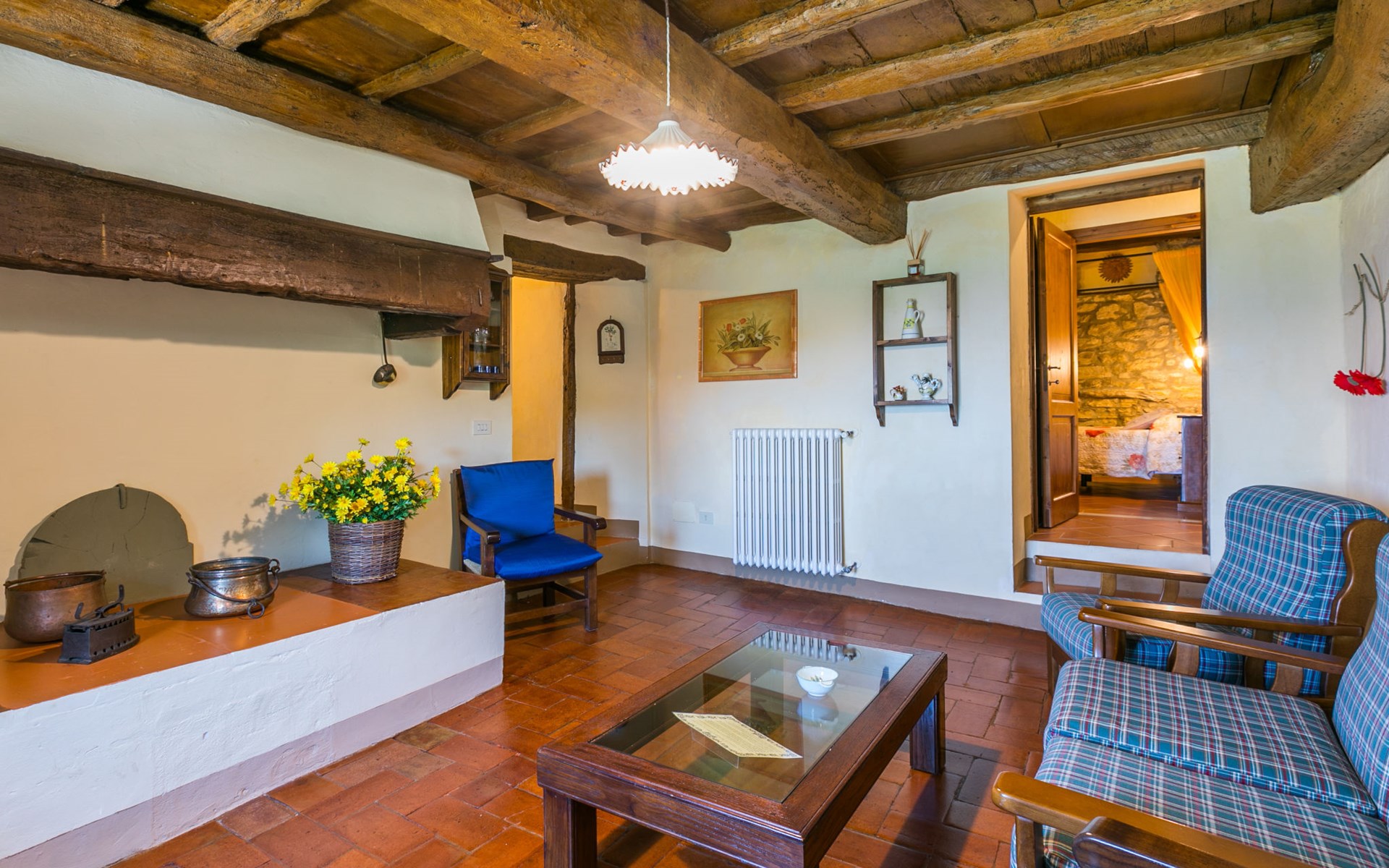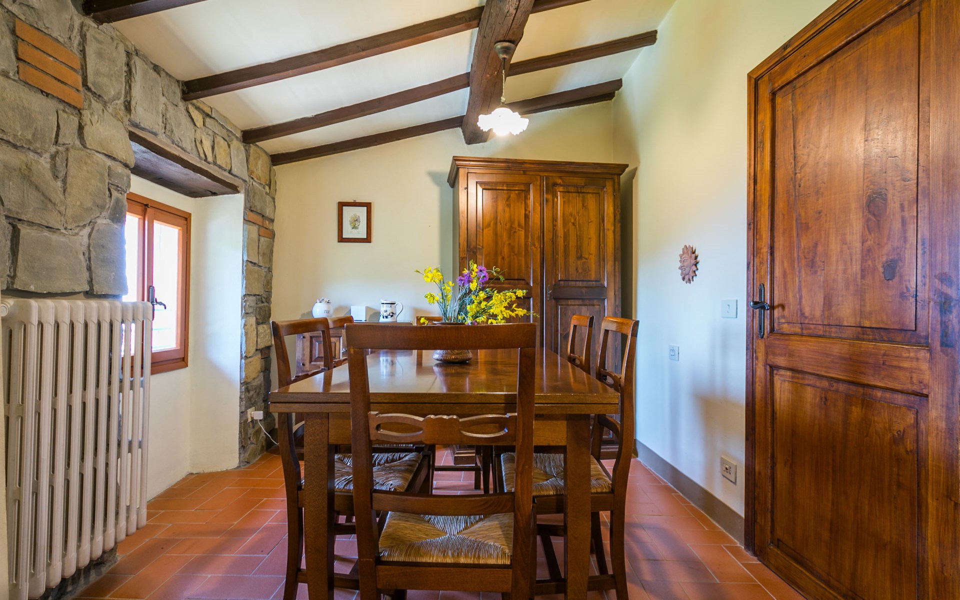 Borgo Stoppi, gelegen auf 600 m ü.M., am Fusse des Castello Poggio alla Regina, war seit dem 11. Jh. im Besitz des Grafen Guidi, ging später an andere Besitzer über und wurde im 14. Jh. zur bedeutendsten Siedlung des mittelalterlichen Gebietes der "Curia del Castiglione" und landwirtschaftliche Hauptstadt der umliegenden Bergregion, mit eigenem Rathaus und grossem Wochenmarkt. Die alten Häuser des Weilers (insgesamt 8 Wohneinheiten) wurden sehr sorgfältig restauriert, was die Schönheit dieses faszinierendes Ortes im Laufe der Jahrhundert auf hervorragende Weise unterstreicht: alte Zypressen, Eichen, Buchen, Pinien und Kastanienbäume sind stille Zeugnisse von der Natur und die Tiere wie Wildschweine, Hasen, Eichhörnchen, Fasane und div. Eulen können in der Umgebung auch beobachtet werden. Von der, mit Olivenbäumen bewachsenen, Terrasse, die eines der besten und unverfälschten Olivenöle der Region hervorbringt, können Sie ein herrliches Panorama über das Arnotal und die Chianti-Hügel geniessen. Residenz "Borgo Stoppi", 600 m.ü.M.. 2.5 km vom Zentrum von Reggello, 30 km vom Zentrum von Firenze, 35 km vom Zentrum von Arezzo, ruhige, sonnige, erhöhte Lage, 70 km vom See, in einer Sackgasse, im Grünen. Zur Mitbenutzung: Grundstück 5'000 m2, Schwimmbad (6 x 12 m, 150 cm tief, saisonale Verfügbarkeit: 22.Mai. - 08.Okt. Öffnungszeiten Schwimmbad: 08:00-21:00). Aussendusche. Heizung vor Ort zu zahlen, Heizung nur verfügbar von 01.Nov. - 07.Apr.. Steile Zufahrt bis zum Haus (800 m Naturweg). Parkplatz auf dem Grundstück. Einkaufsgeschäft 2.5 km, Lebensmittelgeschäft 2.5 km, Supermarkt 2.5 km, Restaurant 2.5 km, Bar 2.5 km, Café 2.5 km, Bushaltestelle 3.5 km, Bahnstation "Figline Valdarno" 10 km, Badesee "Lago di Bilancino" 70 km. Nahe gelegene Sehenswürdigkeiten: Firenze 40 km, Siena 86 km, Arezzo 64 km, Abazzia di Vallombrosa 16 km. Bitte beachten: Fahrzeug empfohlen. Geeignet für Familien. Das Foto ist nur ein Hausbeispiel.