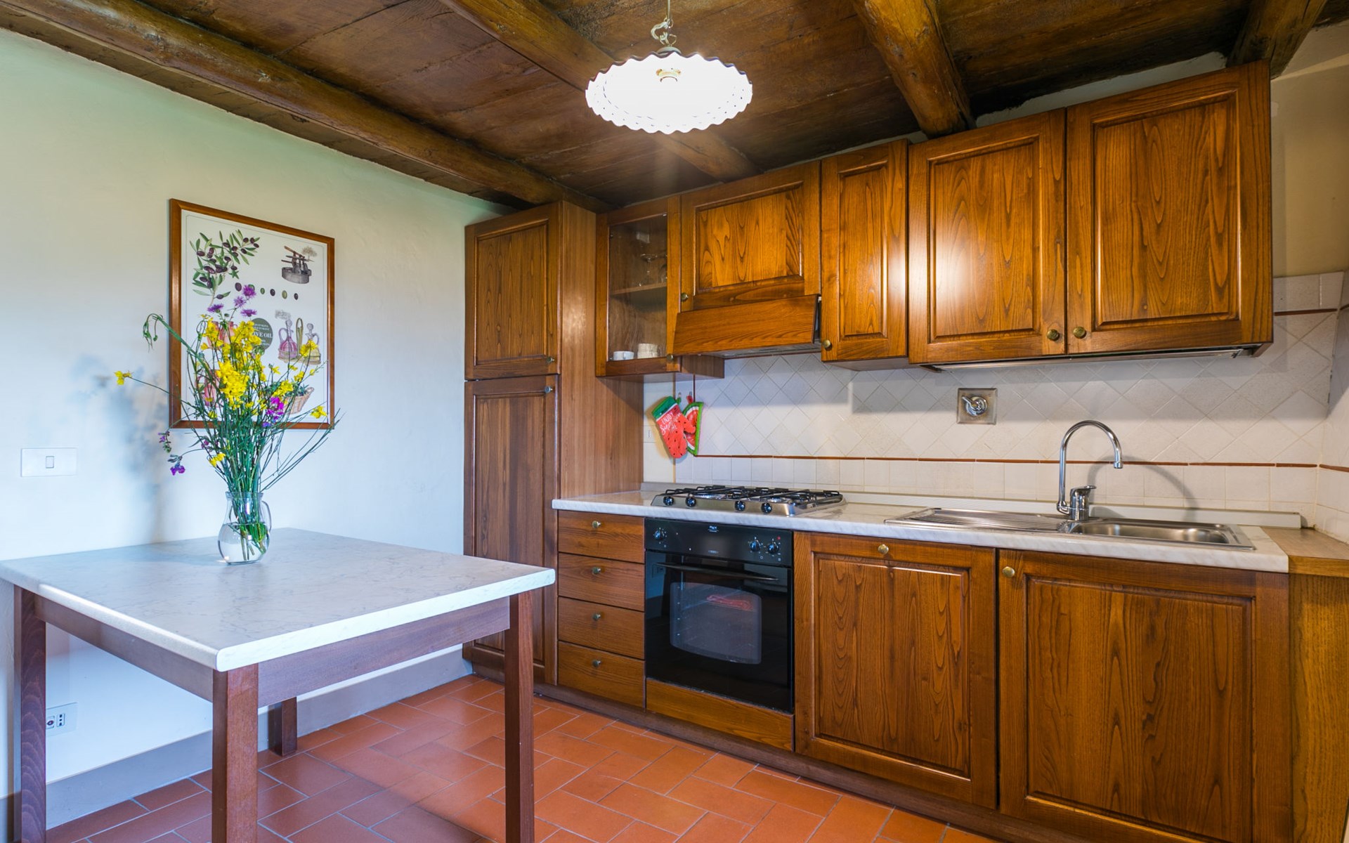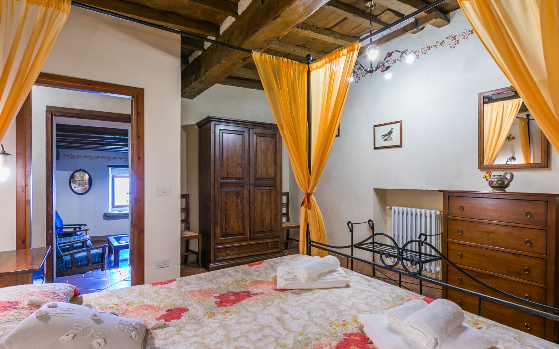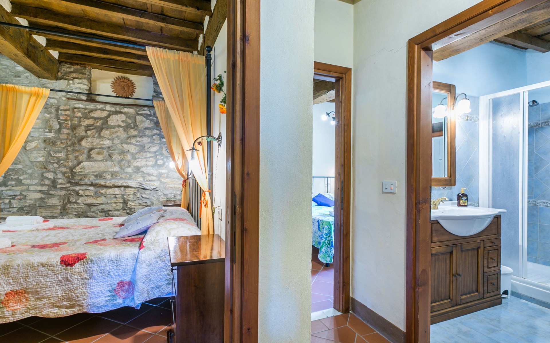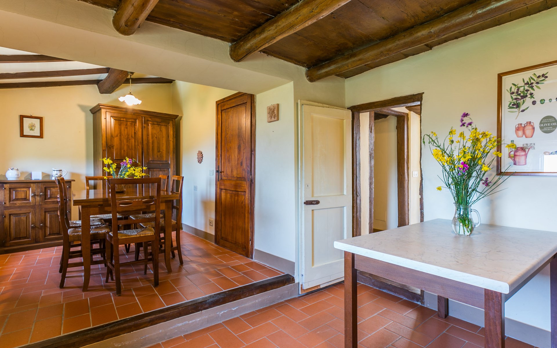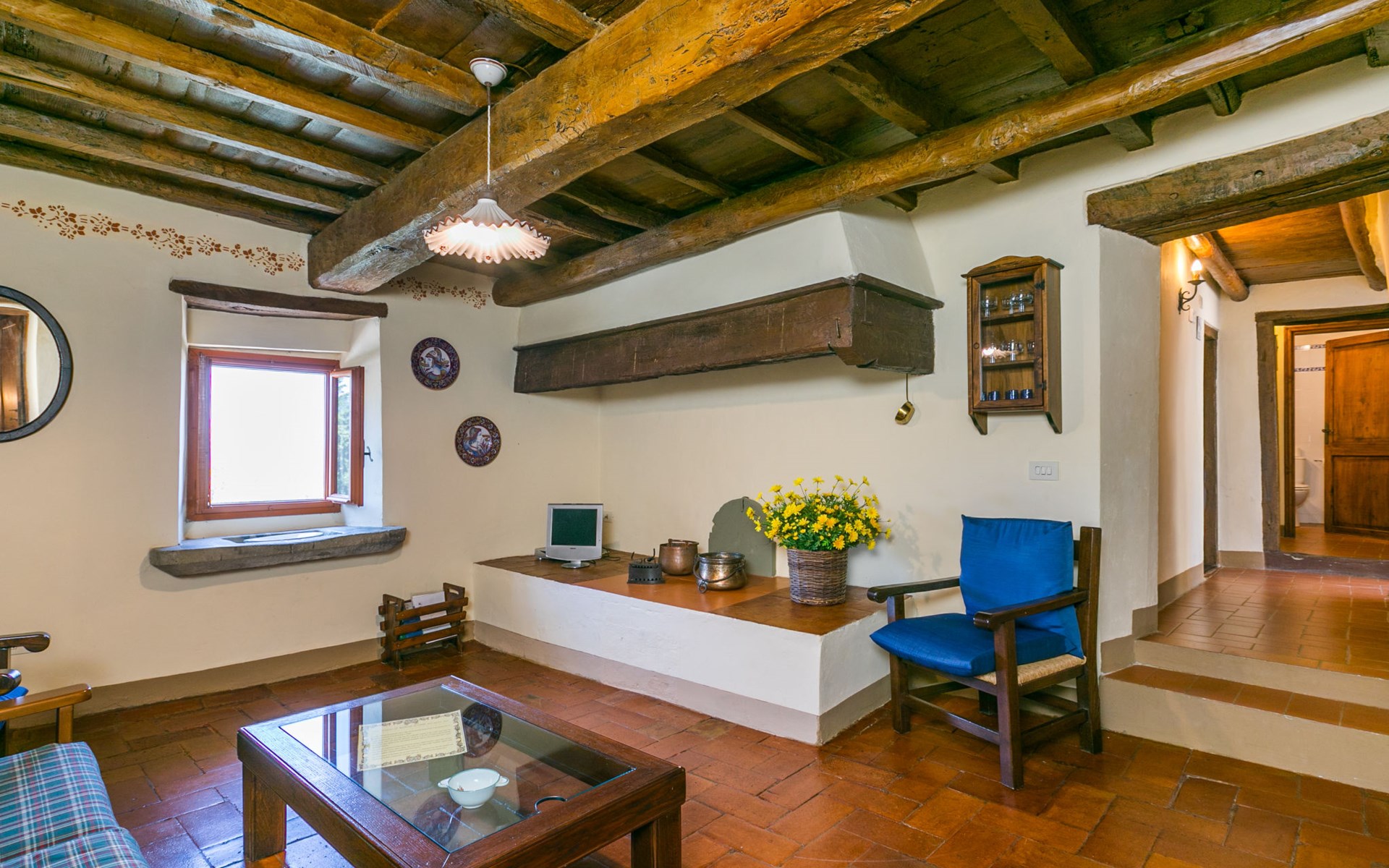 Borgo Stoppi, gelegen auf 600 m ü.M., am Fusse des Castello Poggio alla Regina, war seit dem 11. Jh. im Besitz des Grafen Guidi, ging später an andere Besitzer über und wurde im 14. Jh. zur bedeutendsten Siedlung des mittelalterlichen Gebietes der "Curia del Castiglione" und landwirtschaftliche Hauptstadt der umliegenden Bergregion, mit eigenem Rathaus und grossem Wochenmarkt. Die alten Häuser des Weilers (insgesamt 8 Wohneinheiten) wurden sehr sorgfältig restauriert, was die Schönheit dieses faszinierendes Ortes im Laufe der Jahrhundert auf hervorragende Weise unterstreicht: alte Zypressen, Eichen, Buchen, Pinien und Kastanienbäume sind stille Zeugnisse von der Natur und die Tiere wie Wildschweine, Hasen, Eichhörnchen, Fasane und div. Eulen können in der Umgebung auch beobachtet werden. Von der, mit Olivenbäumen bewachsenen, Terrasse, die eines der besten und unverfälschten Olivenöle der Region hervorbringt, können Sie ein herrliches Panorama über das Arnotal und die Chianti-Hügel geniessen. Residenz "Borgo Stoppi", 600 m.ü.M.. 2.5 km vom Zentrum von Reggello, 30 km vom Zentrum von Firenze, 35 km vom Zentrum von Arezzo, ruhige, sonnige, erhöhte Lage, 70 km vom See, in einer Sackgasse, im Grünen. Zur Mitbenutzung: Grundstück 5'000 m2, Schwimmbad (6 x 12 m, 150 cm tief, saisonale Verfügbarkeit: 22.Mai. - 08.Okt. Öffnungszeiten Schwimmbad: 08:00-21:00). Aussendusche. Heizung vor Ort zu zahlen, Heizung nur verfügbar von 01.Nov. - 07.Apr.. Steile Zufahrt bis zum Haus (800 m Naturweg). Parkplatz auf dem Grundstück. Einkaufsgeschäft 2.5 km, Lebensmittelgeschäft 2.5 km, Supermarkt 2.5 km, Restaurant 2.5 km, Bar 2.5 km, Café 2.5 km, Bushaltestelle 3.5 km, Bahnstation "Figline Valdarno" 10 km, Badesee "Lago di Bilancino" 70 km. Nahe gelegene Sehenswürdigkeiten: Firenze 40 km, Siena 86 km, Arezzo 64 km, Abazzia di Vallombrosa 16 km. Bitte beachten: Fahrzeug empfohlen. Geeignet für Familien. Das Foto ist nur ein Hausbeispiel.