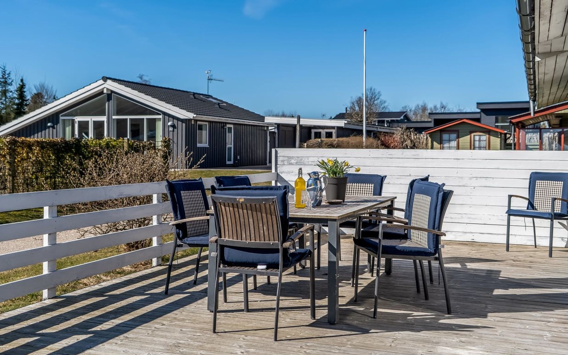 Einfamilienhaus, Baujahr 1975. 150 m vom Meer. Zur Alleinbenutzung: Grundstück 654 m2, gepflegter Garten. Grill. Im Hause: Waschmaschine, Wäschetrockner. Parkplatz beim Haus. Lebensmittelgeschäft 1.1 km. Golfplatz 18.2 km. Der Besitzer akzeptiert keine Jugendgruppen.