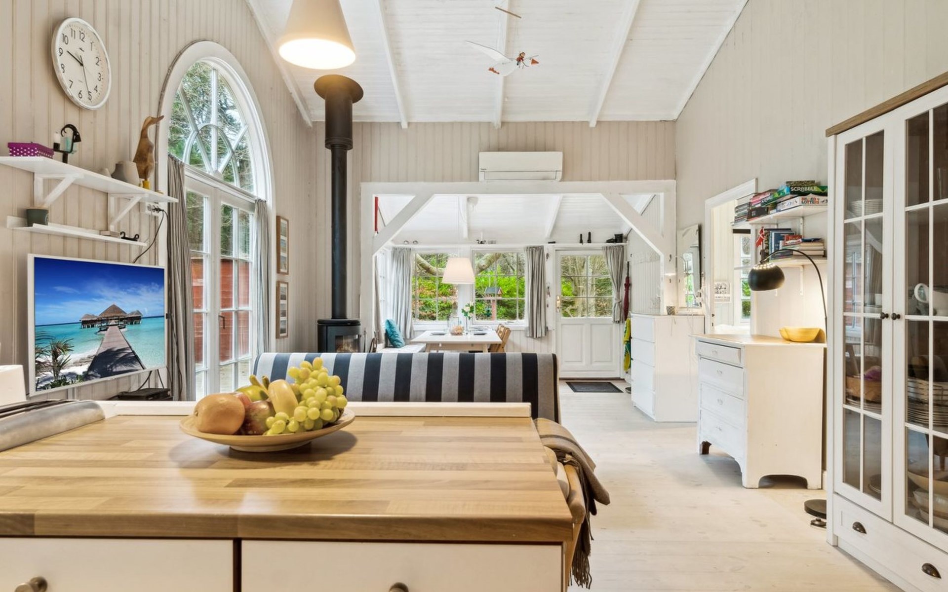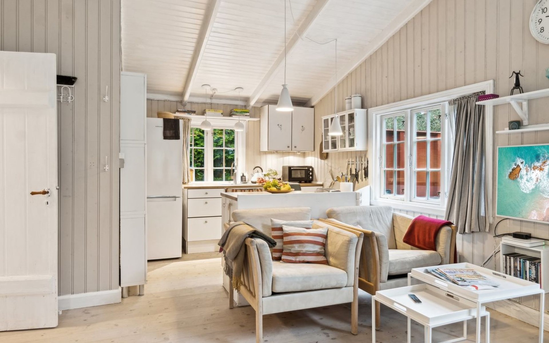 Einfamilienhaus, Baujahr 1930. 175 m vom Meer. Zur Mitbenutzung: Garten. Zur Alleinbenutzung: Grundstück 2'445 m2, gepflegter Garten (eingezäunt). Terrasse (68 m2), Grill. Im Hause: Waschmaschine. Parkplatz beim Haus. Lebensmittelgeschäft 1.9 km. Golfplatz 4.7 km. Der Besitzer akzeptiert keine Jugendgruppen.