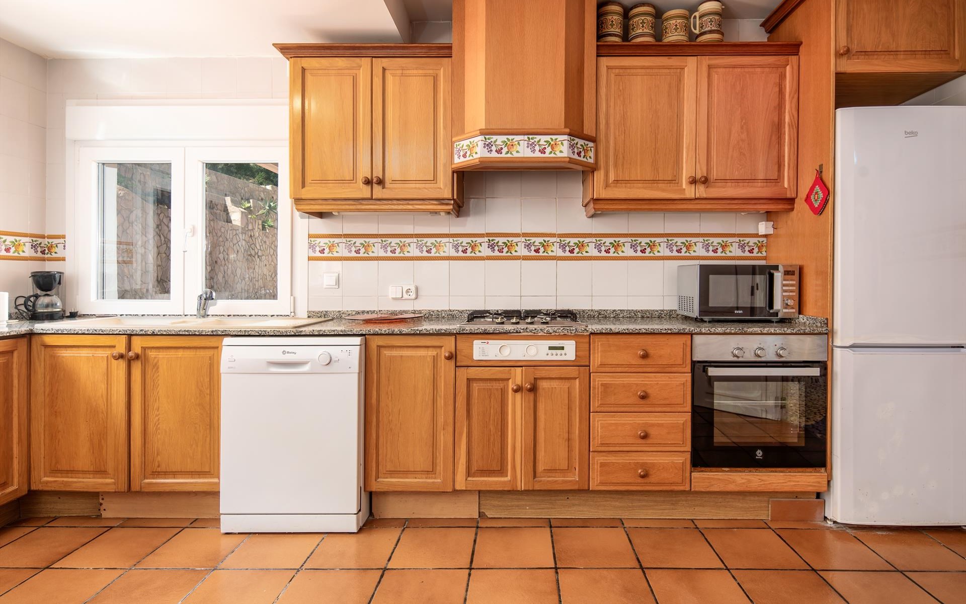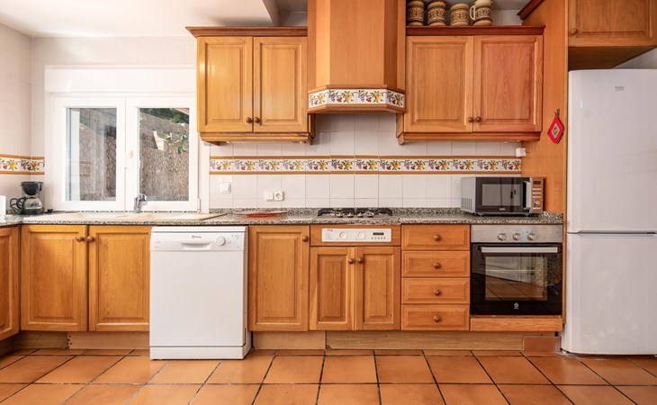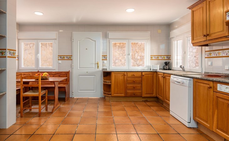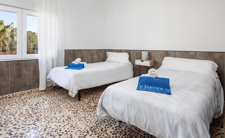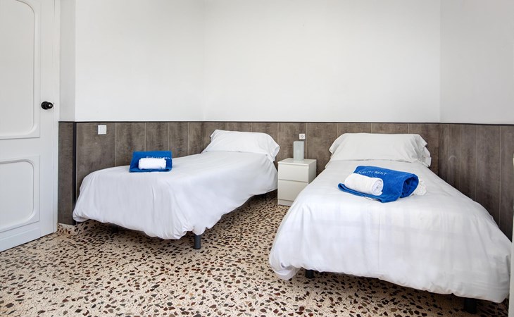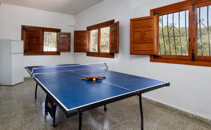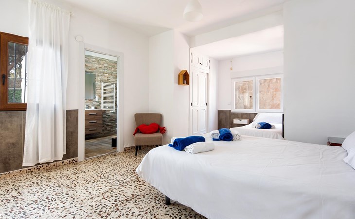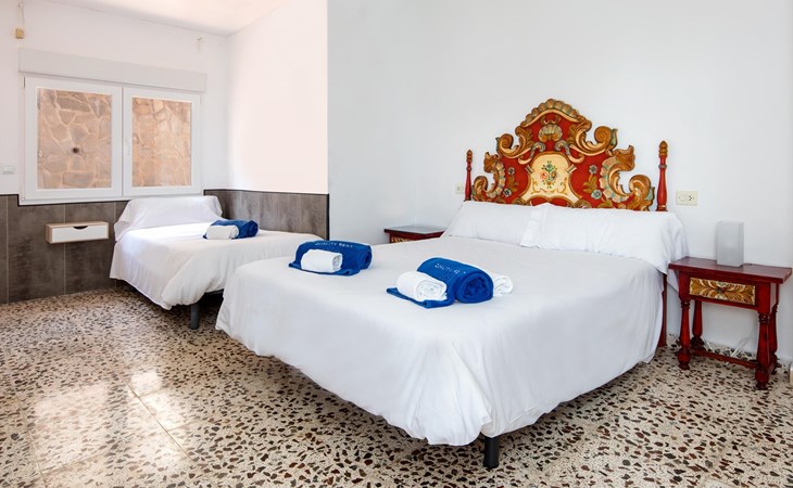 Das Ferienhaus selbst ist ein älteres Gebäude, bestehend aus 2 Etagen, und im rustikalen und typisch spanischen Stil ausgestattet.Die Badezimmer und Fenster wurden 2022 komplett erneuert. Auf der Hauptetage gibt es 5 Schlafzimmer, davon eines mit 3 Schlafplätzen. Es gibt Klimaanlage in allen 5 Schlafzimmern auf der oberen Etage. Auf der unteren Kelleretage gibt es ein weiteres Schlafzimmer, das jedoch aufgrund seiner einfachen Ausstattung oft nicht genutzt wird.