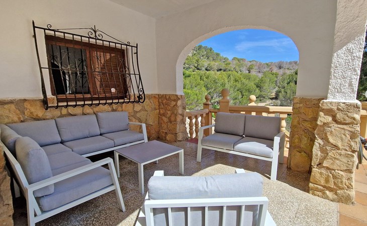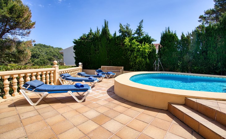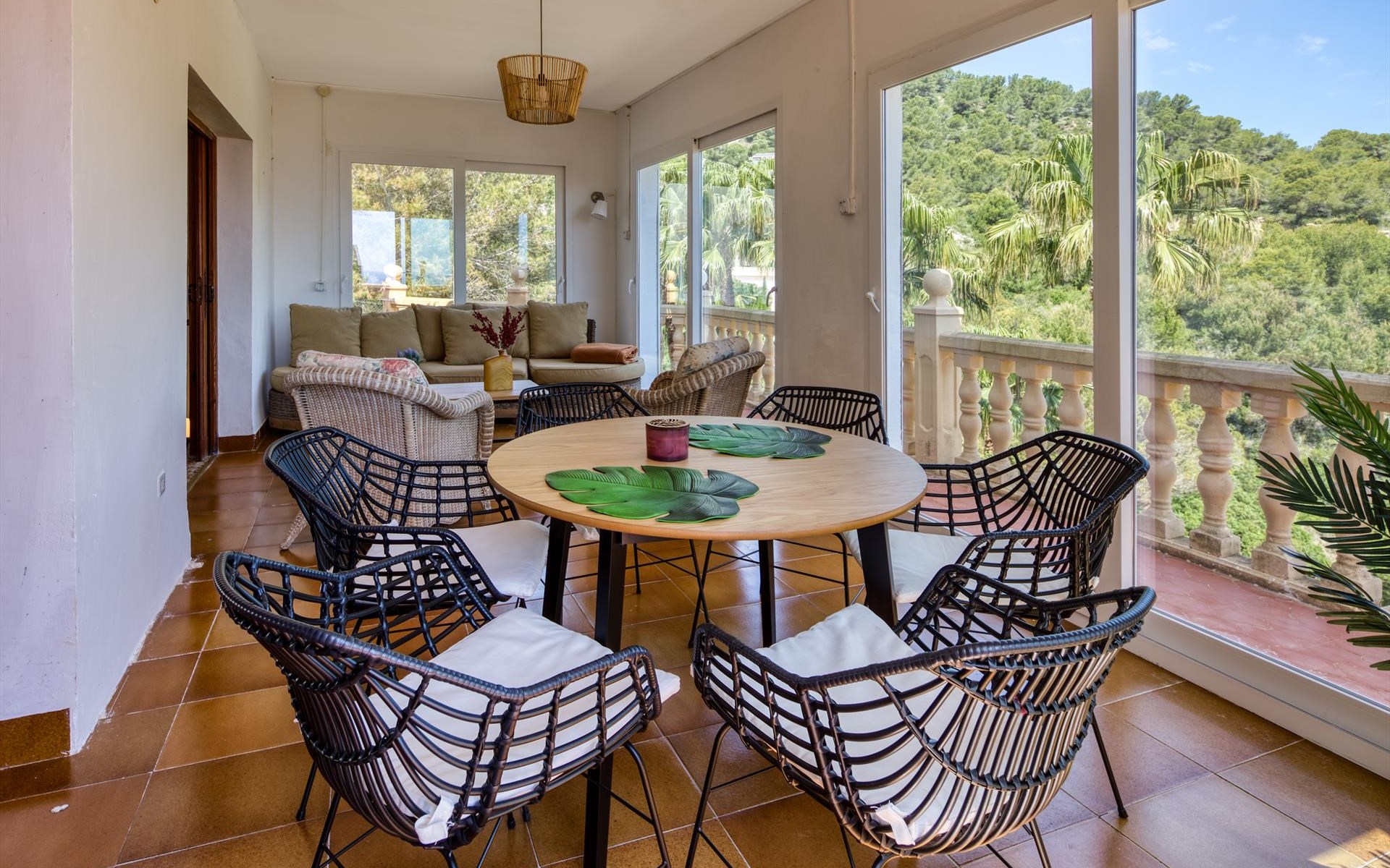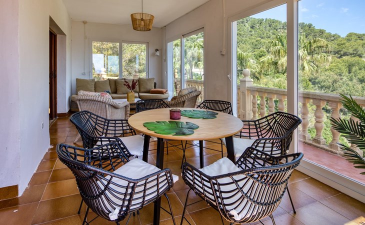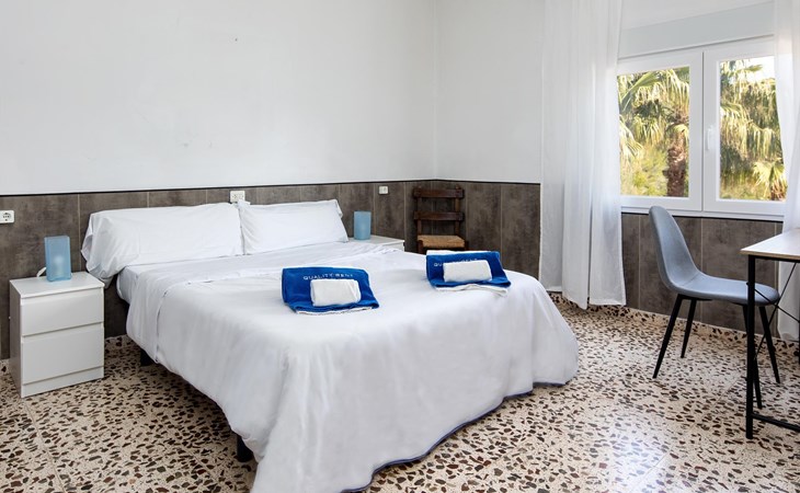 Das Ferienhaus selbst ist ein älteres Gebäude, bestehend aus 2 Etagen, und im rustikalen und typisch spanischen Stil ausgestattet.Die Badezimmer und Fenster wurden 2022 komplett erneuert. Auf der Hauptetage gibt es 5 Schlafzimmer, davon eines mit 3 Schlafplätzen. Es gibt Klimaanlage in allen 5 Schlafzimmern auf der oberen Etage. Auf der unteren Kelleretage gibt es ein weiteres Schlafzimmer, das jedoch aufgrund seiner einfachen Ausstattung oft nicht genutzt wird.
