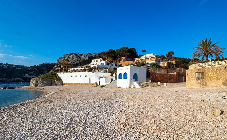 Die klassische und grossräumige Ferienvilla liegt direkt am Steinstrand La Barraca in Javea, in 2ter Reihe, an einem der besten Plätze um Urlaub zu machen, umgeben von Natur, Hügeln und Pinien, und mit den Geräuschen des Meeres. Die Bucht von Portixol ist ein anerkanntes Naturschutzgebiet und bei Tauchern sehr beliebt. Der Strand von La Barraca besteht zum Grossteil aus mittelgrossen Kieselsteinen, gemischt mit Sand und am Ende Felsen. Dieser Strand ist sehr beliebt bei Tauchern, Standup Padel und Wassersportlern und galt viele Jahre lang als Geheimtip. Heute ist der Strand sehr bekannt und begehrt, auch aufgrund der bekannten Strandbar und Restaurant Cala Clemence. Im Sommer ist die Zufahrt zum Strand limitiert, deshalb ist dieser Ferienplatz etwas ganz Besonderes und ein Privileg. Zum nächsten Supermarkt sind es etwa 5 Autominuten, ebenso zu verschiedenen Läden und Einkaufsmöglichkeiten. Zum Sandstrand El Arenal, zum Hafen oder zum antiken Stadtkern sind es etwa 10 Autominuten. Für diese Unterkunft ist es sehr empfehlenswert ein Auto zu haben.