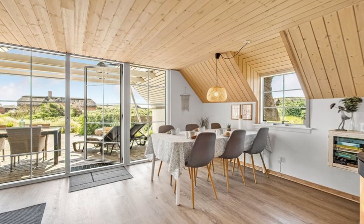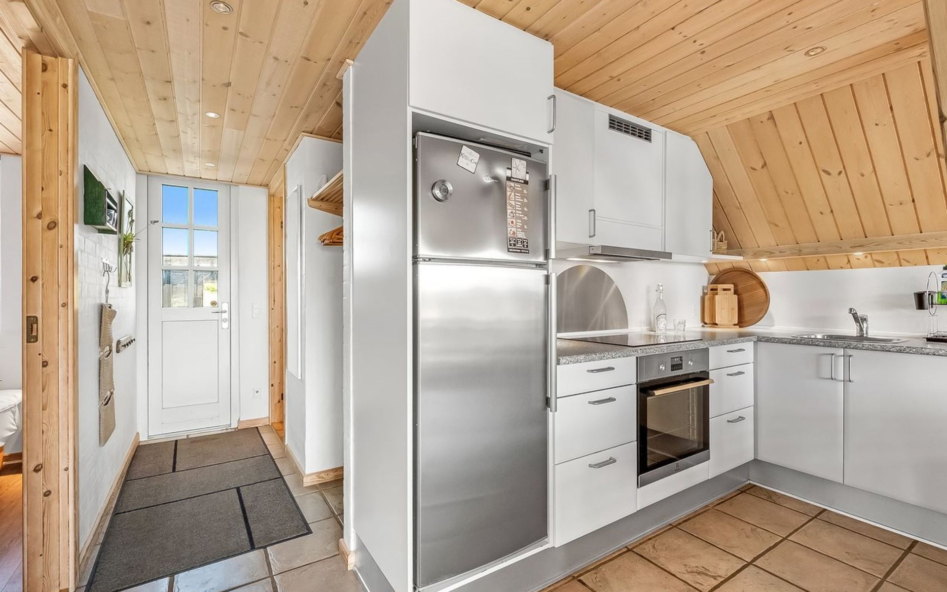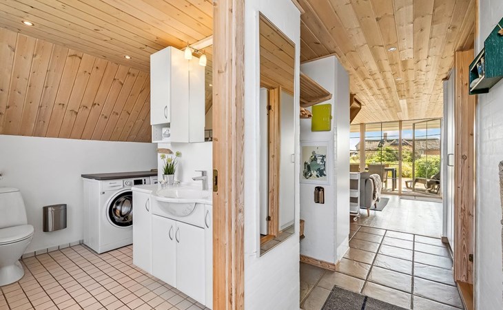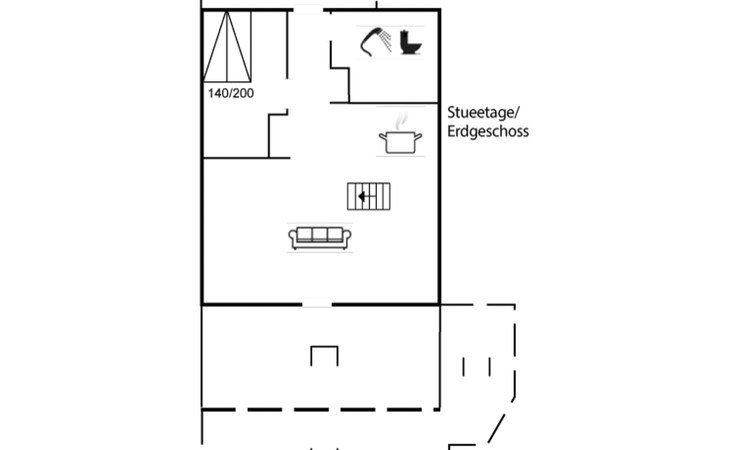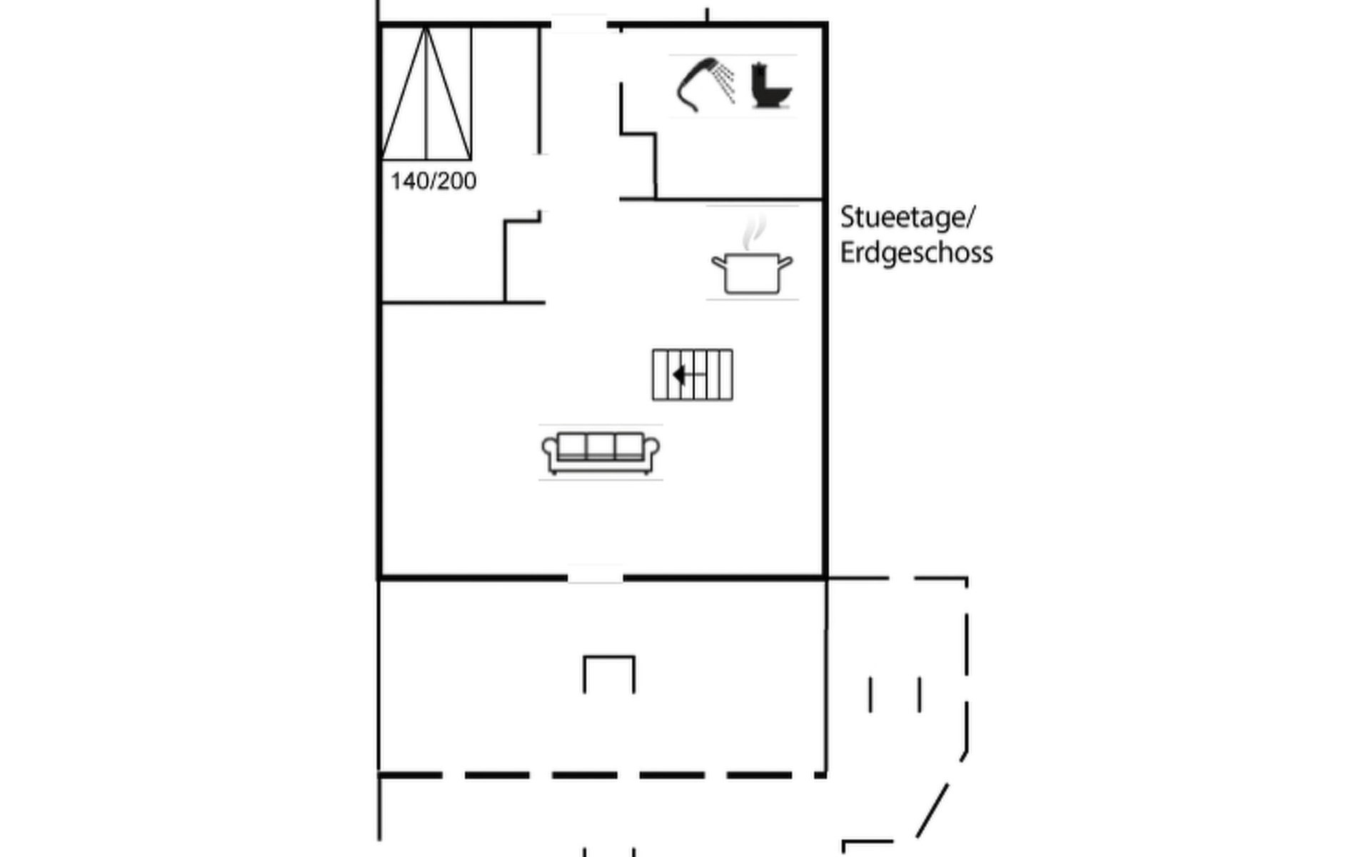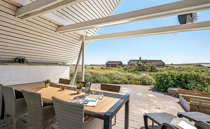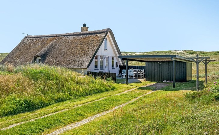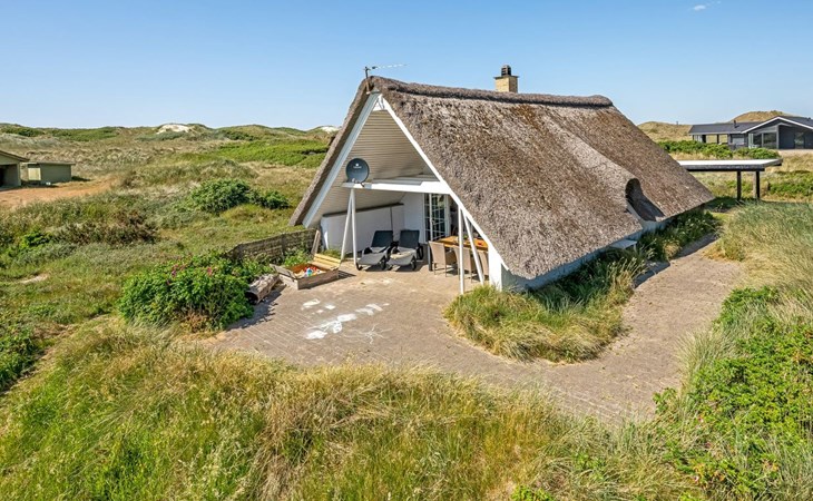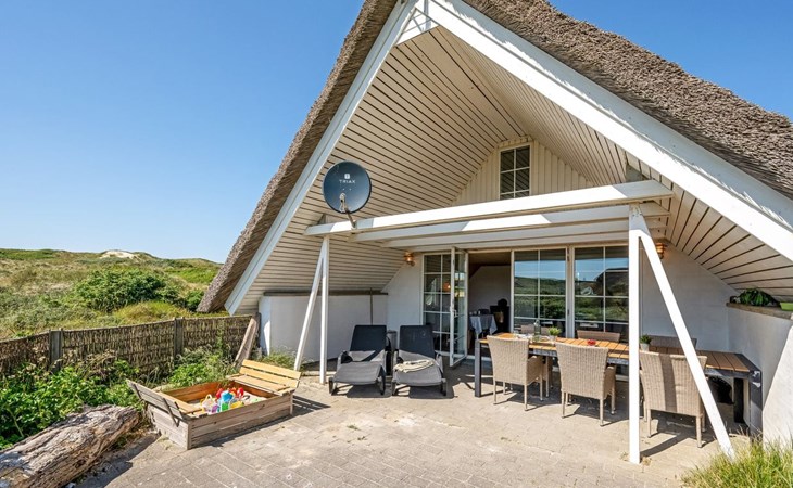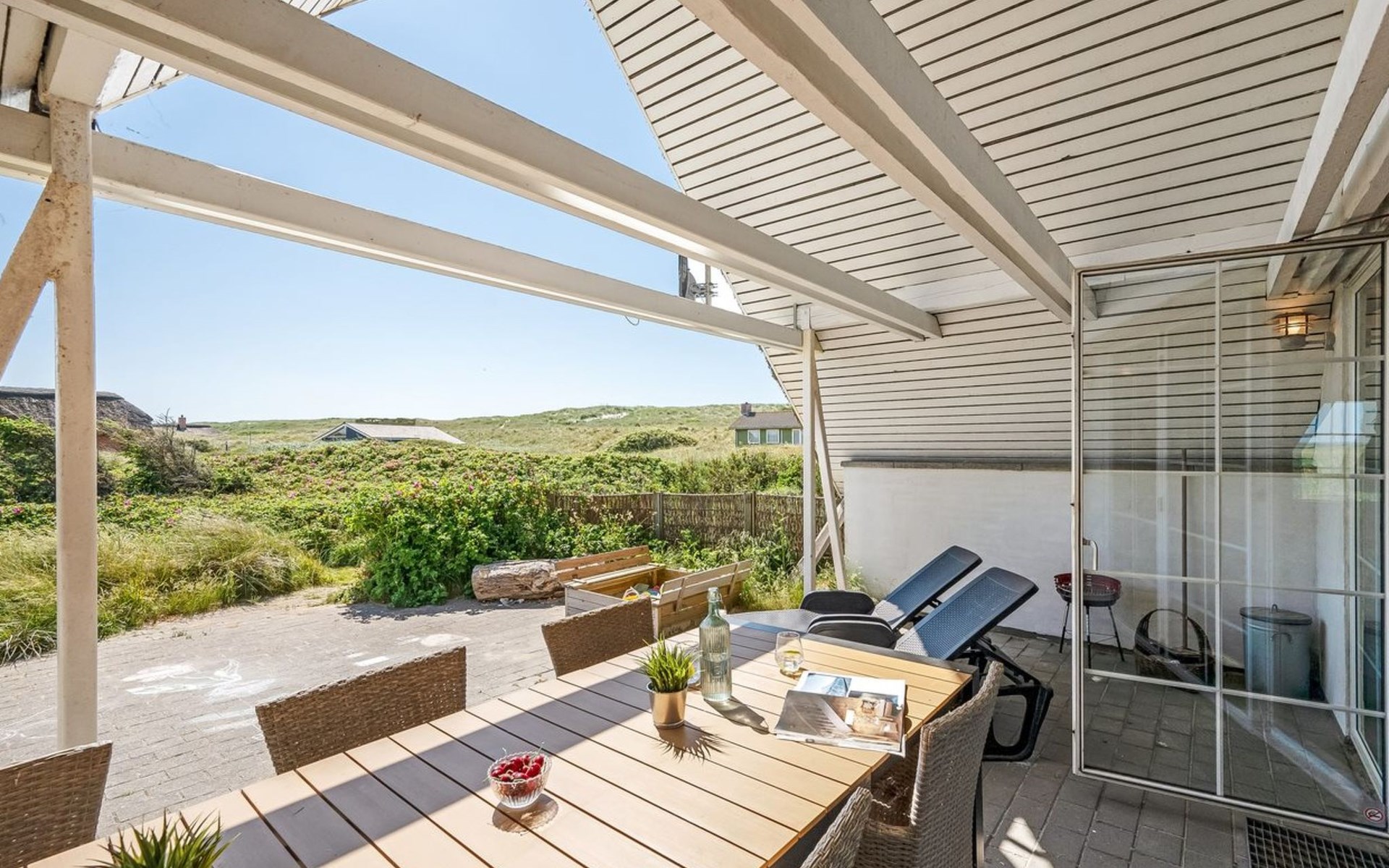 Einfamilienhaus, Baujahr 1974. 150 m vom Meer. Zur Alleinbenutzung: Grundstück 2'002 m2. Terrasse (76 m2), Kinderspielplatz. Im Hause: Waschmaschine, Wäschetrockner. Parkplatz beim Haus. Carport. Lebensmittelgeschäft 5 km.