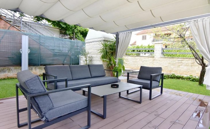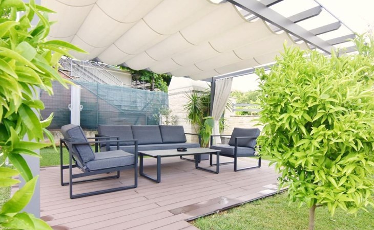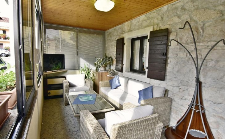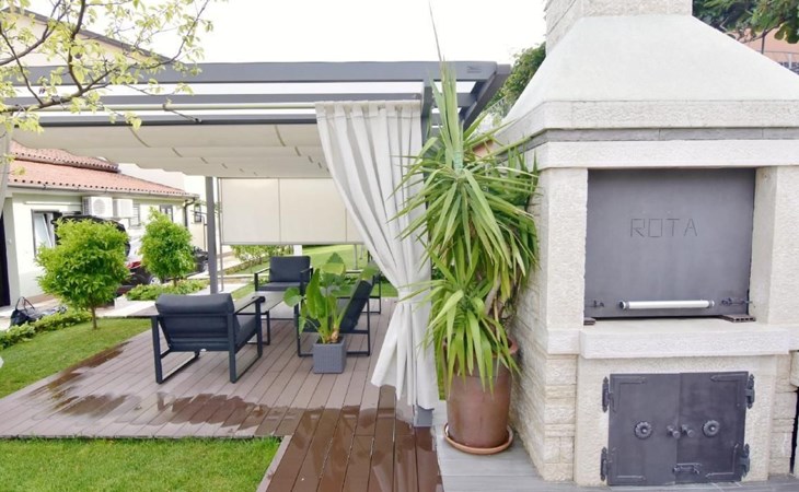 Das Highlight ist natürlich die große Terrasse mit dem prächtigen gepflegten, geschlossenen Garten, geschmückt mit Pflanzen und Blumen. Im Garten gibt es einen privaten Grill, eine Außendusche und einen Pavillon mit Gartenmöbeln, um die warmen Sommerabende in völliger Entspannung zu verbringen. Sehr praktisch ist auch die Möglichkeit, Ihr Auto sicher in der eingezäunten Hof zu parken, damit Sie sich sicherer und friedlicher fühlen. In unserem Ferienhaus können Sie Tage der Ruhe und Entspannung im wunderschönen Garten oder auf der Veranda verbringen.