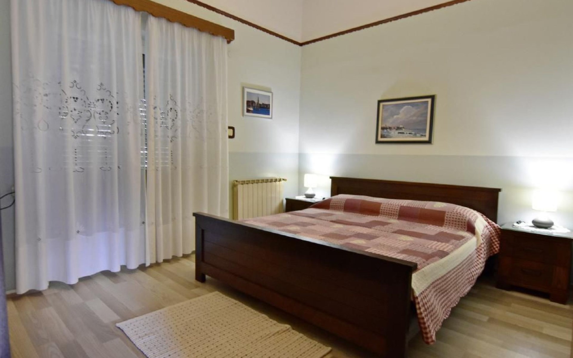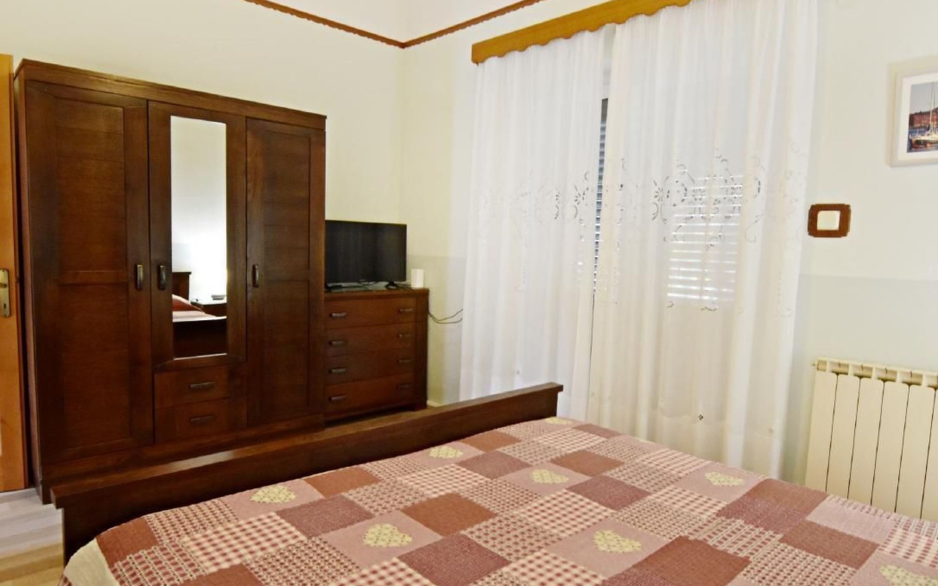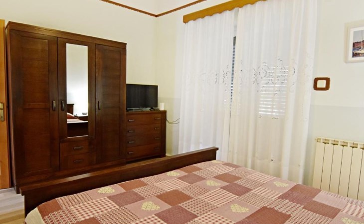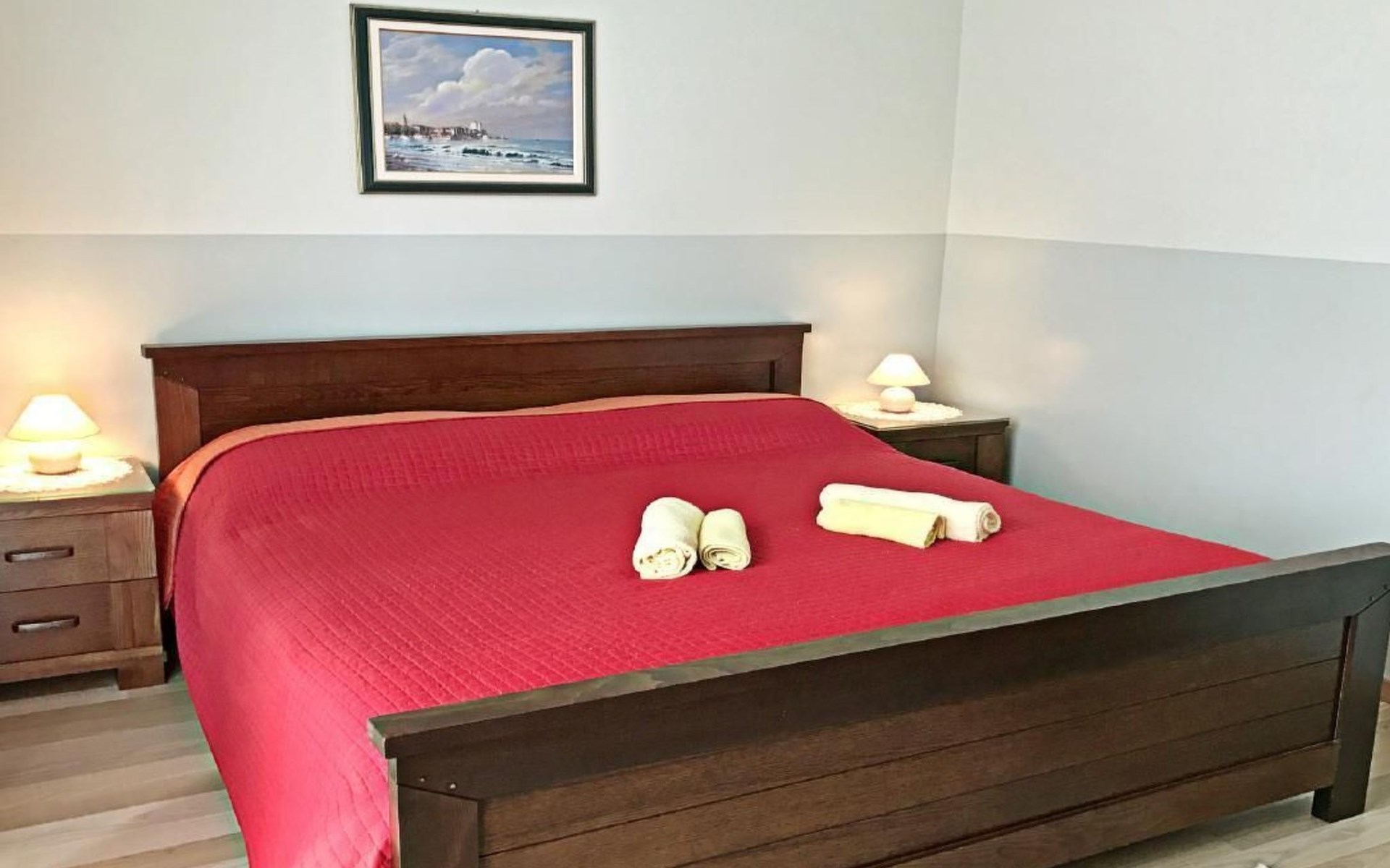 Die Unterkunft von 55 qm besteht aus einem Schlafzimmer mit Doppelbett 160x200, zwei Nachttischen mit Nachtlampen, Kleiderschrank, Kommode, und einem zweiten Schlafzimmer mit zwei Einzelbetten 80x200, Kleiderschrank, Nachttisch und Nachtlampe und Schrank, Bettwäsche ist vorhanden (wöchentlich gewechselt), die Möbel aus Massivholz beleben die Qualität des Hauses.
