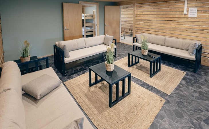 The facilities include 5 bedrooms in the same building, all of which have separate beds for 2, and in addition, 3 bedrooms also have bunk beds x 1 per bedroom. Modern meeting room, party room with benches and tables and tableware for up to 100 people. Kitchen with good cold storage facilities, sofa group / living room, 5 x toilets, sauna (with electric stove), showers x 2, hydro massage bath in the sauna section, laundry room, hallway with hand shower.