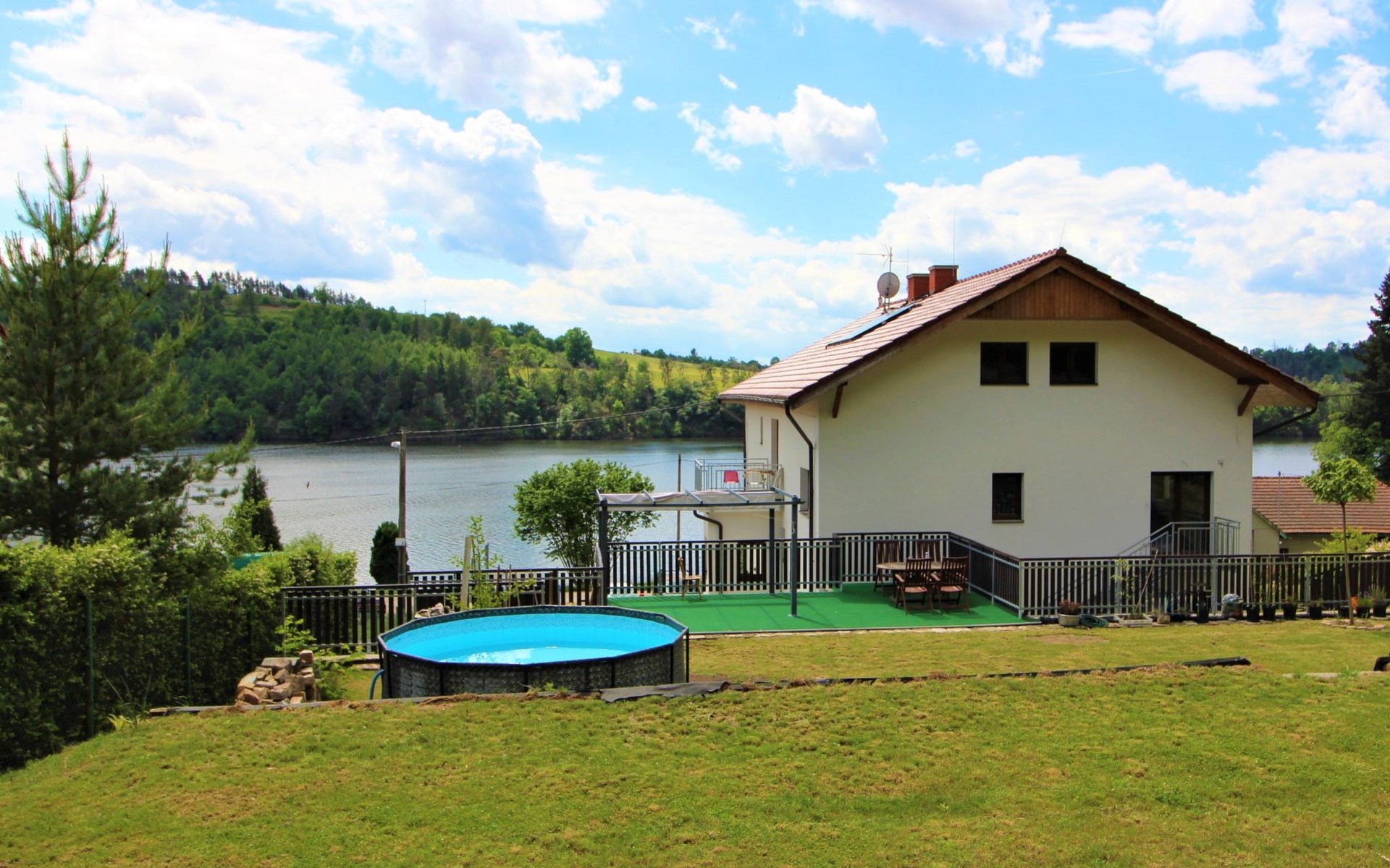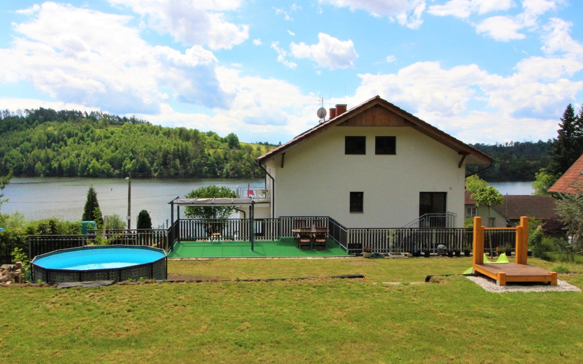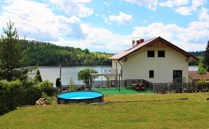 Freistehendes, komfortables Appartementhaus "Županovice", auf 2 Stockwerken, renoviert im Jahre 2022. 3 Wohnungen im Ferienhaus. Sonnige Lage, 50 m vom See, 50 m vom Strand. Zur Mitbenutzung: Grundstück, Garten mit Rasen, Schwimmbad rund (3,6 m Durchmesser, saisonale Verfügbarkeit: 01.Jun. - 15.Sep.). Pergola, Terrasse, Gartenmöbel, Grill. Im Hause: Zentralheizung, Waschmaschine. Parkplatz (für 5 Autos) auf dem Grundstück. Bushaltestelle "Županovice" 170 m, Grasstrand 50 m. Kinderspielplatz 50 m. Nahe gelegene Sehenswürdigkeiten: Slapská přehrada 50 m, Lom Hřiměždice, Albertovy Skály 12 km, Zámek Dobříš 15 km, Lom Solopysky 23 km, Vodní nádž Kamýk 25 km, Orlická přehrada/Zámek Orlík 30 km. Wandergebiete: Toulava 10 km, Svatá Hora/Příbram 28 km, Praha 50 km.